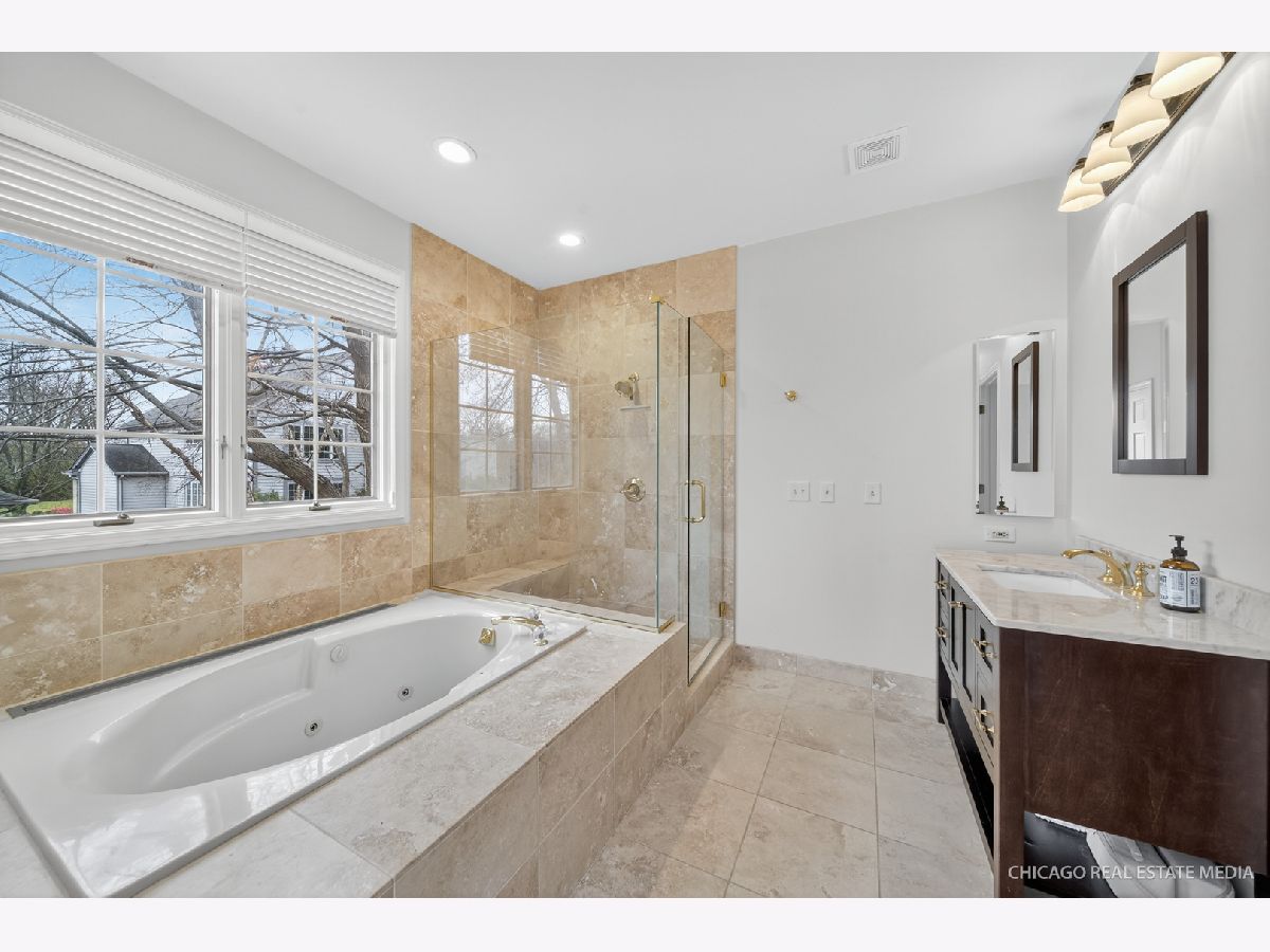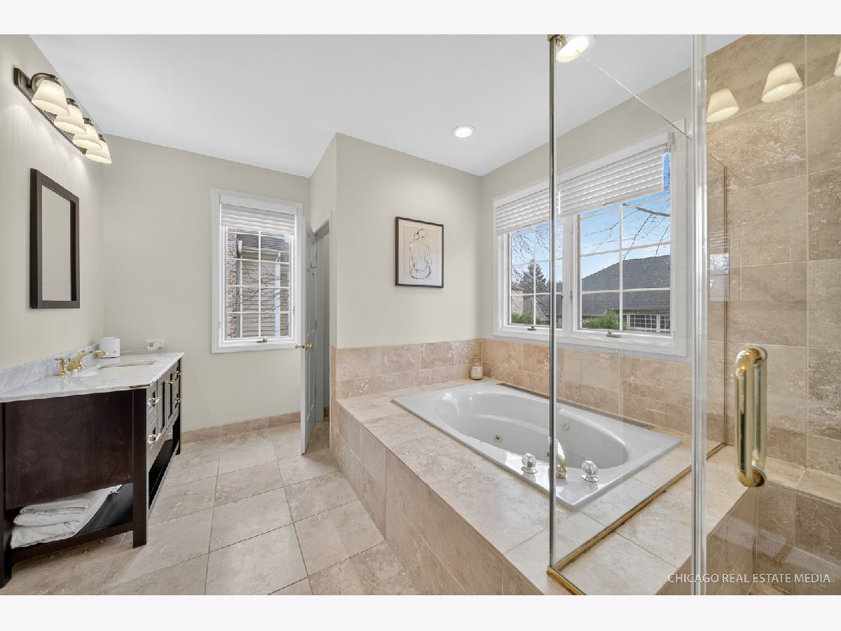 A beautifully crafted paver and stone walkway welcomes you to this elegant residence in the Clubhomes of Windhill. Expertly maintained and thoughtfully updated, the home blends timeless architectural details with modern comforts, featuring soaring volume ceilings, gleaming hardwood floors, and a warm, neutral palette throughout. With a first-floor primary suite, it offers the convenience and ease of ranch-style living while still providing flexible upstairs space ideal for guests, a home office, or a private retreat. The primary bedroom is a serene sanctuary, boasting a tray ceiling, dual closets, and a spa-inspired bath with separate vanities, a jetted tub, walk-in shower, and exquisite tile work. Sunlight streams through a dramatic two-story wall of windows, illuminating the living room and creating an inviting atmosphere, while the family room, anchored by a wood-burning fireplace with gas starter, becomes the perfect gathering place for cozy evenings or lively entertaining. The formal dining room, graced with crown molding, flows effortlessly to the granite, cherry, and stainless-steel kitchen, where a Viking stove and wall ovens meet a dedicated coffee and wine bar-ideal for breakfast with family, holiday dinners, or casual gatherings with friends. The kitchen now features a new Bosch dishwasher (2024), seamlessly combining style and efficiency. The recently finished (2024) English basement adds nearly 1,500 square feet of sunlit, versatile living space. Enhanced with French doors and graceful archways that echo the elegance of the main home, it includes a full basement bathroom with modern amenities, brushed gold fixtures, delicately balanced complimentary colors, and large-format tiling. Independent lighting throughout sets the perfect mood, while plush carpeting with thick padding ensures safety and comfort for family members of all ages. A separate room with roughed-in water hookups allows for relocating the laundry from the upstairs mudroom or expanding pantry storage. Independent furnace and AC systems provide year-round comfort, complemented by an electric fireplace with 220v heating capabilities. Ample crawl space and utility storage, along with insulated walls and ceilings, ensure privacy, quiet, and peace throughout the space. Step outside to enjoy a newly completed (2023) deck with added concrete base, stairs, and extra storage underneath-perfect for morning coffee, summer barbecues, or evening cocktails while taking in serene outdoor views. The leveled front walkway (2025), newly painted entire exterior (2025), updated exterior lighting (2025), new gutters (2024), and newly constructed retention walls (2023) enhance both beauty and functionality, completing the home's flawless curb appeal. The $225/month HOA fee covers professional landscaping, lawn maintenance, snow removal for both walkway and driveway, and a sprinkler system-allowing you to fully enjoy the meticulously maintained grounds. Ideally located near Harper College with quick access to the expressway, shopping, and dining, this residence offers both convenience and a refined lifestyle. A meticulously maintained and thoughtfully updated home, perfectly balancing timeless design, modern amenities, and luxurious livability-ready to welcome its next owners and their cherished memories.