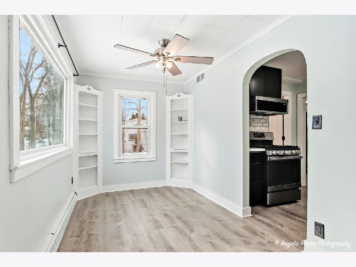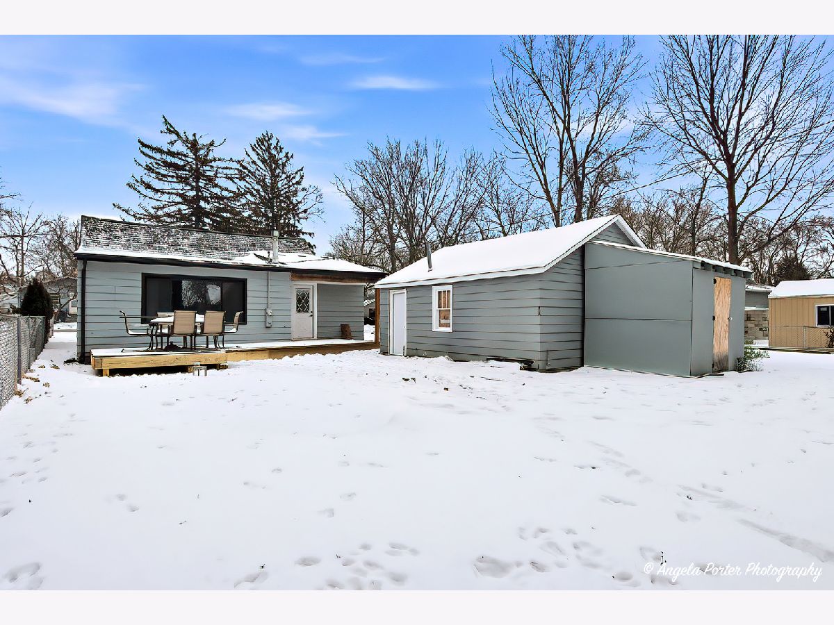 Double lot, fully fenced 2-bedroom home featuring built-ins throughout, a 2-car detached garage, and a storage shed. Includes two PINs (second PIN: 0628133018), with taxes reflecting both parcels. Major updates include a new roof and boiler (2025), water heater (2023), newer windows (approx. 3 years old), and a brand-new deck (2026). All new gravel recently installed. Nicor is scheduled to install a new gas line in the spring. Refrigerator, stove, microwave, washer, and dryer are included.