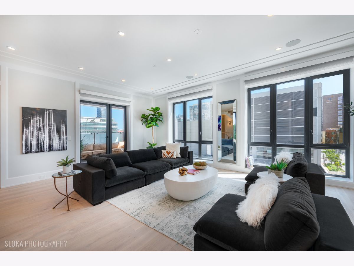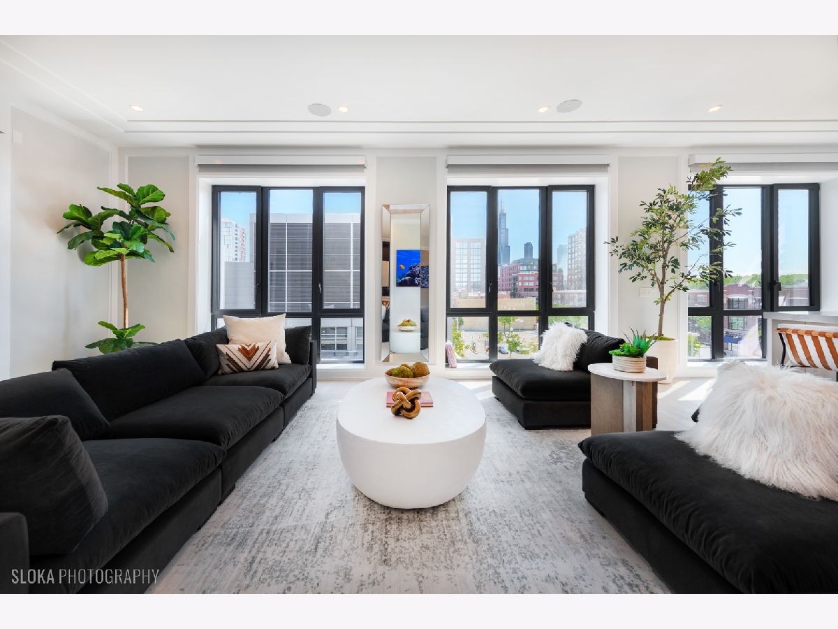 BEST VALUE PENTHOUSE WITH PRIVATE ROOFTOP IN THE WEST LOOP! LAST 2 UNITS REMAIN IN THIS DEVELOPMENT. Tucked away on a quiet side street in the heart of Chicago's vibrant West Loop, this stunning new-construction duplex penthouse offers an unparalleled blend of luxury, space, and privacy. Spanning two expansive levels with over 1700 sq ft of private rooftop deck, this 5-bedroom + den/office, 4-bathroom residence includes direct elevator access and an attached heated 2-car garage-a rare find in the city. Developed by the highly regarded PLD Homes, every inch of this home exudes quality craftsmanship and sophisticated design. The 35-foot-wide interior is flooded with natural light, showcasing a wide-open floor plan ideal for both everyday living and elevated entertaining. Main Living Level: Open-concept layout with floor-to-ceiling east-facing windows Expansive living room, separate dining area, and custom wet bar Designer chef's kitchen with panel-ready Thermador appliances, quartz countertops, and custom cabinetry Fifth bedroom or a family room + office/den a full bathroom and covered private terrace - all on the main floor. Second Level: Luxurious primary suite with walk-in closet, private terrace, and spa-caliber bathroom featuring a soaker tub, steam shower, and heated floors. Three additional bedrooms with custom closets and two full bathrooms. Enter this level directly through a private mudroom. Spacious laundry room and separate storage area. Rooftop Oasis: A private interior stairway leads to the top-floor flex space, ideal for a second office or lounge with wet bar-opening to your exclusive rooftop retreat. Enjoy panoramic 360 skyline views, unforgettable sunsets, and endless entertaining potential. Hot tub and shower will be installed on the roof. This boutique building offers the privacy and feel of a single-family home with the luxury conveniences of a high-rise. Located just steps from award-winning restaurants, premier shopping, trendy nightlife, parks, and top-rated schools-this is truly a rare gem in the West Loop.