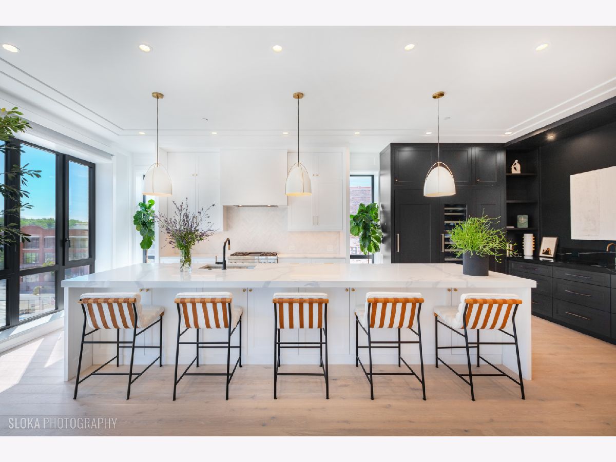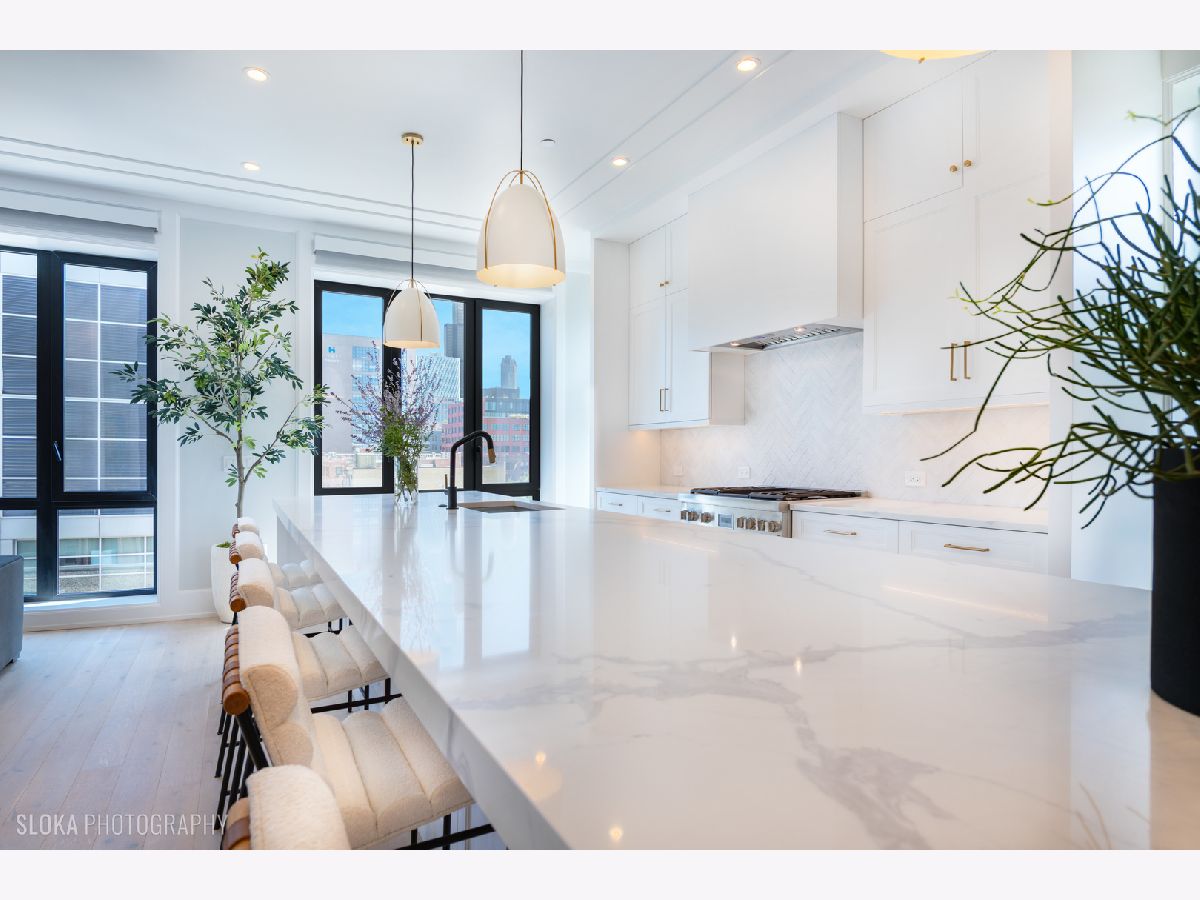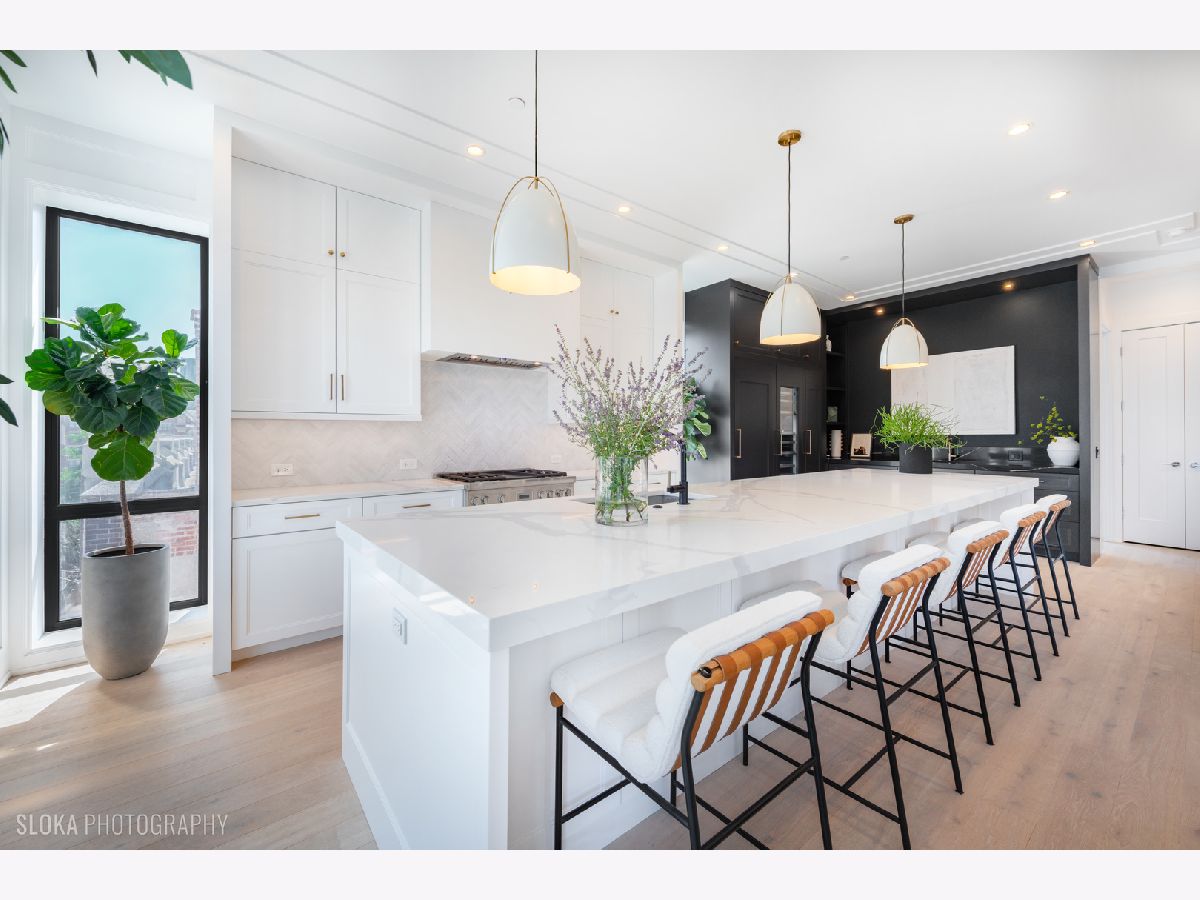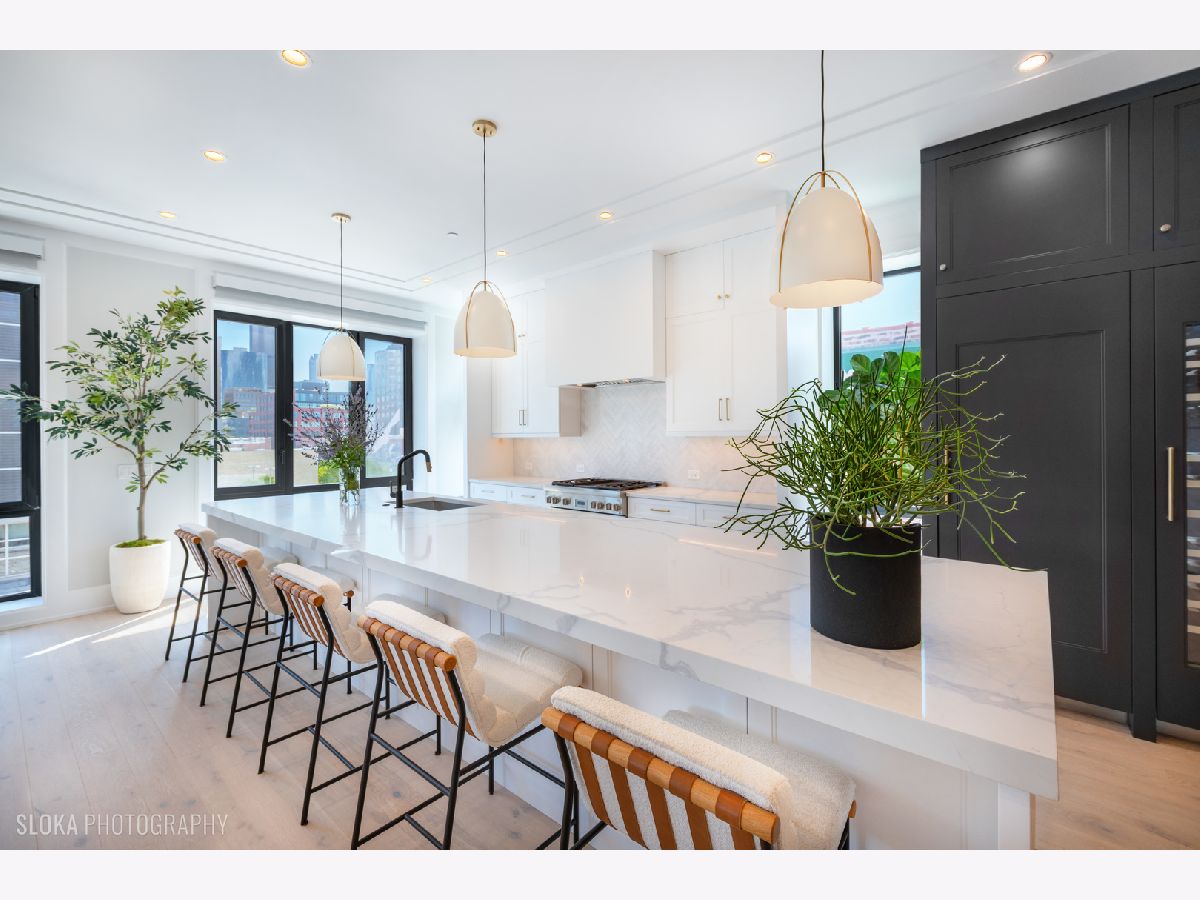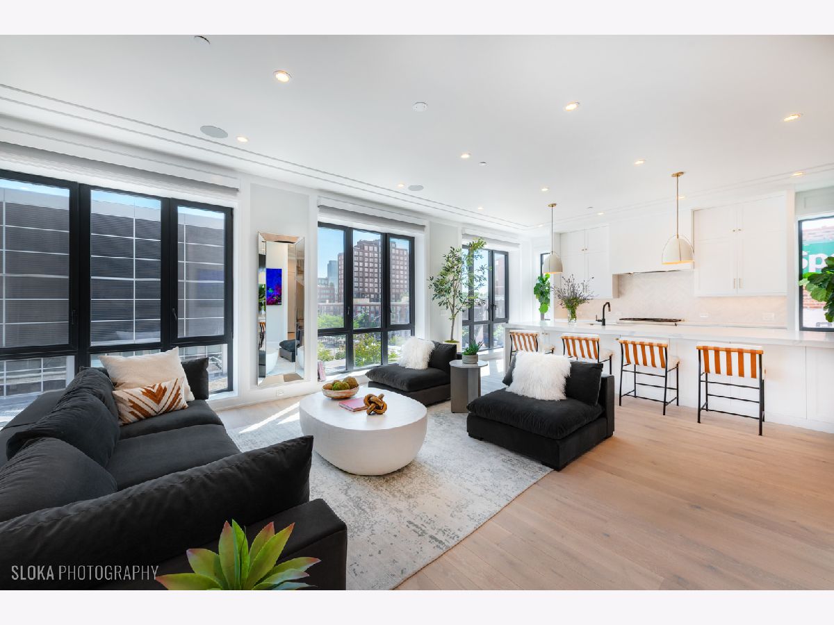 BEST VALUE PENTHOUSE WITH PRIVATE ROOFTOP IN THE WEST LOOP! LAST 2 UNITS REMAIN IN THIS DEVELOPMENT. Tucked away on a quiet side street in the heart of Chicago's vibrant West Loop, this stunning new-construction duplex penthouse offers an unparalleled blend of luxury, space, and privacy. Spanning two expansive levels with over 1700 sq ft of private rooftop deck, this 5-bedroom + den/office, 4-bathroom residence includes direct elevator access and an attached heated 2-car garage-a rare find in the city. Developed by the highly regarded PLD Homes, every inch of this home exudes quality craftsmanship and sophisticated design. The 35-foot-wide interior is flooded with natural light, showcasing a wide-open floor plan ideal for both everyday living and elevated entertaining. Main Living Level: Open-concept layout with floor-to-ceiling east-facing windows Expansive living room, separate dining area, and custom wet bar Designer chef's kitchen with panel-ready Thermador appliances, quartz countertops, and custom cabinetry Fifth bedroom or a family room + office/den a full bathroom and covered private terrace - all on the main floor. Second Level: Luxurious primary suite with walk-in closet, private terrace, and spa-caliber bathroom featuring a soaker tub, steam shower, and heated floors. Three additional bedrooms with custom closets and two full bathrooms. Enter this level directly through a private mudroom. Spacious laundry room and separate storage area. Rooftop Oasis: A private interior stairway leads to the top-floor flex space, ideal for a second office or lounge with wet bar-opening to your exclusive rooftop retreat. Enjoy panoramic 360 skyline views, unforgettable sunsets, and endless entertaining potential. Hot tub and shower will be installed on the roof. This boutique building offers the privacy and feel of a single-family home with the luxury conveniences of a high-rise. Located just steps from award-winning restaurants, premier shopping, trendy nightlife, parks, and top-rated schools-this is truly a rare gem in the West Loop.