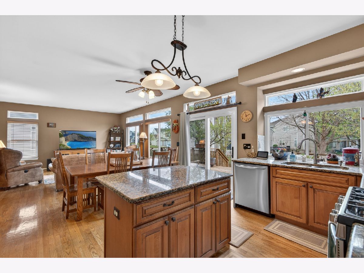 Welcome to 1160 Heavens Gate in the desirable Big Sky subdivision of Lake in the Hills. This warm and well maintained two story home offers five bedrooms and 2.1 bathrooms. Built in 1995, it combines classic charm with modern updates throughout. Step inside to beautiful oak hardwood flooring that flows gracefully across the main level, creating a bright and welcoming atmosphere perfect for everyday living and memorable gatherings. The spacious living and family rooms provide generous areas for relaxation and entertaining. They open seamlessly into the formal dining room and the updated kitchen featuring granite countertops, a large center island, stainless steel appliances, and abundant cabinetry, ideal for preparing meals while staying connected with family and friends. A versatile main level room offers flexible options as a bedroom, home office, or cozy den. Upstairs, you will find four generously sized bedrooms, including a primary suite with its own private bath for added comfort and privacy. The finished basement significantly expands your living possibilities with a recreation area, bar, and theater setup, perfect for movie nights, game days, or relaxing retreats. A stubbed bathroom is ready for your personal customization. Additional highlights include ample storage throughout the home and a convenient two car attached garage. Outside, enjoy the large deck overlooking the private, fenced backyard, an excellent space for morning coffee, summer barbecues, or unwinding in the fresh air. The home sits on a generous lot with mature landscaping and curb appeal that welcomes you home. Conveniently located near parks, schools, shopping, dining, and major commuting routes including Route 47 and the Northwest Tollway, this property offers the perfect blend of suburban tranquility and everyday convenience in a sought after community. This move in ready home presents an excellent opportunity for those seeking comfortable, functional living space. Come experience the warmth and possibilities firsthand. Schedule your private showing today.