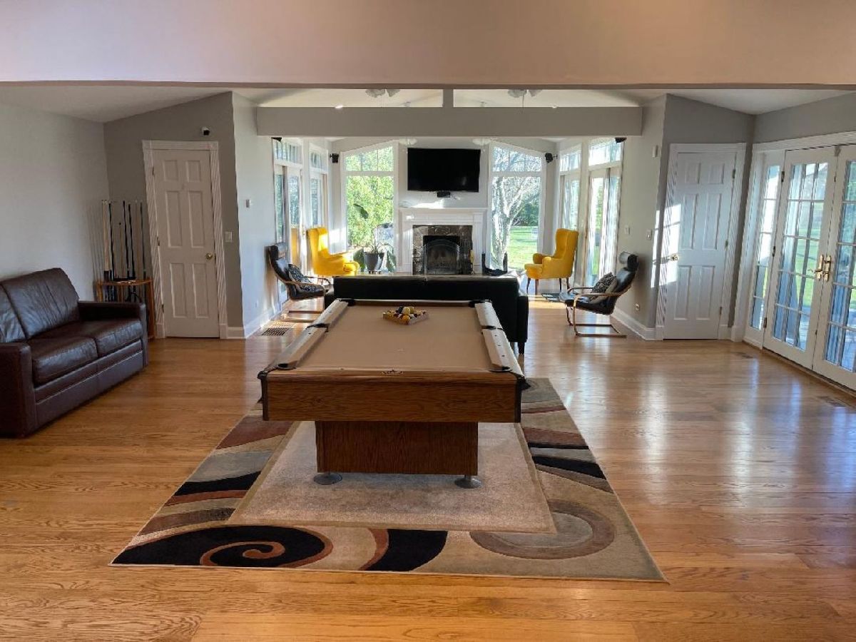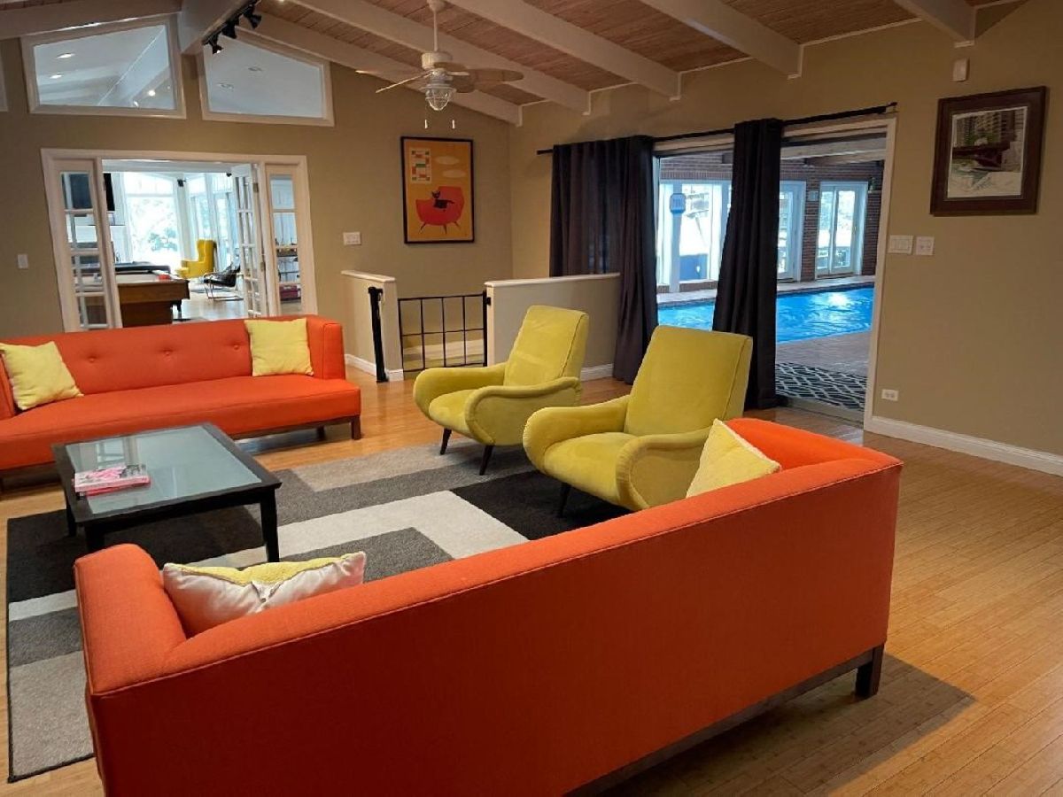 Set on an exceptional 1.38-acre parcel, fully fenced in sought-after Lake Forest, this spectacular ranch offers a rare blend of privacy, space, and resort-style living with convenient access to the scenic trails at Middlefork Savanna Forest Preserve and Elawa Farm. Thoughtfully updated, the home spans over 5,000 square feet of living space, designed for both comfortable everyday living and effortless entertaining with wonderful natural light in every room. A gracious foyer opens to expansive dining room and living rooms, each anchored by a fireplace and filled with natural light, volume ceilings and skylights. The gourmet kitchen features high-end appliances, an island, and generous table space, also flowing seamlessly into a welcoming family room and sunroom with sweeping views of the beautiful grounds. One of the home's most distinctive features is the indoor pool, with large deck area, with a dedicated dressing area/full bath. The dramatic views and multiple doors on each side of the pool opens to the deck and gardens-creating a true year-round oasis. The private primary suite offers a serene escape with sweeping views of gardens, large primary bath and ample closet space. The home complemented by three additional large bedrooms and two well-appointed hall baths on the main level. Additional highlights include cathedral ceilings, skylights, hardwood floors, a finished lower level with recreation and game space, two powder rooms, and workshop area accessed through the two car garage. Recent improvements include a new roof (2020) and interior repainting (2026). Ideally located within the highly regarded Lake Forest Community High School District 115 and Lake Forest School District 67, this property presents a unique opportunity to own a sprawling ranch in one of the North Shore's most desirable settings.