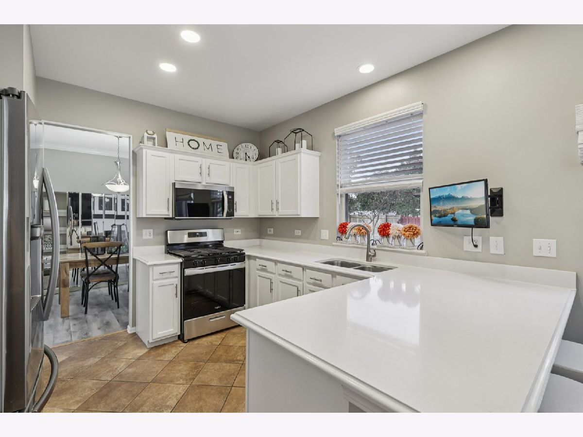 This meticulously updated, move-in ready home presents an exceptional opportunity. The entryway features vaulted ceilings, highlighting the open concept and high ceilings throughout. Renovations include new flooring, quartz countertops, and fresh paint, creating a model-home ambiance. Laminated floors add to the aesthetic appeal. The family room also boasts a vaulted ceiling, and the spacious white kitchen is equipped with stainless steel appliances. A combined living and dining area enhances the home's charm, along with a convenient first-floor utility room. The property includes a three-car garage. The finished 1,007 sq ft basement features a large rec room with a wet bar, a versatile nook suitable for reading, an office, or exercise, and a craft room/office with countertops, cabinets, and a closet. Additional storage is provided with ample shelving. Recent improvements include: * 2023 Landscaping * 2023 New dishwasher and refrigerator * 2023 New Blinds 2024 Backyard Renovation and Patio Expansion 2024 New washer and dryer * 2025 New stove and microwave.