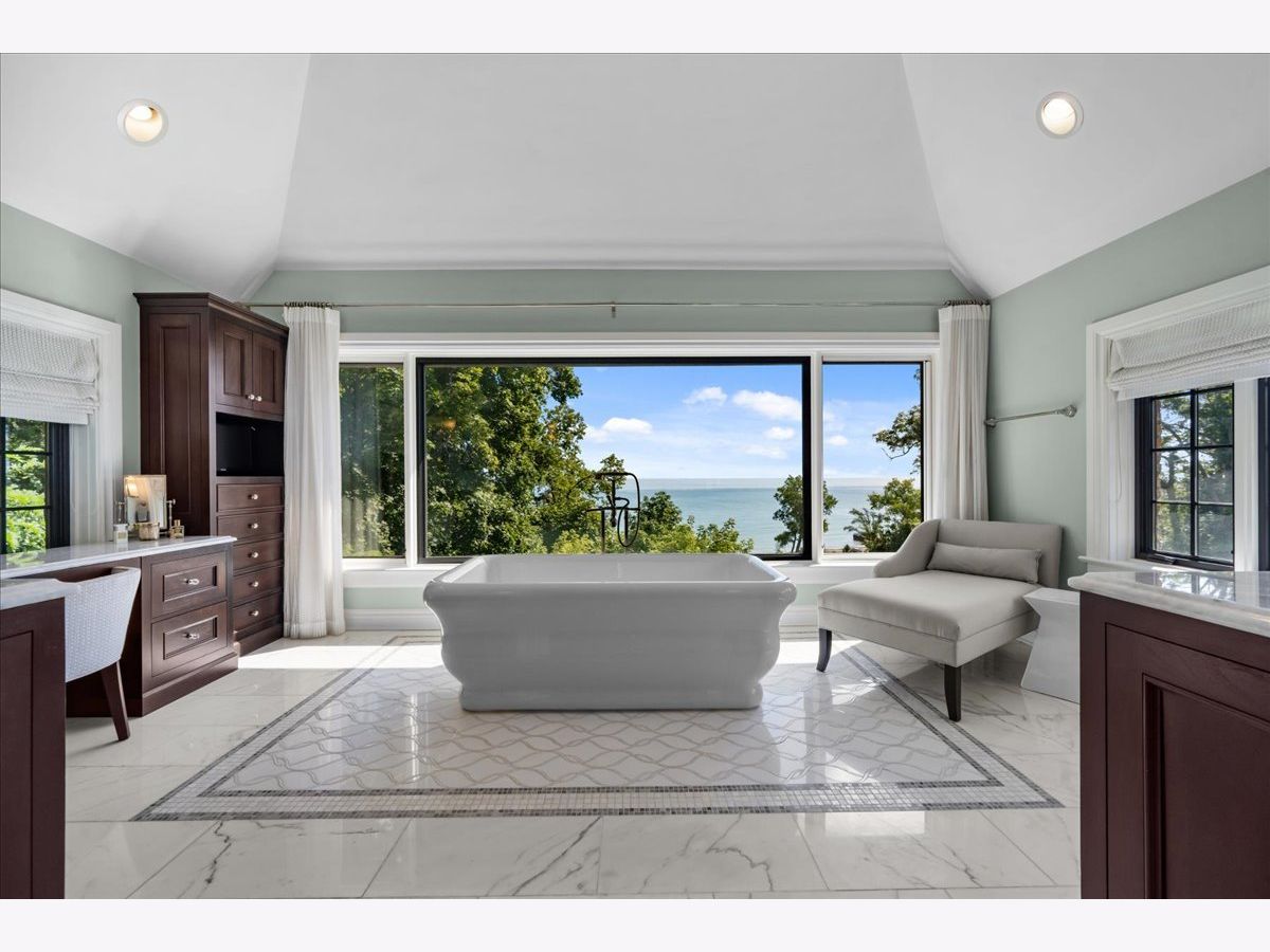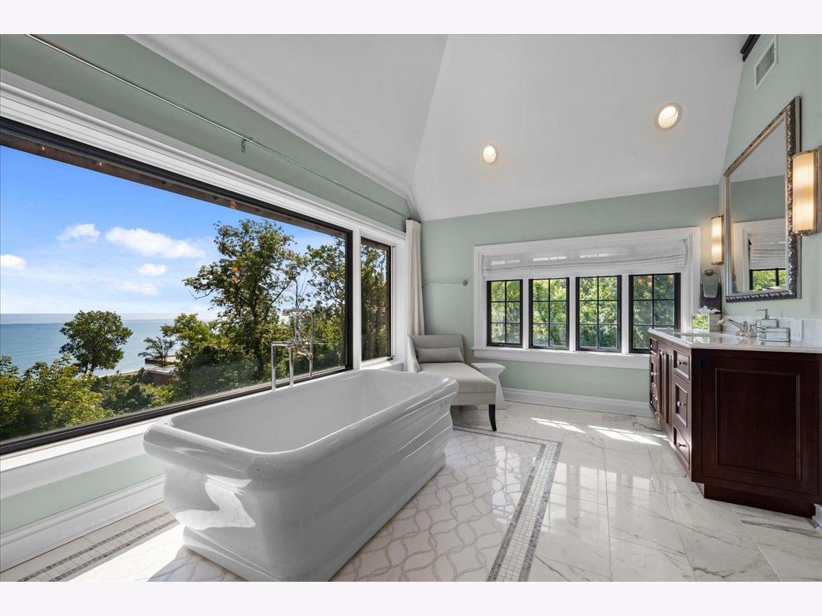 Located in the coveted Belle Avenue Historic District, this extraordinary estate sits on 2.3 acres of manicured grounds with sweeping lake views. Fully renovated and expanded, the residence blends timeless elegance with modern luxury for a truly one-of-a-kind offering. This five-bedroom, eight full and one half bath home showcases craftsmanship of the highest caliber, including a brick exterior, slate tile roof, extensive millwork, crown moldings, built-ins, hardwood floors, expansive windows, soaring ceilings and graciously scaled rooms. No detail was spared in the complete gut renovation and thoughtful addition that restored and elevated this classic beauty. A welcoming foyer leads to a grand living room, perfect for entertaining, with a limestone fireplace, custom built-ins and a wet bar. The living room opens to a light-filled sunroom with three sets of floor-to-ceiling sliders, seamlessly connecting to multiple outdoor entertaining spaces with endless lake views. A formal dining room with herringbone wood floors, custom wallpaper and a crystal chandelier adjoins to a butler's pantry featuring two wine fridges, custom cabinetry and marble counters. The chef's kitchen is a showstopper, with bespoke inset white wood cabinetry, Quartzite counters, decorative marble backsplash, oversized island with prep sink and seating, professional-grade appliances and a walk-in pantry. A spacious eat-in area has 2 sets of sliders that lead to the bluestone patios. The kitchen opens to a large sunken family room that is a perfect gathering spot for family and friends. Additional highlights of the main level include a sophisticated powder room, mudroom with slate flooring and built-ins, full bath, package receiving room and heated three-car garage. Upstairs, the primary suite is a private sanctuary with a cozy sitting area, custom built-ins, dual walk-in closets and a spa-like marble bath featuring vaulted ceilings, a soaking tub, expansive shower, and breathtaking lake views. Four additional bedrooms each include luxury en-suite baths and walk-in closets with custom built-ins. A second-floor laundry with two washer/dryer sets plus a coffee/bar station on the landing outside the family bedrooms add delightful convenience. The third floor, with its vaulted ceiling and abundant natural light, offers a large bonus room with wet bar, office space, home gym/Pilates studio and full bath. The lower level provides flexible living space with a recreation room, game room, sitting area, guest bath and extensive storage. The outdoor spaces are equally impressive, with bluestone patios, a stone fire pit, built-in bar with seating and pristine landscaping overlooking the ravine and lake. This property combines unmatched craftsmanship, spectacular grounds and iconic lakefront vistas-all within close proximity to the lakefront, schools and town. This is a rare opportunity to own a one-of-a-kind stately residence on a stunning property.