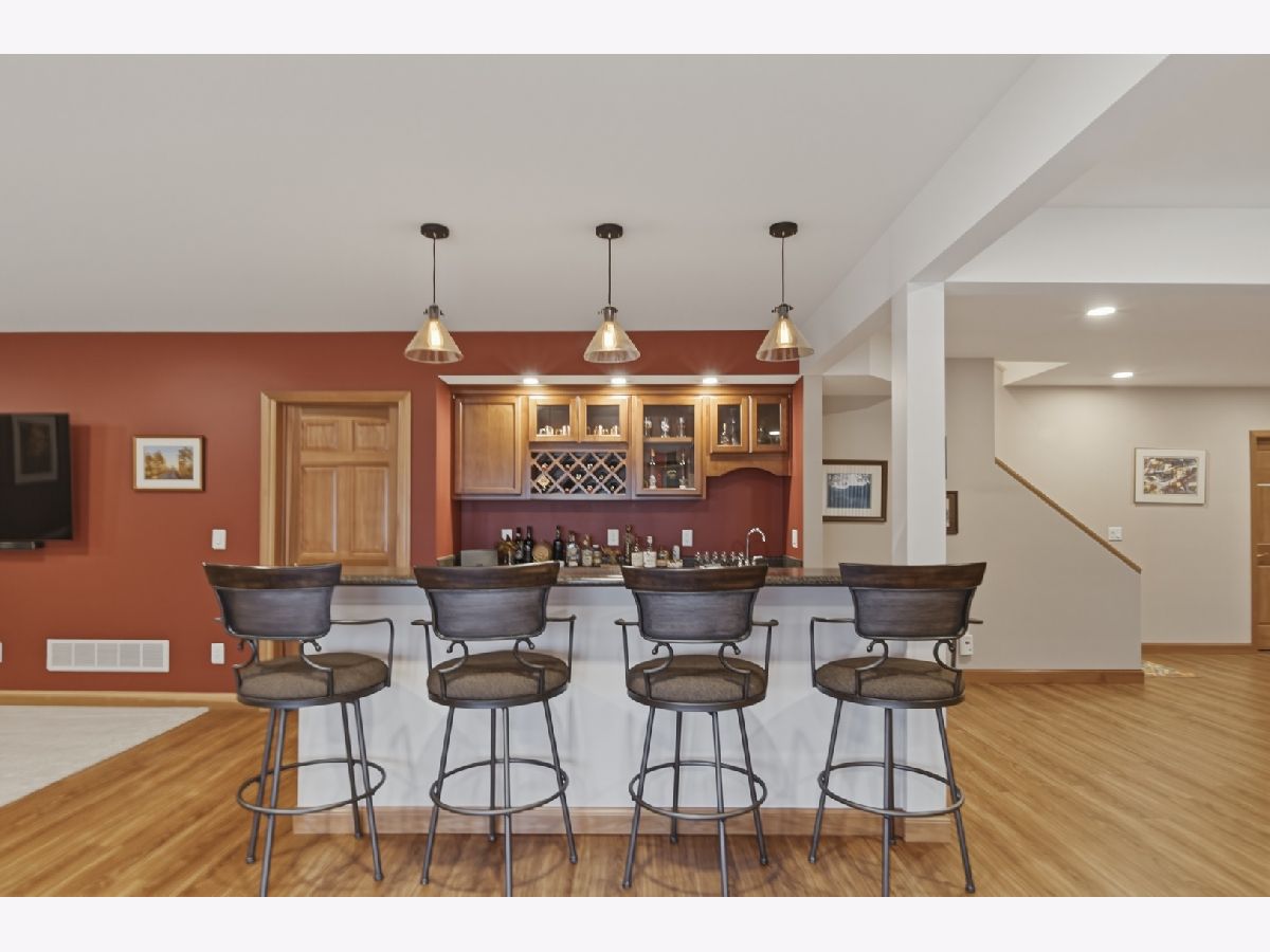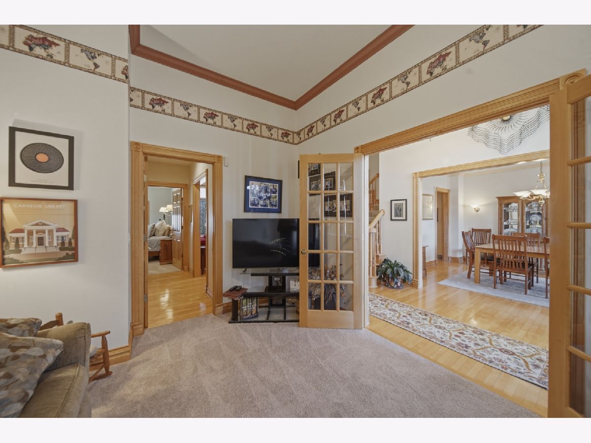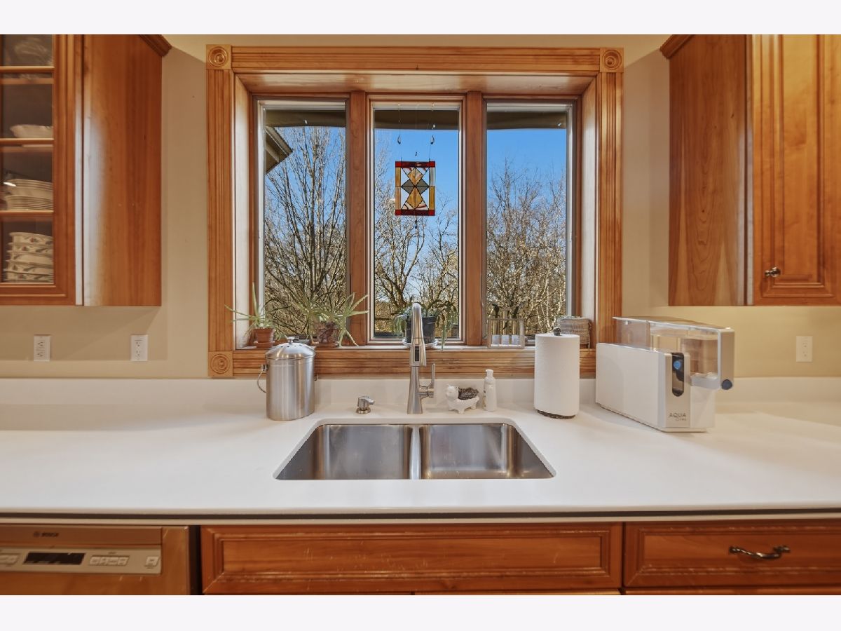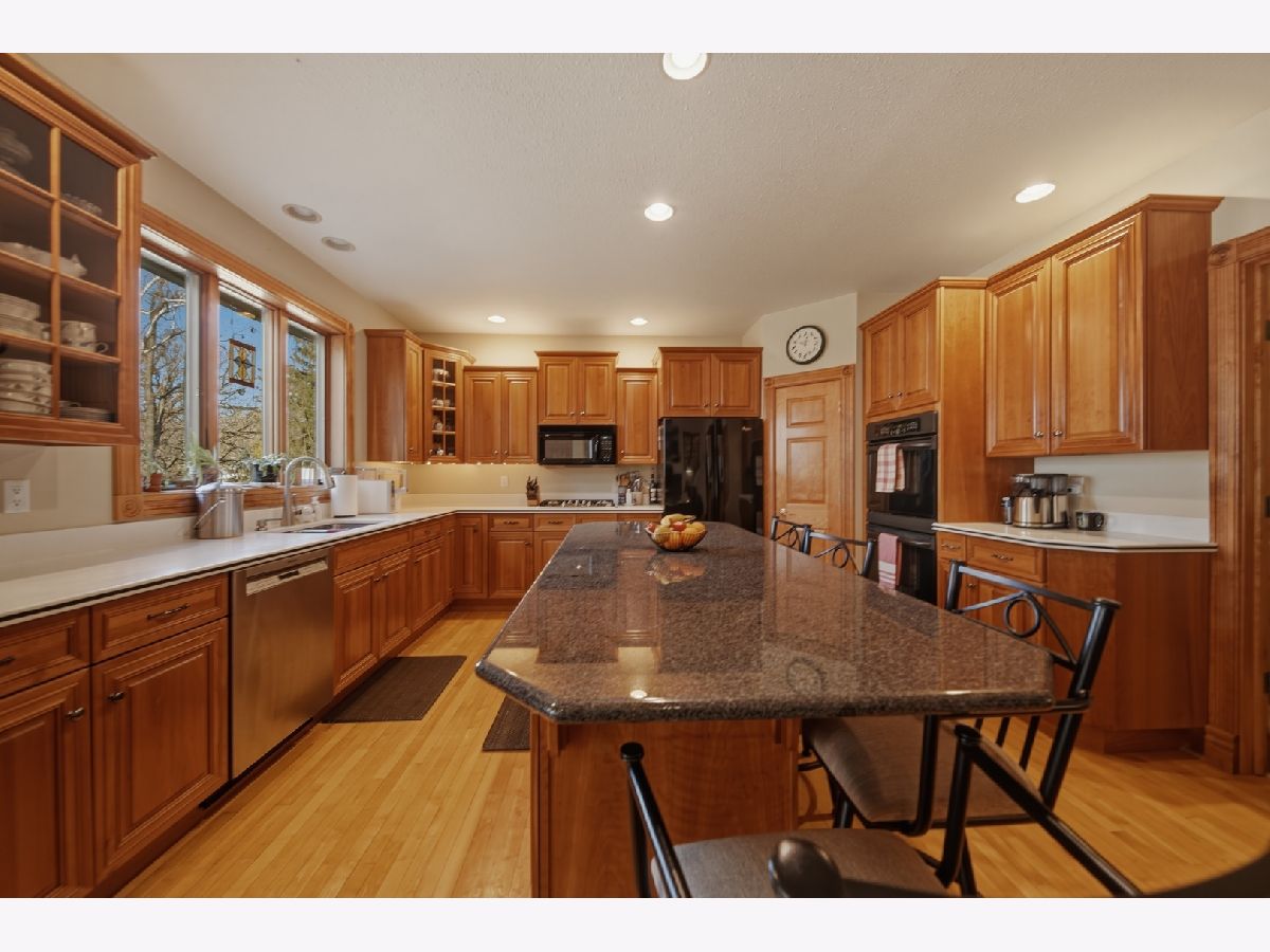 Indulge in pristine, custom-built living in Idle Oak Subdivision. This inviting home offers 5 bedrooms and 3.5 baths across a thoughtfully designed layout that blends elegance with everyday practicality. The main level welcomes you with a beautiful entry and a formal private living room, perfect for entertaining or quiet evenings at home. A formal dining room provides refined space for gatherings, while the large eat-in kitchen is a chef's dream, featuring Corian countertops, a spacious granite gathering island, abundant cabinetry, a large pantry, and additional table space. Step outside the kitchen to enjoy the large deck that overlooks a beautifully landscaped yard on wooded lot. Adjacent is a dedicated main floor laundry room with sink and storage space. A large family room with vaulted ceilings, large windows, and a beautiful view enhances the atmosphere of this elegant home. This family room has a look-through fireplace to the kitchen and wet bar. A convenient 1/2 bath is located off the kitchen and family room for guest use. The main floor also showcases a luxurious primary suite complete with a walk-in closet and a spa-like bath boasting a double vanity, Jacuzzi tub, and a separate shower. Upstairs, you'll find three generous bedrooms with oversized closets and a full bath with a double vanity, providing ample space for family and guests. The finished walkout basement expands the living area with a fifth bedroom (walk-in closet), another full bath, and a versatile office/multi-purpose area. The expansive family room features a bar area and a dedicated TV area, ideal for movie nights or entertaining. Additional features include a new central air system/furnace in late 2025, newer dishwasher and gas top range, new garage door opener, attic fan, a fire pit, an invisible fence for pets, and abundant storage throughout the home. The property sits at the end of a quiet cul-de-sac and includes a large attached three-car garage. This Idle Oak residence blends pristine condition with thoughtful design and abundant living spaces, making it perfect for entertaining and comfortable everyday living. Call for a private showing today!