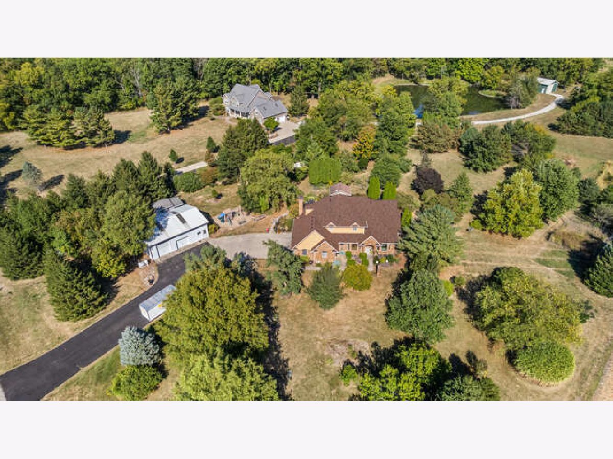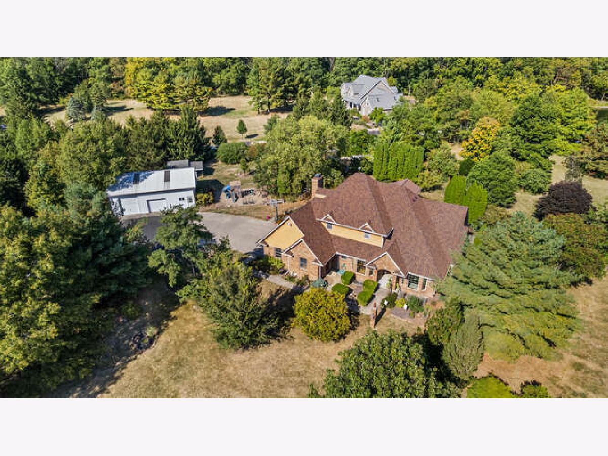 Looking for space to entertain indoors and out? This impressive 1.5-story all-brick home sits on a private 5-acre lot and is filled with natural light throughout its spacious rooms. The main floor features formal living and dining rooms, a spacious family room centered around a stunning stone fireplace, and a well-appointed kitchen with ample cabinetry, appliances, and a breakfast nook that opens onto your outdoor retreat. The first-floor primary suite includes a walk-in closet, private bath with dual vanities, and a separate office/sitting room. The first-floor laundry offers convenience. Upstairs, three additional bedrooms-each with walk-in closets-and a full bath provide plenty of room. The finished basement expands your living options with a large rec room and wet bar, full bath, and two additional bedrooms. Outside, enjoy beautiful landscaping, a greenhouse, cozy backyard cottage, and a large outbuilding-everything you need to relax, entertain, or create your own private getaway.