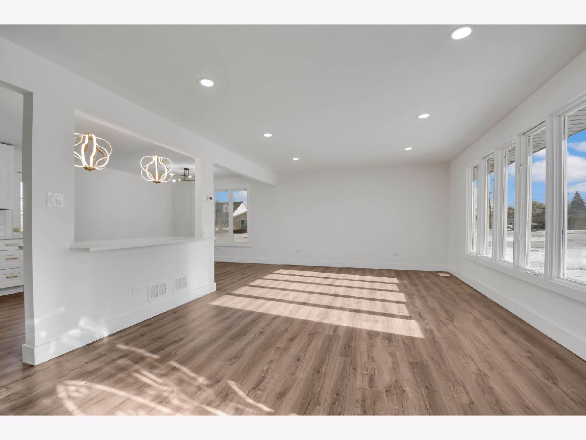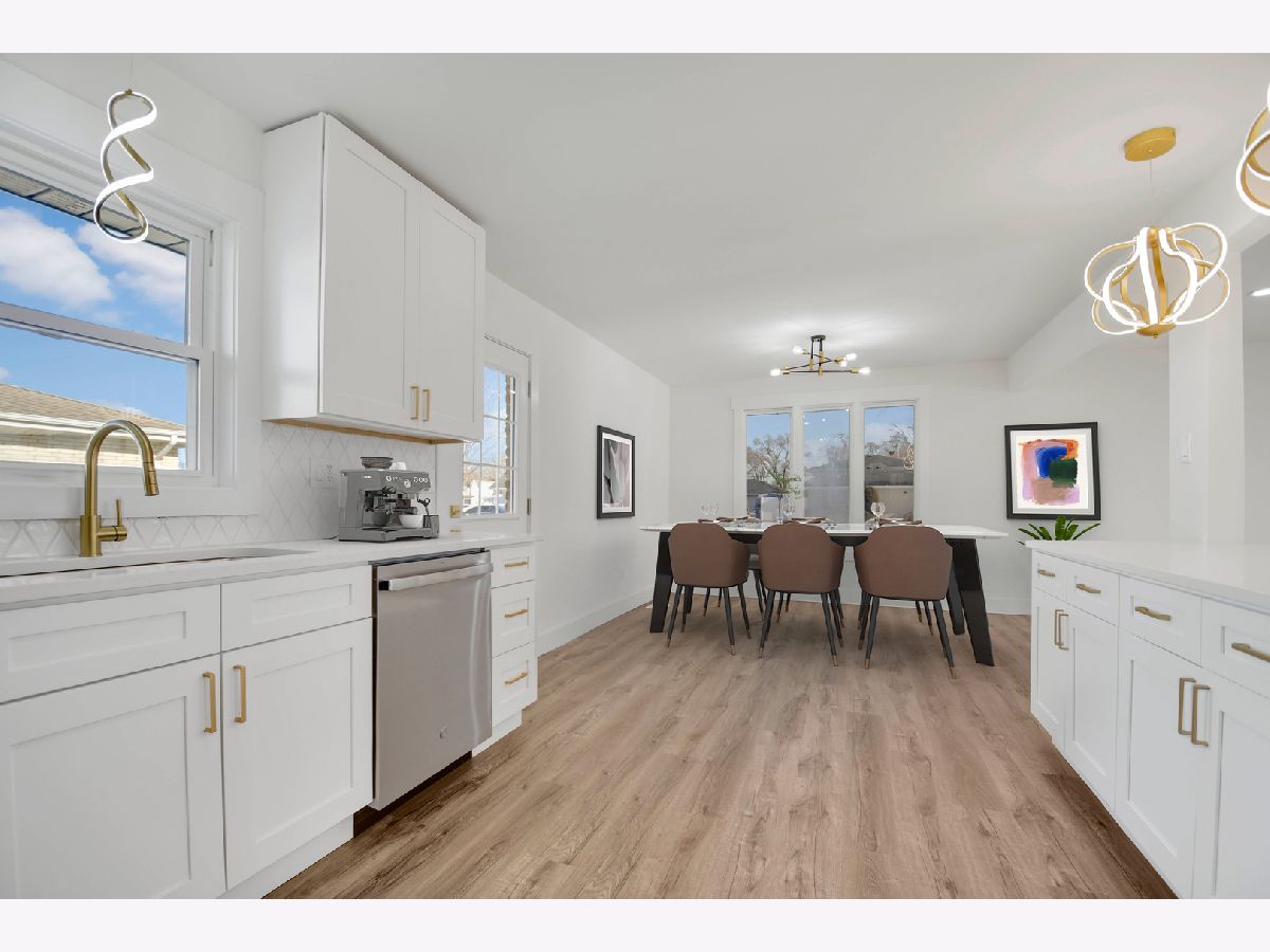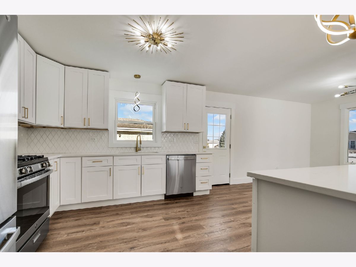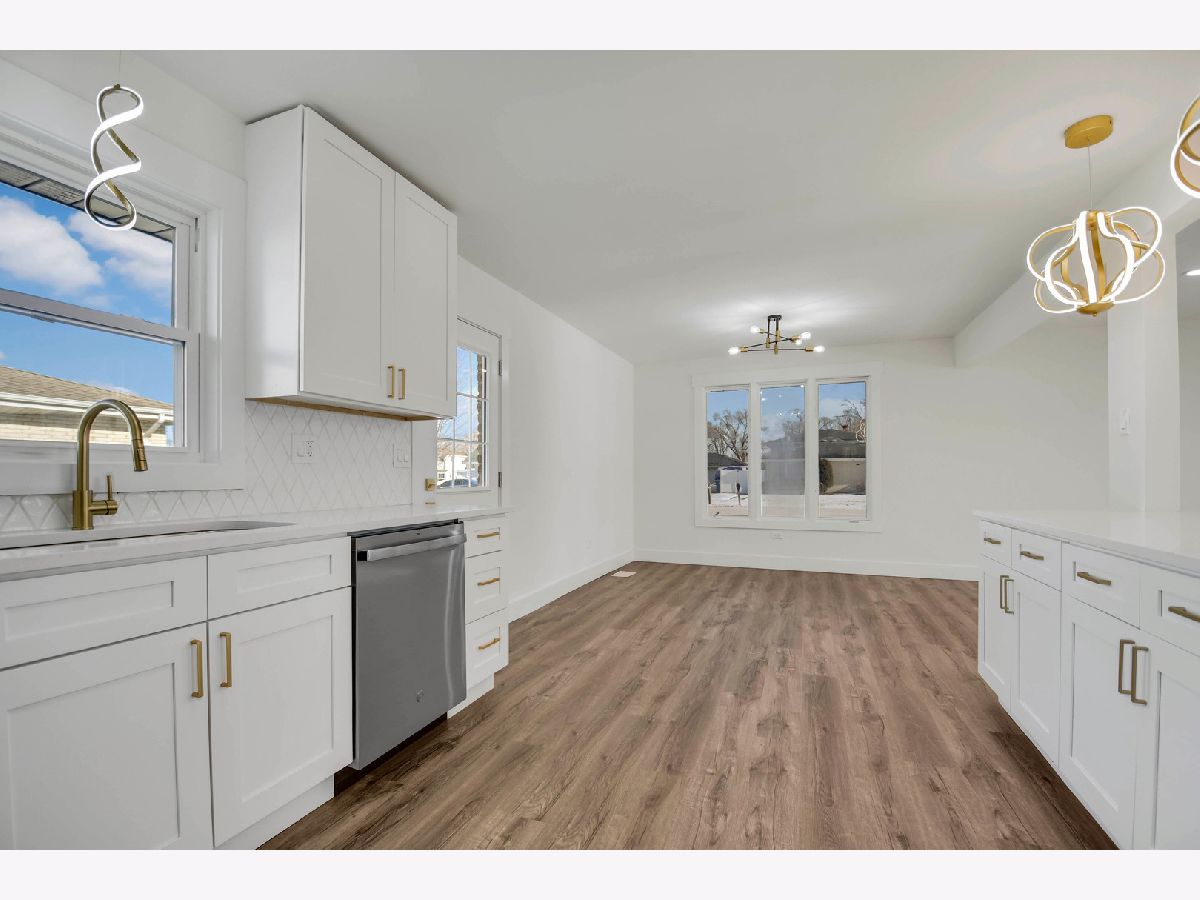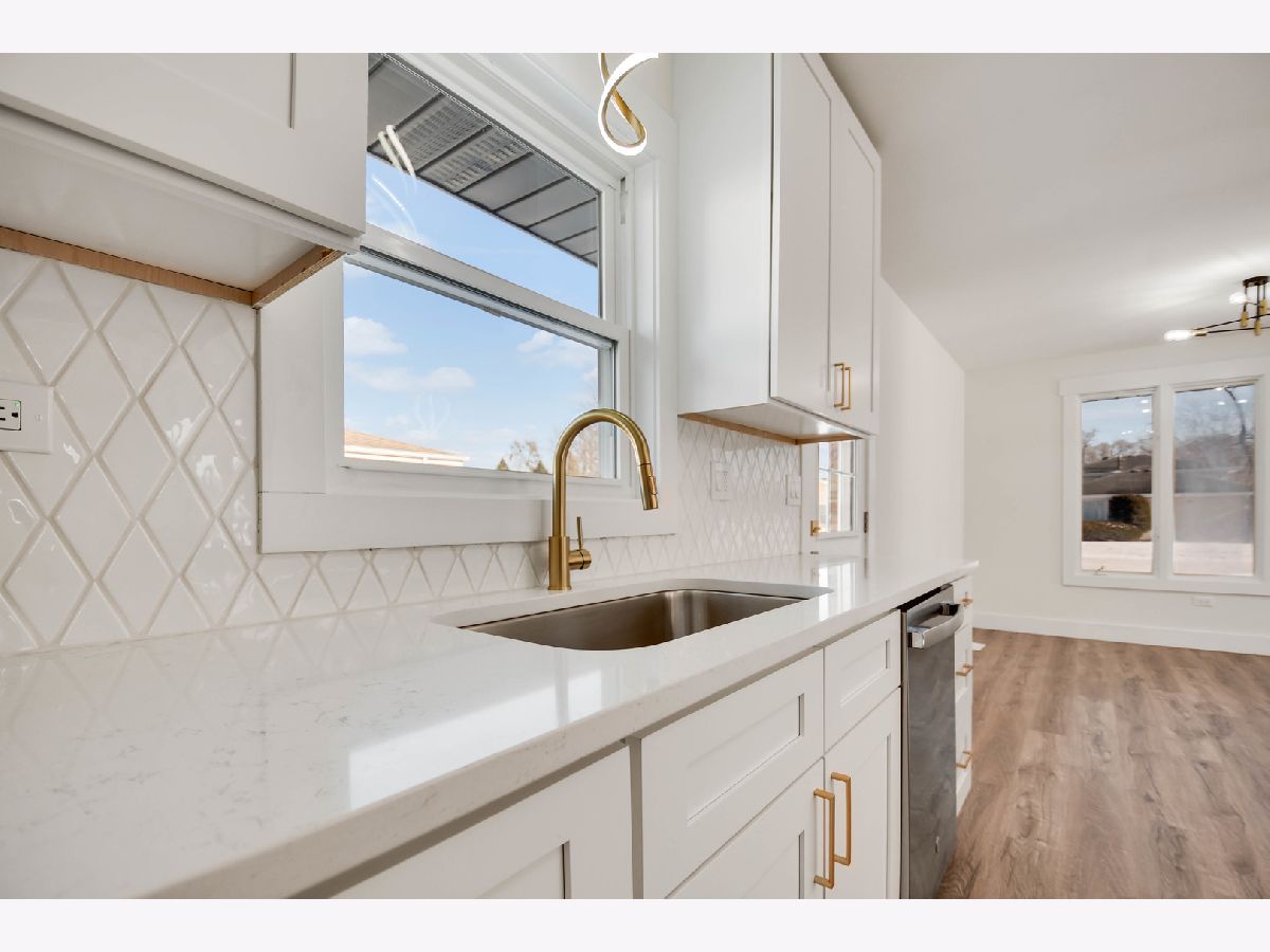 The developer's modern vision is evident in every inch of this beautifully remodeled split-level home with an attached garage, set on a desirable corner lot in a sought-after northwest Alsip location. Impressive curb appeal welcomes you as you step inside to a bright and open main-level floor plan featuring a spacious living room with a large picture window and luxury vinyl plank flooring that continues seamlessly throughout all three levels. The bright, efficiently designed kitchen offers a generous dining area, chic white cabinetry, trendy quartz countertops, stainless steel appliances, and stylish brushed gold hardware and fixtures. A sliding door from the kitchen leads to a brand-new rear deck, perfect for outdoor enjoyment. The upper level features three comfortable bedrooms and a completely updated bathroom highlighted by a double-sink warm wood-grain vanity with a sleek white countertop, elegant gold-tone hardware, a wide mirror, modern vanity lighting, and a tub/shower combination wrapped in marble-inspired tile. The lower level provides a large, inviting family room, a nicely finished laundry and utility area, and a second convenient bathroom showcasing eye-catching blue-gray stone-effect tile, a floating vanity with integrated sink, contemporary gold-tone hardware, a matching gold-trimmed mirror, and coordinating light fixture. Completing the home is a two-car garage with epoxy-finished flooring and a side yard behind the garage that offers additional space for gardening, entertaining, or relaxing outdoors. This turnkey home checks every box so schedule your showing before someone else does.