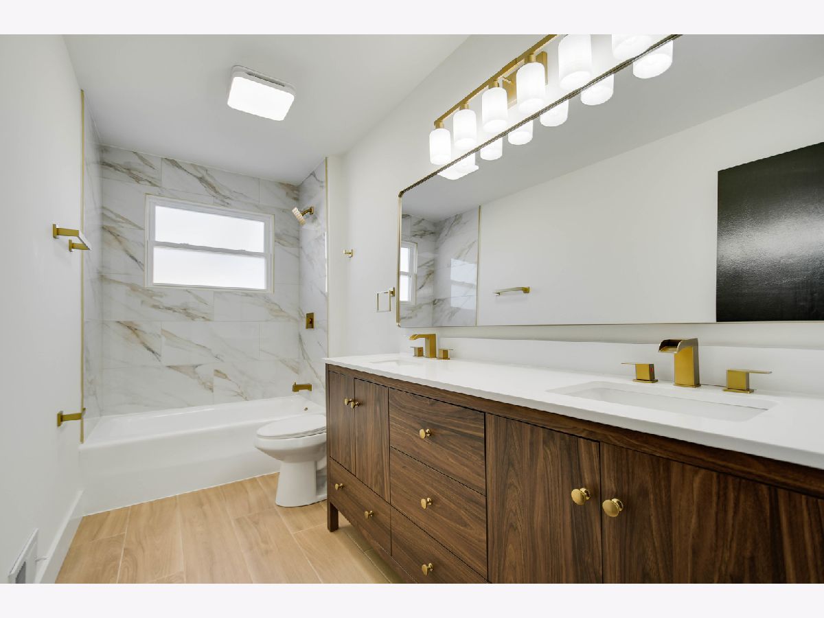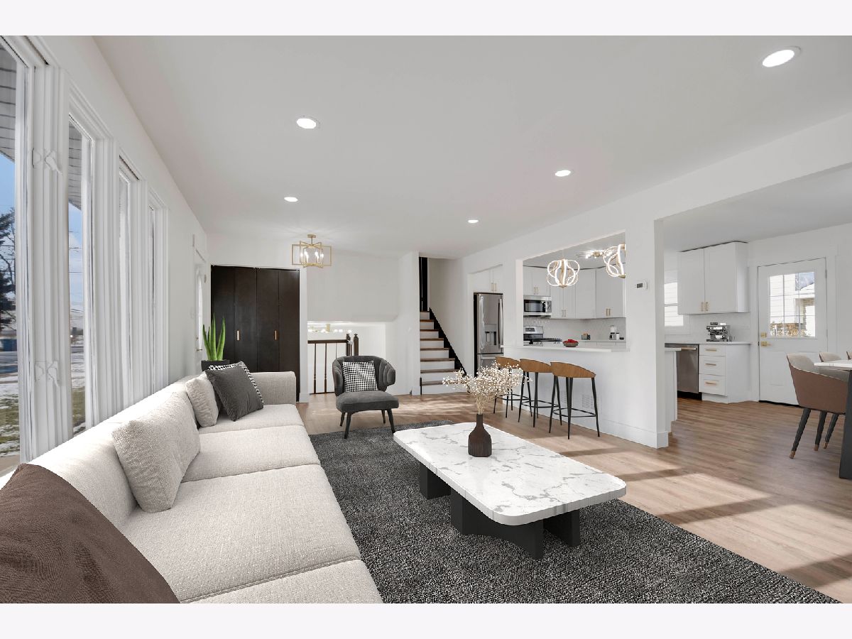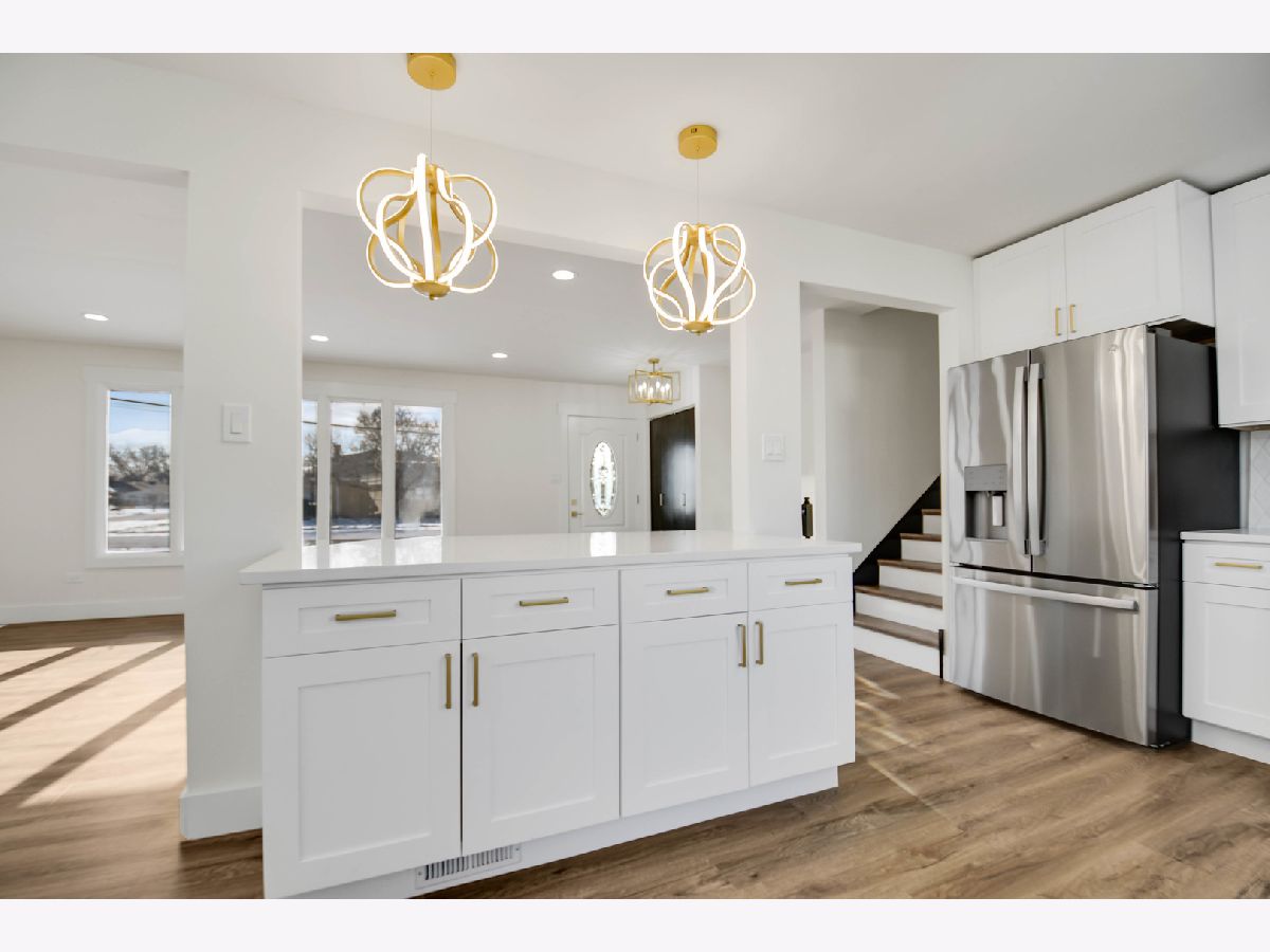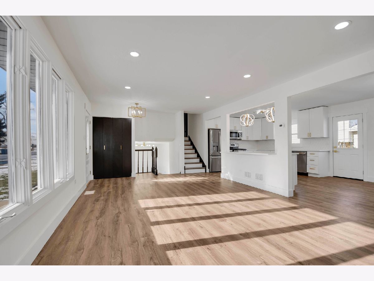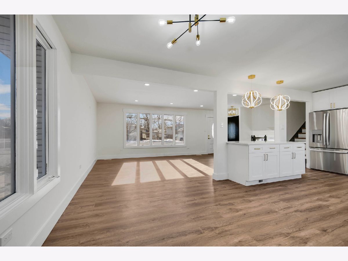 The developer's modern vision is evident in every inch of this beautifully remodeled split-level home with an attached garage, set on a desirable corner lot in a sought-after northwest Alsip location. Impressive curb appeal welcomes you as you step inside to a bright and open main-level floor plan featuring a spacious living room with a large picture window and luxury vinyl plank flooring that continues seamlessly throughout all three levels. The bright, efficiently designed kitchen offers a generous dining area, chic white cabinetry, trendy quartz countertops, stainless steel appliances, and stylish brushed gold hardware and fixtures. A sliding door from the kitchen leads to a brand-new rear deck, perfect for outdoor enjoyment. The upper level features three comfortable bedrooms and a completely updated bathroom highlighted by a double-sink warm wood-grain vanity with a sleek white countertop, elegant gold-tone hardware, a wide mirror, modern vanity lighting, and a tub/shower combination wrapped in marble-inspired tile. The lower level provides a large, inviting family room, a nicely finished laundry and utility area, and a second convenient bathroom showcasing eye-catching blue-gray stone-effect tile, a floating vanity with integrated sink, contemporary gold-tone hardware, a matching gold-trimmed mirror, and coordinating light fixture. Completing the home is a two-car garage with epoxy-finished flooring and a side yard behind the garage that offers additional space for gardening, entertaining, or relaxing outdoors. This turnkey home checks every box so schedule your showing before someone else does.
