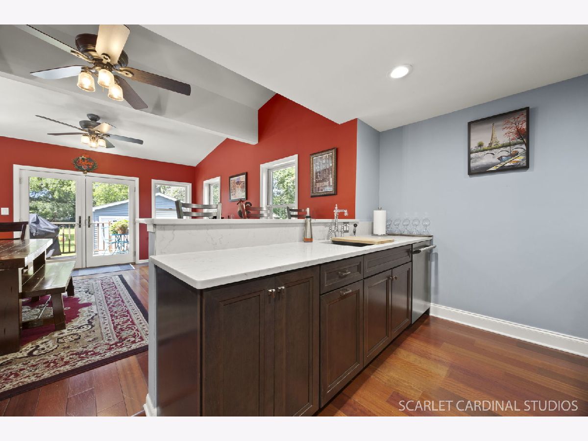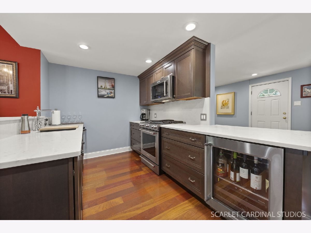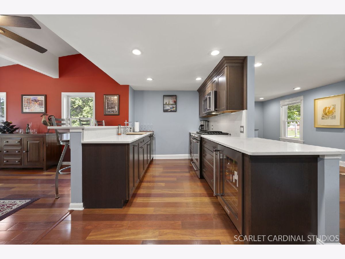 Stunning Updated Home in Prime Lombard Location! Welcome to this beautifully updated 3-bedroom, 3-bath home nestled in one of Lombard's most desirable neighborhoods-just steps from the Prairie Path, Great Western Trail, Lombard Commons, and Paradise Bay Water Park! This light-filled home boasts an open floor plan with spacious room sizes and elegant finishes throughout. The main level features a generous living and dining area with handsome hardwood floors, perfect for entertaining. The designer kitchen is a chef's dream, showcasing KraftMaid soft-close cabinetry, quartz countertops and backsplash, a breakfast bar, beverage cooler, high-end appliances, Kohler fixtures, and a custom pantry system with a built-in Thermador refrigerator. Just off the kitchen, the vaulted-ceiling family room with Andersen windows opens to a large deck overlooking a park-like, nearly half-acre lot-ideal for outdoor gatherings. The main level also includes a fully updated full bath with a walk-in shower and a convenient ensuite bedroom. Upstairs, you'll find a second spacious ensuite bedroom (18x13) with a walk-in closet. All 3 bedrooms have new carpet and fresh paint throughout. Enjoy outdoor living on the massive stamped concrete patio with a built-in fire pit, all set against a 300-foot-deep backyard oasis. Additional highlights include a large unfinished basement, newer roof, siding, gutters, windows, garage, HVAC, driveway, and more-all updated within the last 10 years. This is a truly turn-key home in a fantastic location-a must-see to believe!
