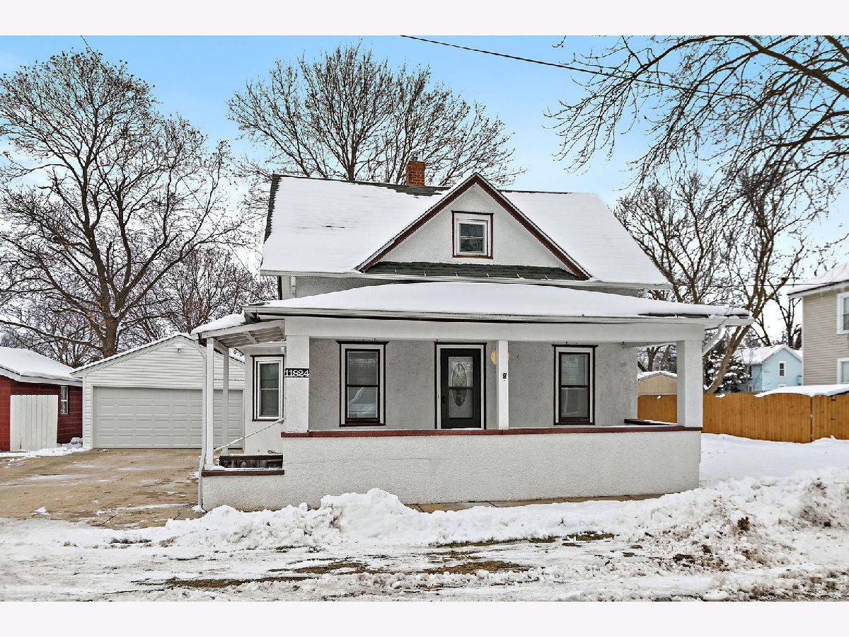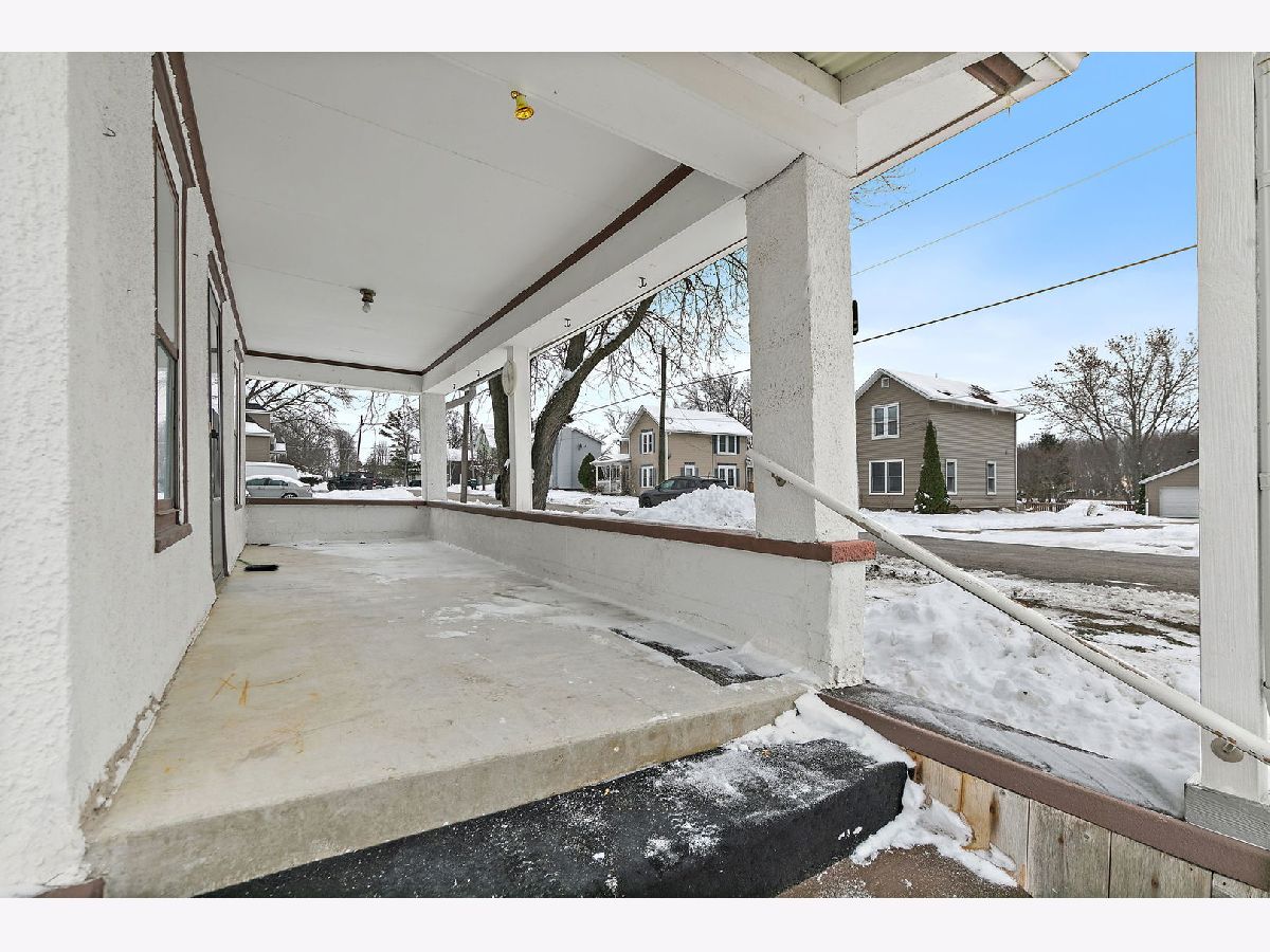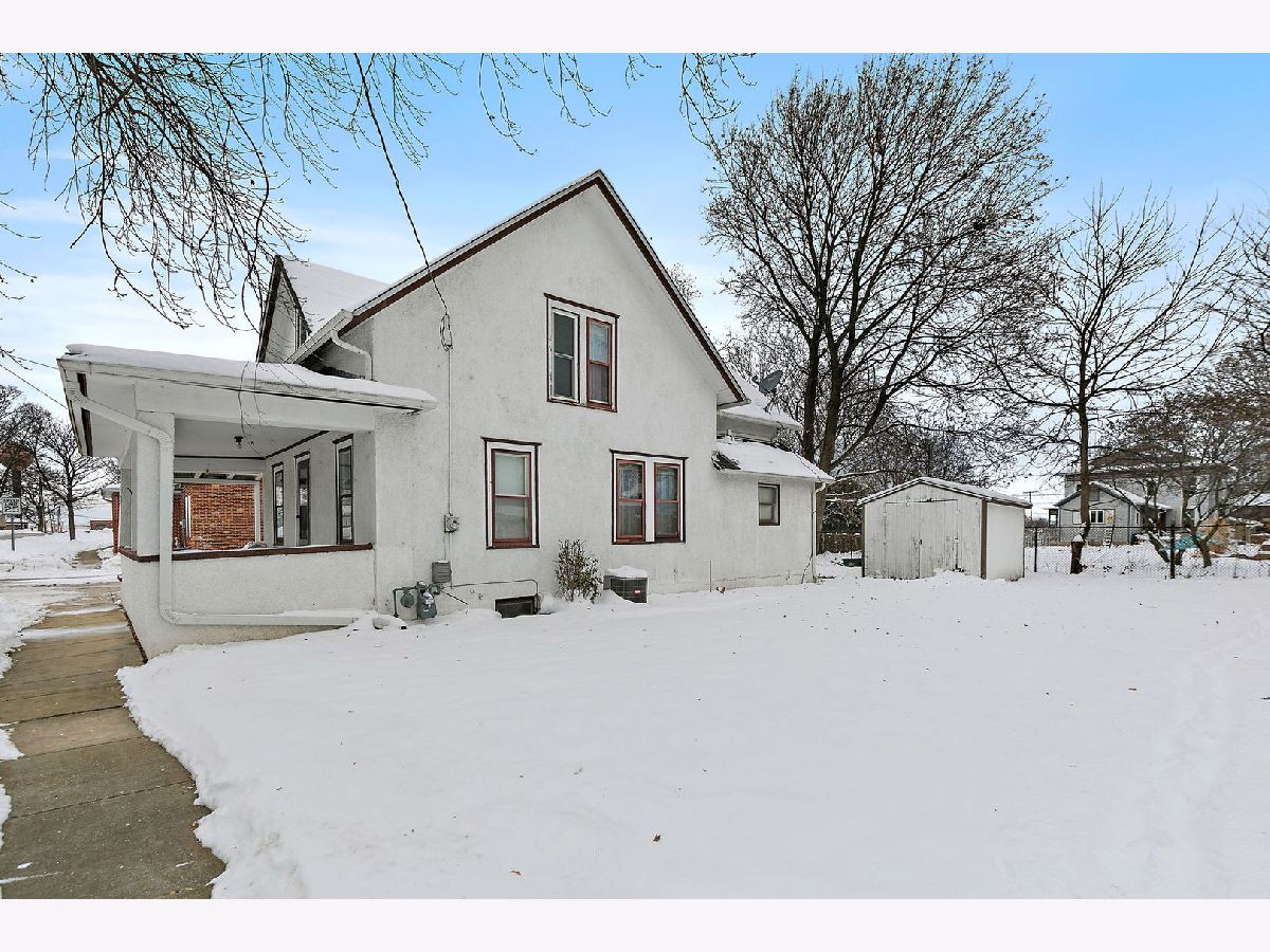 Wonderful Frame Stucco Bungalow tucked along a beautiful tree-lined street in the heart of historic Hebron. An inviting small-town setting close to the Illinois-Wisconsin border. This charming home offers wonderful curb appeal with its spacious 8x24 front porch, long concrete side drive which measures 20x40 in size, 2.5-car detached garage, and a generously sized backyard with an additional side yard for outdoor enjoyment. Step inside to a large living room that flows naturally into the dining room, highlighted by an octagon bump-out and rich woodwork that carries throughout many rooms. The nicely sized kitchen features classic oak cabinetry and plenty of space for a table. The first floor includes a cozy Den/Home Office/Sitting room with washer and dryer, along with a convenient full bath featuring a stand-up shower. Sitting room provides access to the second level, where you'll find three bedrooms-one tandem with the master bedroom and an oversized full bathroom. A full basement offers great storage and holds the updated mechanicals (ages unknown). The home has been well-maintained over the years and is move-in ready, with opportunities to update and make it your own. Come take a look and make this Hebron home yours!
