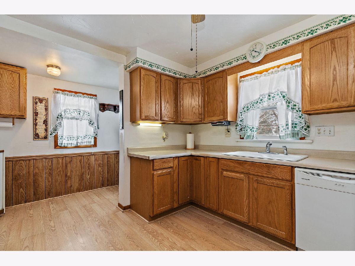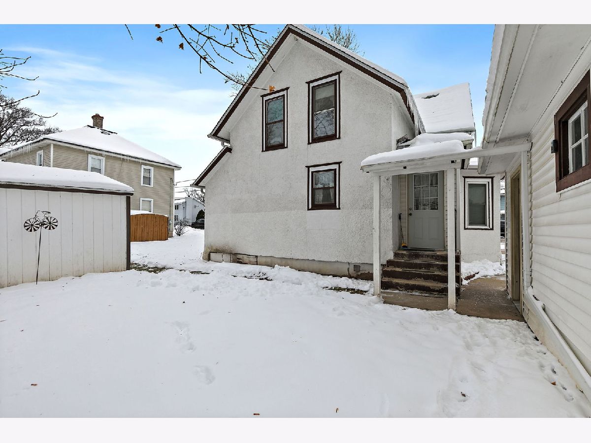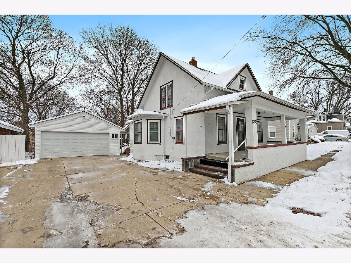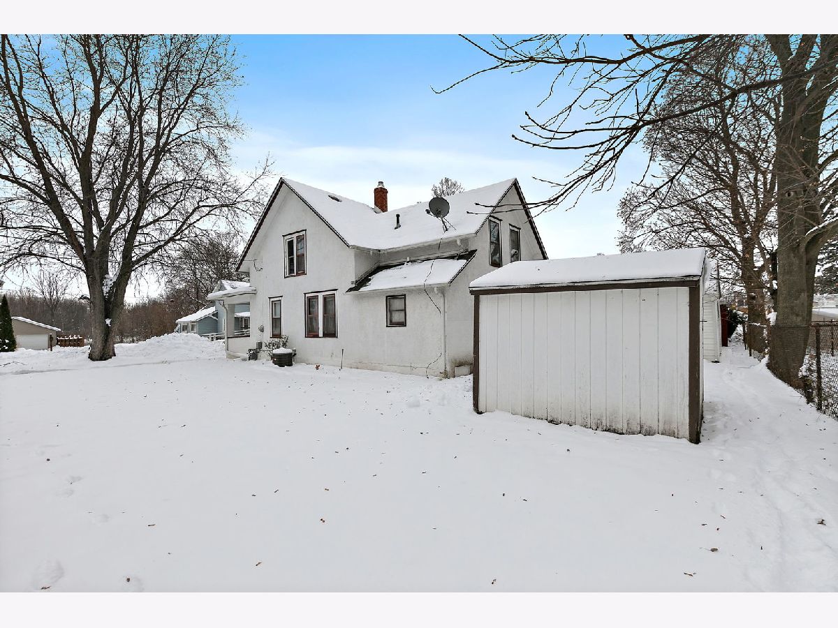 Wonderful Frame Stucco Bungalow tucked along a beautiful tree-lined street in the heart of historic Hebron. An inviting small-town setting close to the Illinois-Wisconsin border. This charming home offers wonderful curb appeal with its spacious 8x24 front porch, long concrete side drive which measures 20x40 in size, 2.5-car detached garage, and a generously sized backyard with an additional side yard for outdoor enjoyment. Step inside to a large living room that flows naturally into the dining room, highlighted by an octagon bump-out and rich woodwork that carries throughout many rooms. The nicely sized kitchen features classic oak cabinetry and plenty of space for a table. The first floor includes a cozy Den/Home Office/Sitting room with washer and dryer, along with a convenient full bath featuring a stand-up shower. Sitting room provides access to the second level, where you'll find three bedrooms-one tandem with the master bedroom and an oversized full bathroom. A full basement offers great storage and holds the updated mechanicals (ages unknown). The home has been well-maintained over the years and is move-in ready, with opportunities to update and make it your own. Come take a look and make this Hebron home yours!