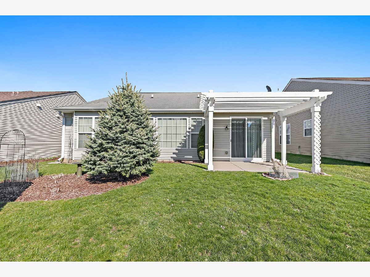 Beautiful Cantigny Model, with a partial Brick front and a 2 car garage, located in Del Webb Sun City. This home has been meticulously maintained by the original owner. It is move in ready. It includes 2 Bedrooms, 2 full bathrooms and a Den. The master bedroom includes a walk-in closet and the optional Bay window. The Master Bath has a double sink, a vanity chair space between the two sinks, a separate soaking tub, walk-in shower and a separate water closet. The kitchen has plenty of cabinet space, solid surface counters and a pantry for storage. There is a separate eating area, which looks out the patio window, so you can enjoy the lovely backyard. The livingroom and dining room, give this space an open concept feel. This home has a highly sought-after Den for your home office or hobbie space. The washer and dryer are less than a year old, the HVAC was replaced in 2021, the hot water heater was also replaced in 2021. The backyard has a large patio with a pergola. The garage includes the extended option and has an epoxy floor.