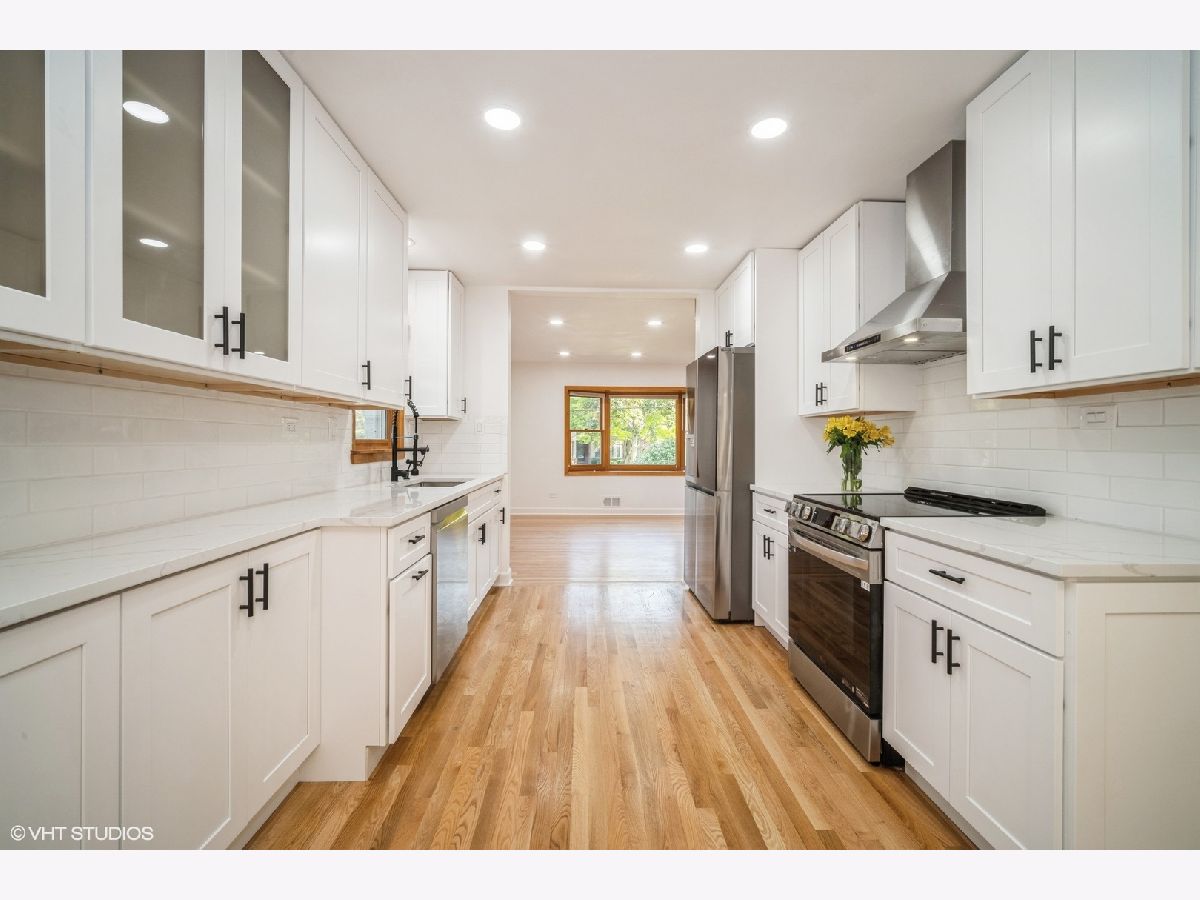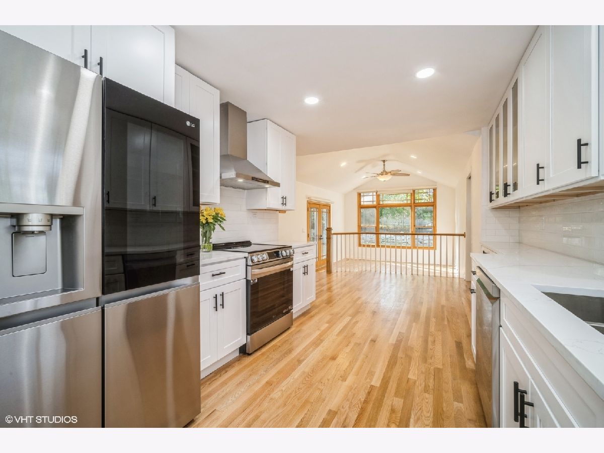 Best of both worlds - fully remodeled home and dream location in downtown Libertyville. 2,700 square feet of living space in this brick 4 bedroom 2 bath ranch home with office and family room in fully finished basement. Enjoy lush green views of your private garden from cook's kitchen that opens to dining area & great room with prairie light palladium windows and doors. Stunning great room with vaulted ceiling and french doors opening to bluestone patio & rear yard with pear and apple trees. New white shaker cabinets with freshly laid quartz stone and new stainless appliances in the kitchen. Hardwood flooring throughout the main level and wood laminate flooring in the basement. Furnace 2022, A/C 2023, Hot water heater 2019. Brand new 2026 LG laundry washer and dryer machines. Walk to everything - train, restaurants, parks, shopping. 2 and a half car attached garage with enormous driveway. Home sits on a CUL DE SAC, Move in and enjoy!