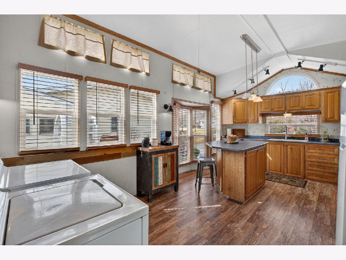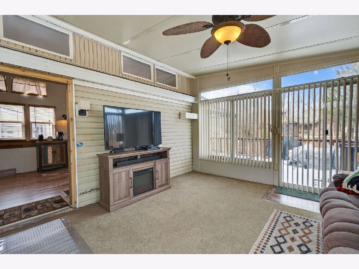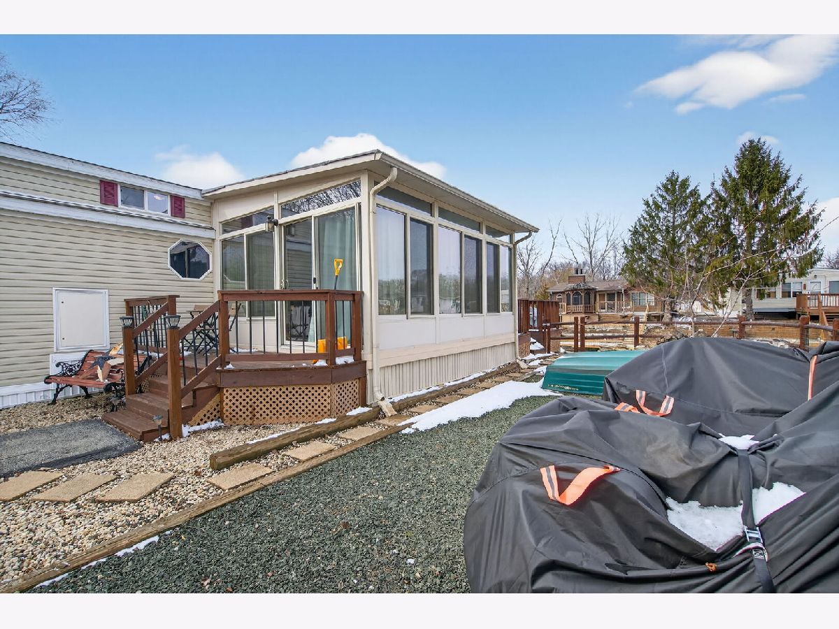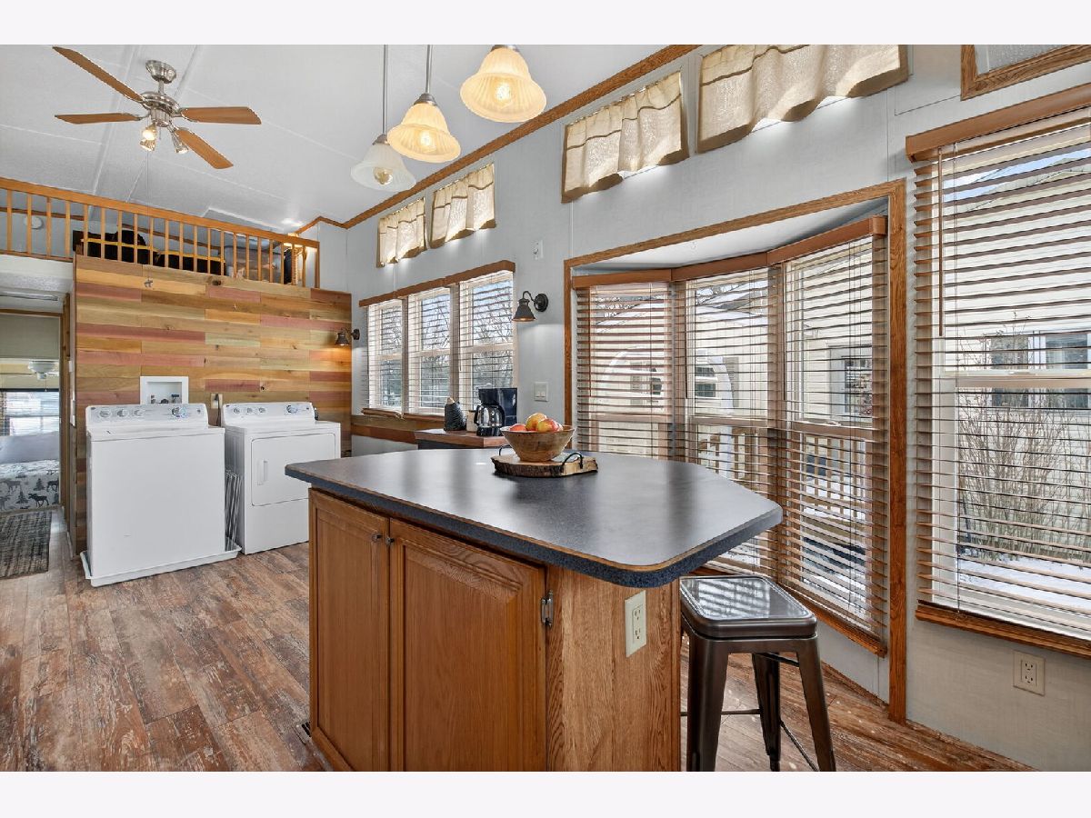 Who's ready for summer on the water? This park model with a spacious addition offers the perfect blend of comfort and getaway vibes-whether you're here for weekends, the full summer, or year-round living. Inside, you'll find a full bedroom plus a double loft-plenty of space to host friends and family. The open kitchen features a unique island/breakfast bar with stylish pendant lighting, while updated vinyl flooring adds a warm, cabin-like feel throughout. The sun-filled addition is surrounded by large windows, bringing in beautiful natural light.Step outside to enjoy a large back deck, a fenced yard with low-maintenance pea gravel, a paved driveway, and a tiered seawall with your own boat dock-ideal for making the most of waterfront living. This home comes with a basshound boat and 2008 EzGO gold cart. Located in Shadow Lakes, Live a life you do note a vacation from. Notable updates include: Full-size washer & dryer, Natural gas (no propane), New furnace (2018), New water heater (2024), Back deck refinished (2021), Front deck refinished (2022) Shadow Lakes is a private gated community surrounded by miles of interconnecting, spring-fed channels, lakes, and marshes-perfect for fishing, swimming, and boating, with some areas reaching depths of up to 42 feet, offering great opportunities for big fish. Wildlife is plentiful, adding to the natural beauty of the area. The HOA provides a wide range of amenities, including a clubhouse, two community pools, a separate sandy beach, golf cart trails, nature walks, an ice skating rink in winter, a pavilion, a dog park, and sports facilities such as volleyball and basketball courts, along with other recreational activities suitable for families and groups. Whether you're looking for a full-time residence or a weekend retreat, this community offers a relaxing and active lifestyle. Conveniently located near I-55 and only 60 minutes from Chicago, it's an ideal escape. The community allows only electric boats and golf carts, with association dues tiered based on level of usage; these dues cover your water, sewer, and garbage costs. Prospective buyers and agents are encouraged to contact Shadow Lakes or visit the website for current rules and detailed information. Please note that lot sizes and square footage are estimated.