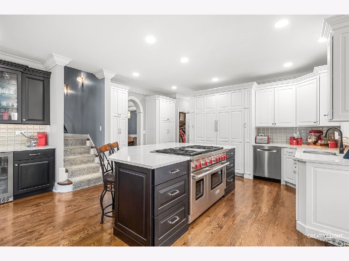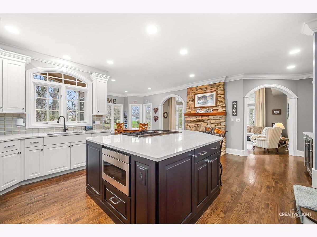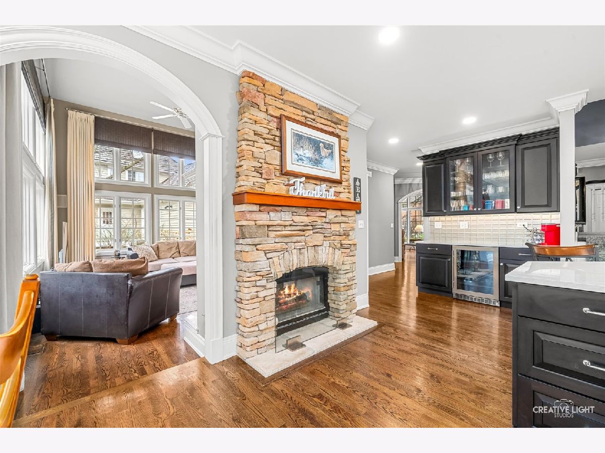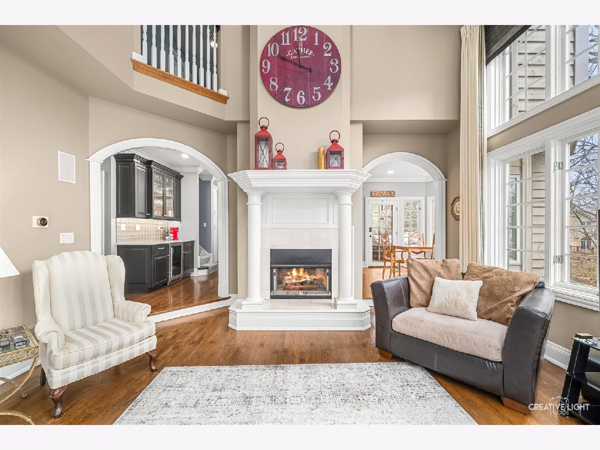 Gorgeous custom home in the Woods of Rivermist! This beauty was built by Depaulo custom builders whose reputation for quality details and craftsmanship are evident throughout this home! Fabulous curb appeal from the street with brick,cedar and stone exterior! Walk up the stone sidewalk to enter the spacious 2 story foyer flanked by a living room with soaring ceiling height and a gorgeous wall of windows!Oversized fireplace with built in bookshelves on each side of the fireplace compliment the open feeling of the room. Separate dining room with custom trim, plantation shutters and moldings!! Arched doorways, custom trim and extensive moldings showcase the first floor..First floor den makes working at home a delight. Enter the newer kitchen with custom cabinetry, quartz countertops, Sub Zero refrigerator and a Wolf 6 burner cooktop and oven. See through stone fireplace to the family room makes the kitchen an inviting place to enjoy and entertain.!Plenty of cabinet storage with spacious island for the seasoned cook and a separate wine bar with beverage center and storage! The breakfast room is filled with natural sunlight and a view of the private wooded backyard! Enjoy grilling on the deck with family and friends as you enjoy the peaceful outdoor space ! 2 story family room with dramatic wall of windows and an oversized fireplace and mantel. Hardwood flooring throughout the first floor! Large laundry room and 3 car garage.Enjoy the large master suite with newer master bath and two separate custom large closets! Oversized shower, additional storage, double sinks and beautiful quartz countertops and fixtures complete the spa like master bath. Incredible lighting throughout the home. 3 additional bedrooms with 2 of these being en-suite. Enjoy the walk out basement with additional family room, bar, exercise room and large bedroom/office with a full bathroom. Walk out to the screened in porch and the private backyard. Eat al fresco next to the outdoor fireplace surrounded by majestic oak trees.So many ways to relax and enjoy the seasons! This backyard is unique with plenty of outdoor living space.The home is located in highly acclaimed district 203! A short drive to downtown Naperville with shopping and restaurants! Walk to the nature center at Knock Knolls park! Don't miss the opportunity to live in this wonderful enclave of custom built homes.