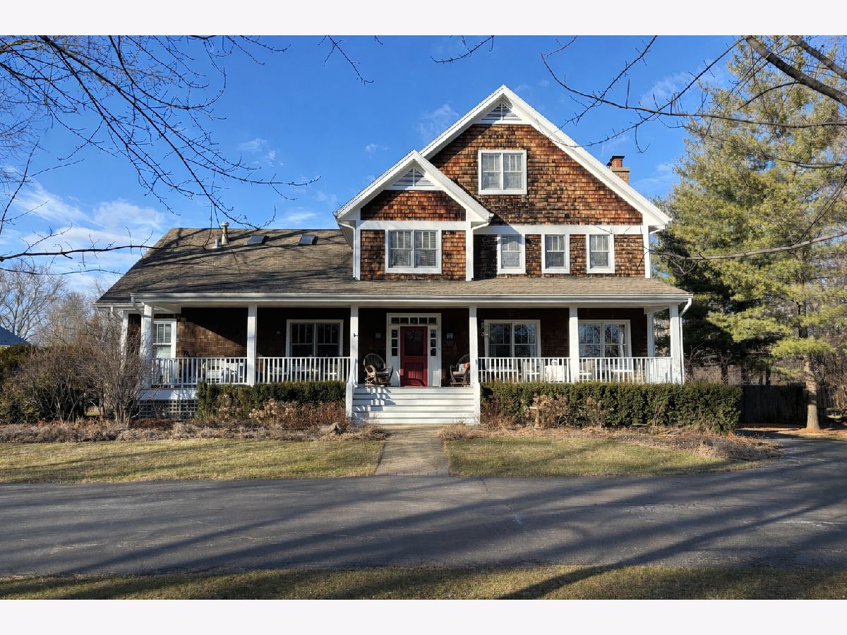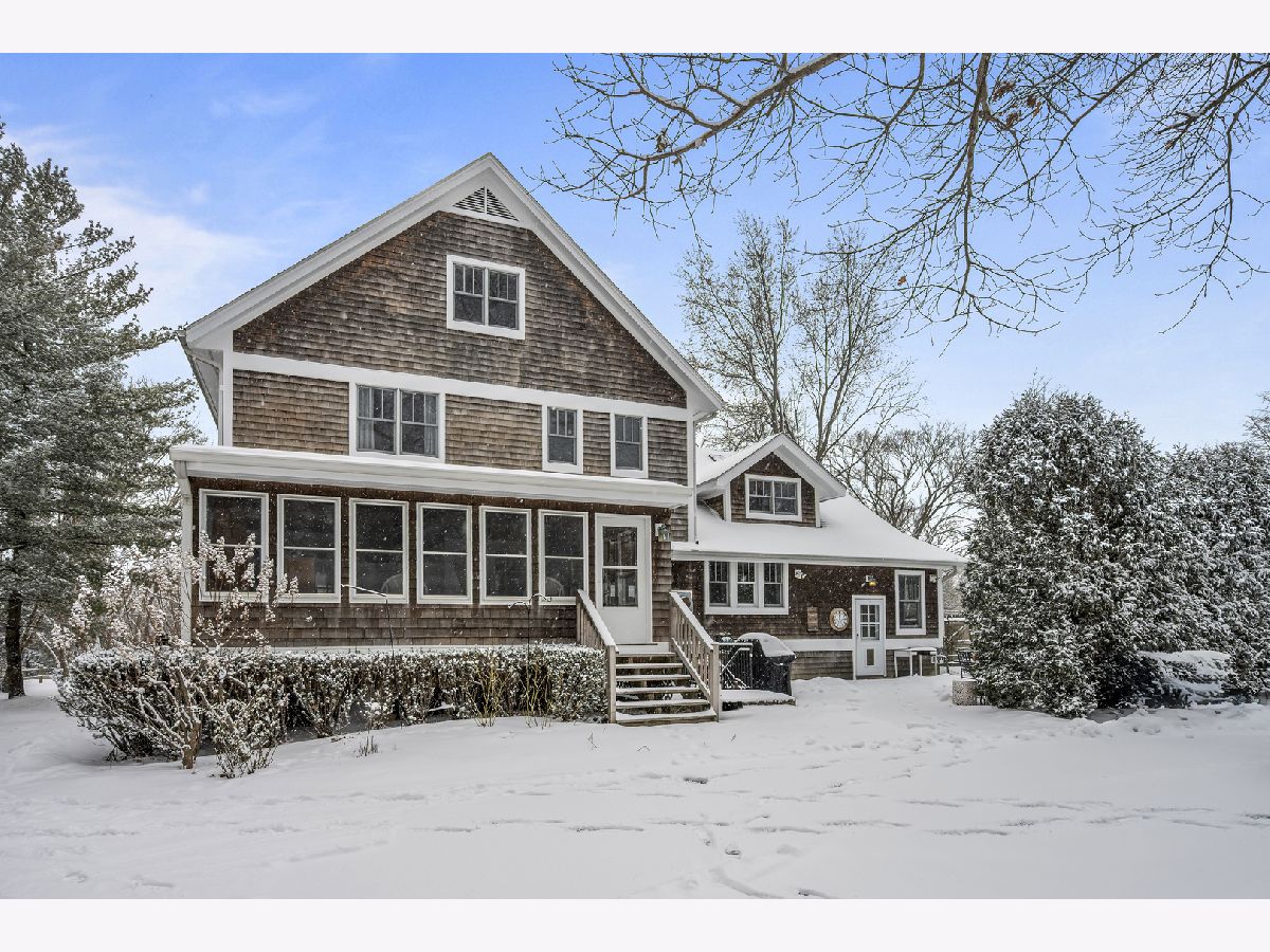 This charming home, inspired by classic Nantucket Shingle Style architecture, was thoughtfully designed to create a casual, warm, and welcoming atmosphere. Offering approximately 4,400 square feet of living space, the home features generous rooms ideal for both comfortable daily living and gracious, easy entertaining. Perfectly situated on one acre, the property provides a wonderful sense of space and privacy while maintaining an inviting, relaxed feel. An expansive front porch welcomes you, while a screened porch provides a relaxing retreat overlooking the rear yard and patio. Inside, a true great room serves as the heart of the home - ideal for gathering family and friends. Nine-foot ceilings span the first floor, enhancing the open and airy feel. The kitchen overlooks the great room and provides generous cabinet and counter space, enhanced by a 60" Viking range, that makes everyone feel like a chef! Additional first floor living spaces include a den, two private offices (or optional bedrooms) with access to a full bath, and a convenient first floor laundry room and expansive mudroom. The second floor features a generous primary suite with a private bath and ample closetry. Three additional spacious bedrooms with generous closets complete the level - one with an en-suite bath and two sharing a very large hall bath. The finished third floor adds a fun and unique space, complete with a golf practice range with launch monitor. A large, finished walk-out basement provides even more flexible living and recreation space, along with tremendous workshop and storage space. Zoned HVAC with WiFi thermostats provide efficient environmental control. Outside, the fully fenced rear yard includes automatic gates for easy access. Completing the property is a three-car detached garage, fully heated and cooled for year-round comfort. The home is walking distance to Everett School and Everett Park and is super convenient to West LF commuter train, the tollway, shopping. Enjoy the Lake Forest community and all it has to offer; superb schools, restaurants, glorious beach, fantastic library and outstanding Open Lands preserves! The best you will find!