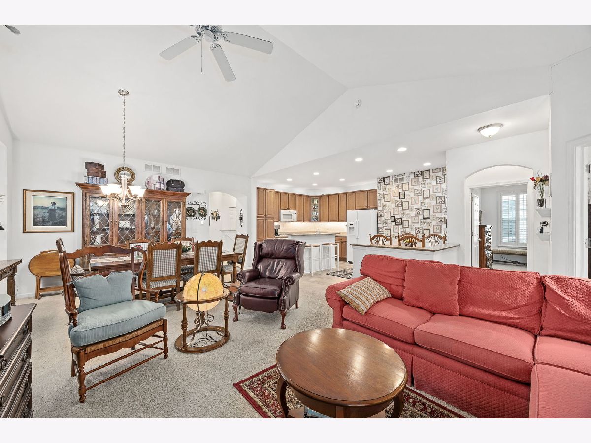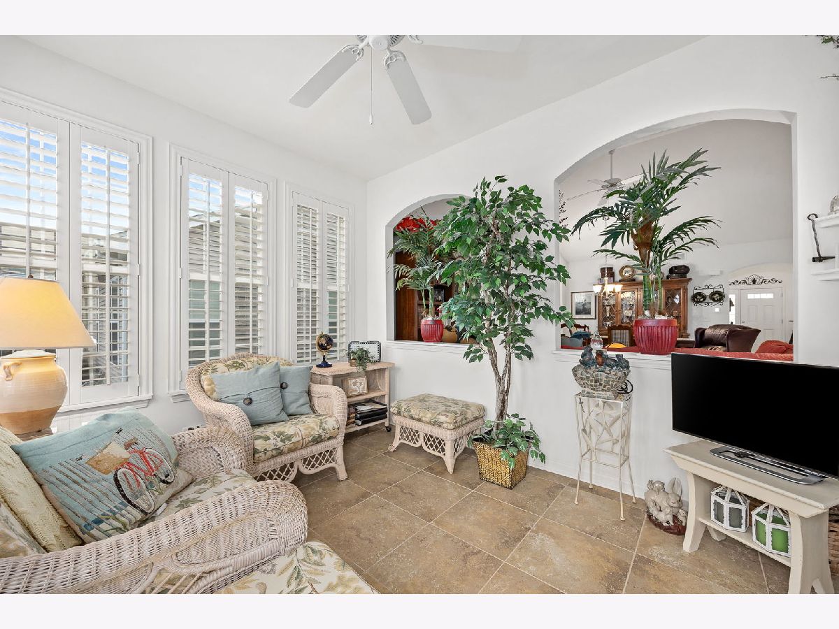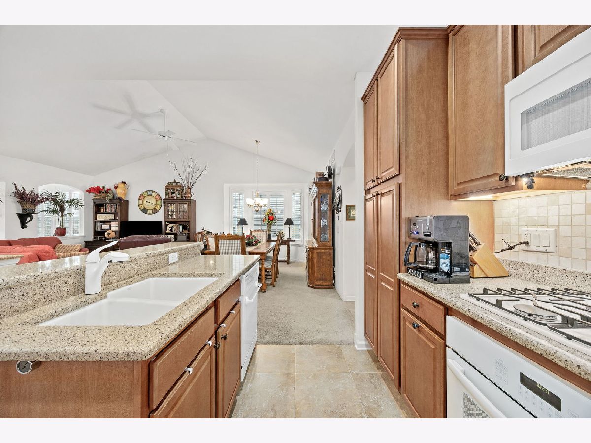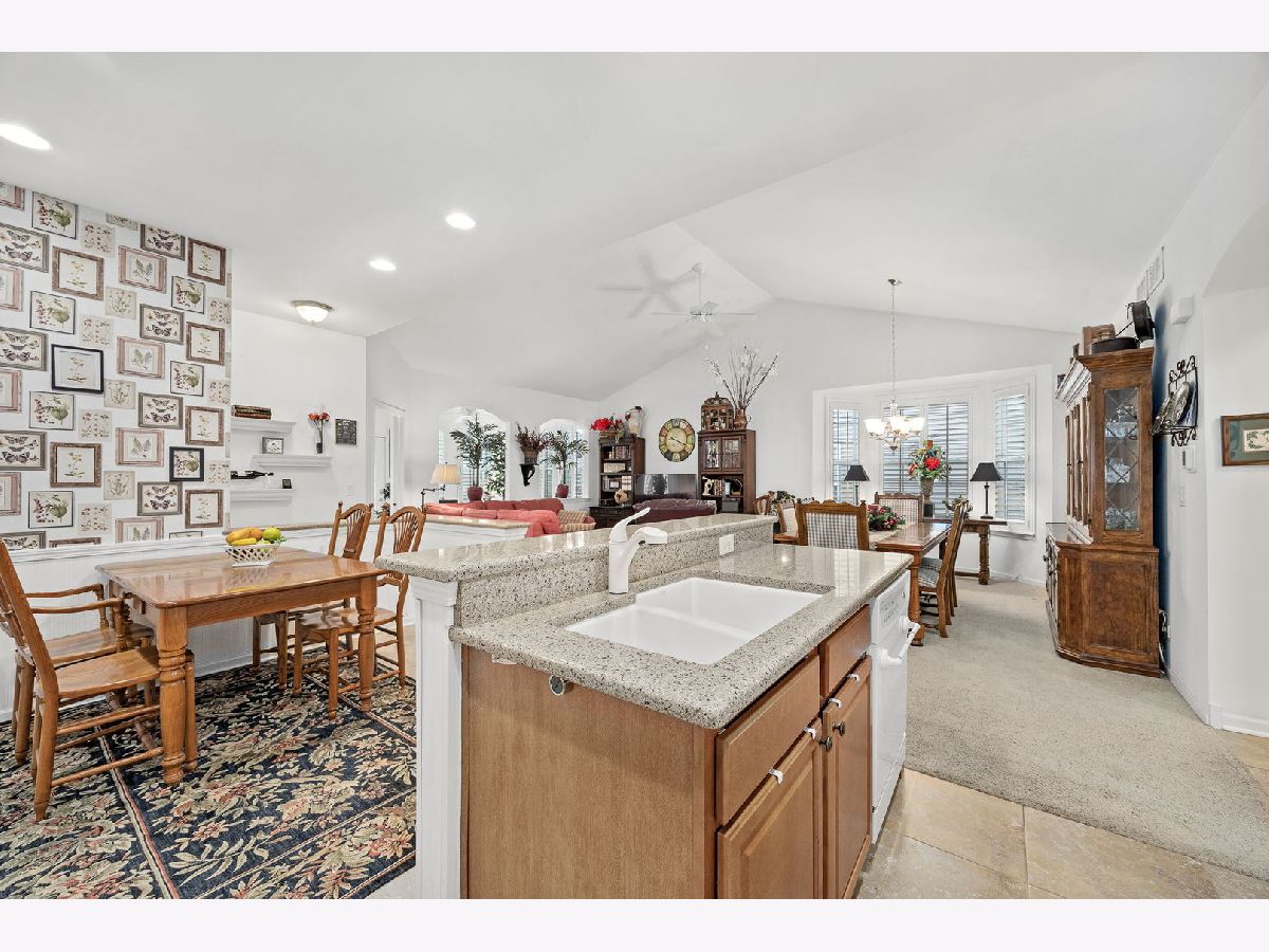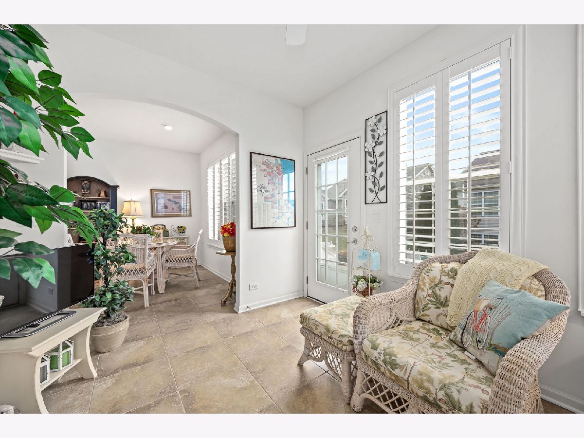 YOU DESERVE IT! Step into your next chapter of easy, elegant living in Carillon at Stonegate, a highly sought-after active 55+ community where comfort, connection, and convenience come together beautifully. This beautifully maintained, one-owner ranch home (built in 2013) offers the ideal open-concept layout with 2 bedrooms, 2 full bathrooms, a bright sunroom, a bright den, full deep-pour basement, and a 2-car attached garage. Thoughtfully designed with 9-foot ceilings, the home feels spacious, airy, and welcoming from the moment you enter. Plantation shutters throughout add timeless style and privacy, while the **sunroom-perfectly positioned to capture the morning sunrise-**creates a peaceful space to start your day. The huge deep-pour basement with high ceilings already features insulated walls, making it an excellent opportunity to easily expand your finished living space in the future-whether you envision a recreation room, home office, or guest retreat. A brand-new AC and private automated irrigation system provide peace of mind and effortless maintenance. Step outside to enjoy the concrete patio, shaded in the afternoon-ideal for relaxing, entertaining, or simply enjoying the beautifully kept community surroundings. Living in Carillon at Stonegate means access to exceptional amenities including a clubhouse, outdoor pool, fully equipped fitness center, library, kitchen and meeting spaces, billiard room, card room, bocce ball court, tennis and pickleball courts, and even an elevator for convenience. With a full calendar of social activities, clubs, and group events, you can be as active and social as you choose. Scenic walking paths, private parks, ponds and abundant green space are right outside your door. The location is unbeatable-just minutes from Route 59 Metra Station, with easy access to I-88, shopping, dining, and everyday essentials. This is a rare opportunity to own a meticulously cared-for home in one of the area's most vibrant 55+ communities-where quality shows in every aspect of the lifestyle. Welcome home!"