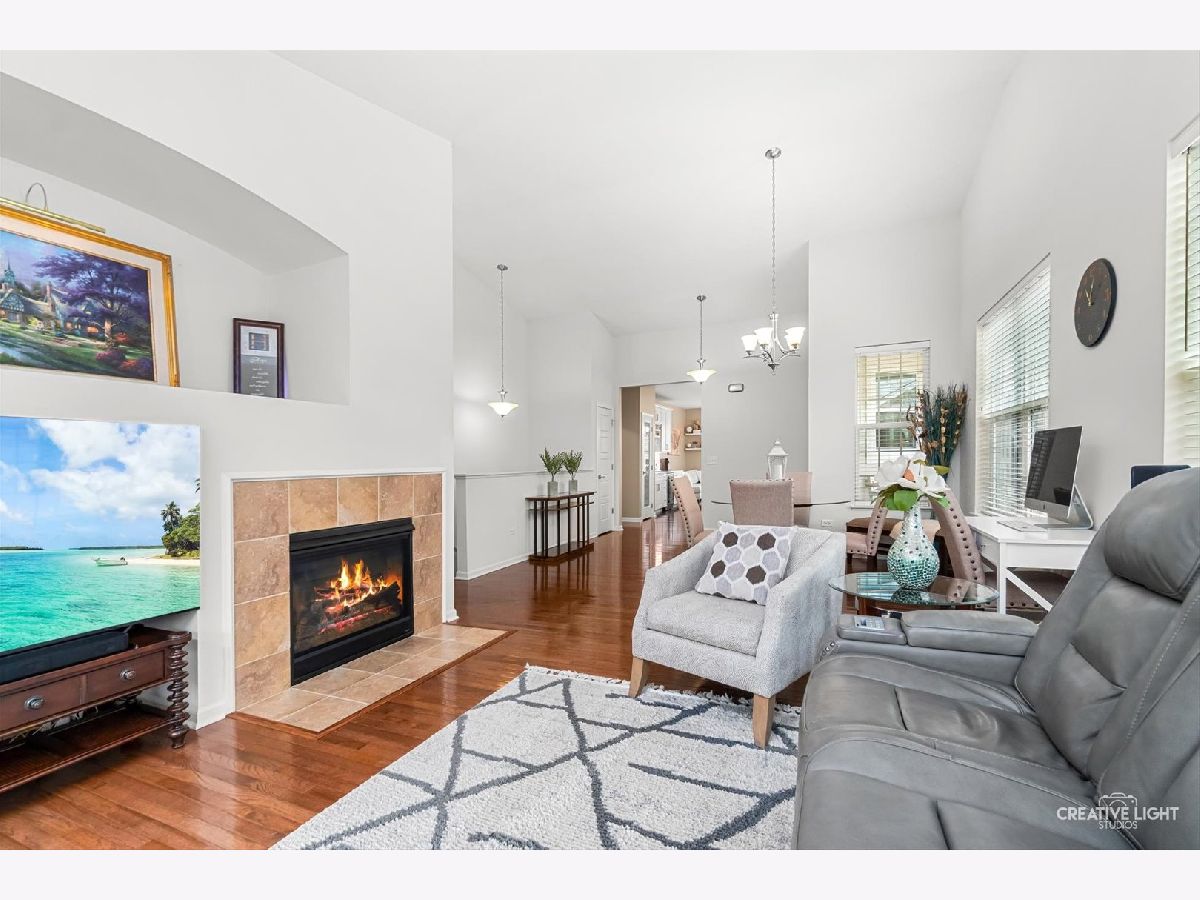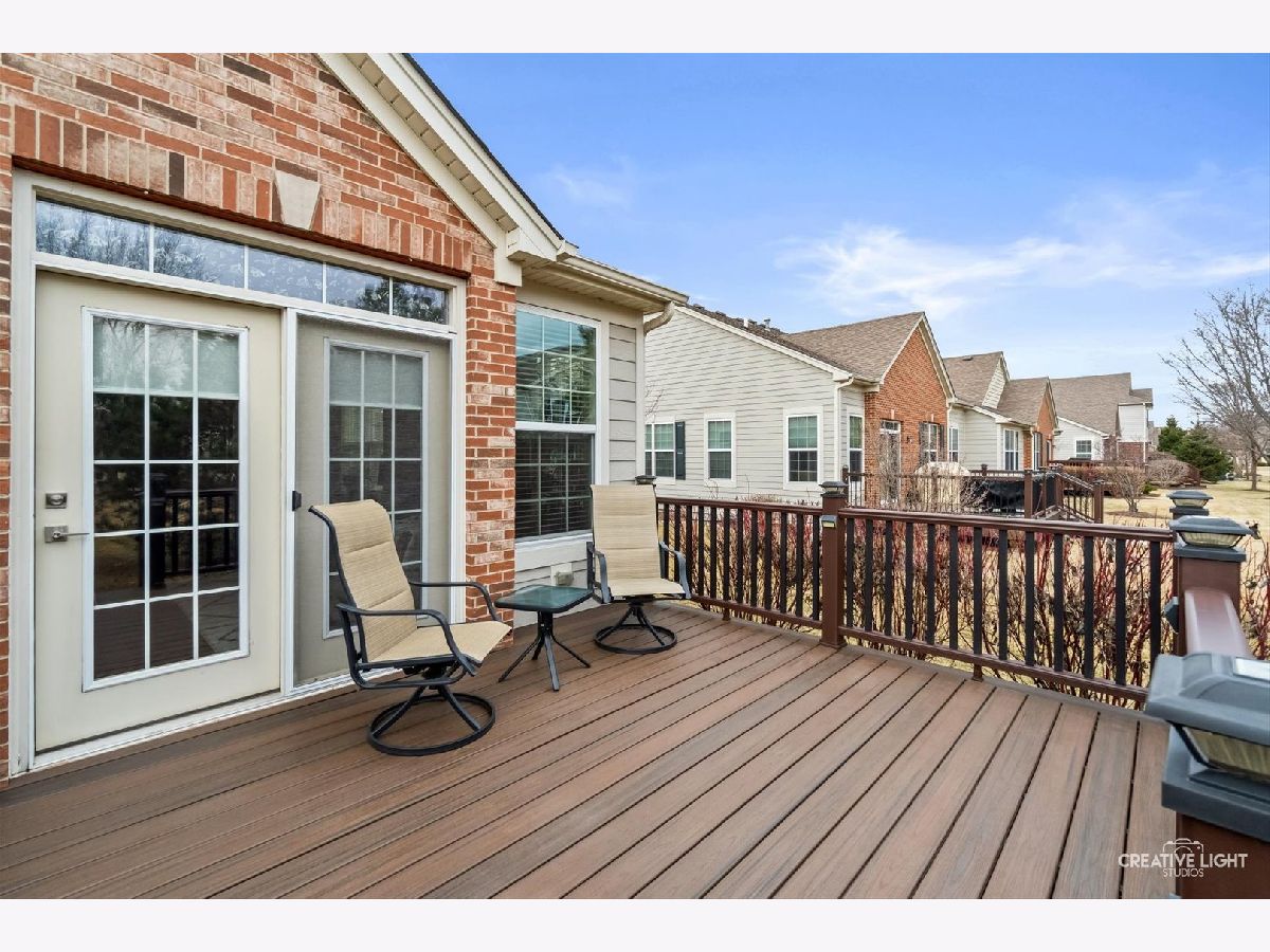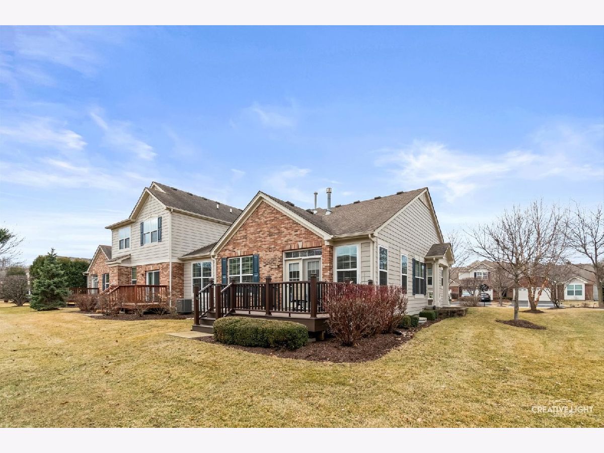 SUNDAY OPEN HOME CXLD Welcome to Patriot Place! Experience maintenance-free living in this stunning, updated, ranch townhome nestled within one of the area's premier golf course communities. New finishes welcome you as you step in the door. From the new chandelier lighting to the new solid core doors and hardware, attention to detail can be found throughout. The completely remodeled (2023) kitchen is a true showstopper-thoughtfully designed with new soft-close cabinetry, textured tile backsplash, sleek stainless steel appliances and premium quartz countertops. A generous center island provides, abundant storage, large prep space and seating. Impressive additions include a frosted pantry door, dual zone wine refrigerator and coffee bar. A comfortable eat in area completes the kitchen offering a perfect setting for casual dining, additional workspace and everyday gatherings. Bathed in natural light, the open living and dining room blends comfort and style, featuring a built-in, easy switch fireplace for added ambiance. Classic french doors with custom blinds, lead to the new low maintenance trek deck-where you can unwind or entertain. Back inside, the primary suite offers a peaceful retreat featuring a beautifully appointed ensuite bath with double vanity, soaking tub and separate shower. The spacious walk in closet has been enhanced with a new organizational system designed to keep everything effortlessly in its place. A secondary bedroom offers versatility for guests or workspace needs, paired with a nearby full bath for added convenience. The main floor laundry/mudroom is perfectly positioned off the garage for seamless entry, complete with newer washer/dryer and bead-board accent that adds character to your daily routine. Modern ease has been integrated with a Nest Smart home thermostat and upgraded myQsmart garage door opener. The finished basement expands your living space with an open layout that offers endless possibilities, along with an additional bedroom and full bath. Furthering the lower level is a storage/utility room with new water heater-providing an ample storage space while maintaining the efficient home systems. Please be sure to find our feature sheet listing all of the many impressive details that take this home beyond builder-grade to a refined living experience. Located off the Bolingbrook Golf Course, with easy access to interstate, shopping and dining options, this home feeds into Plainfield School district 202 and is ready for you to enjoy!