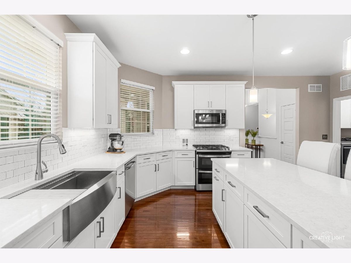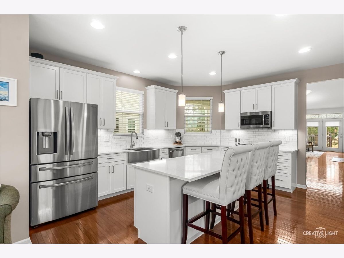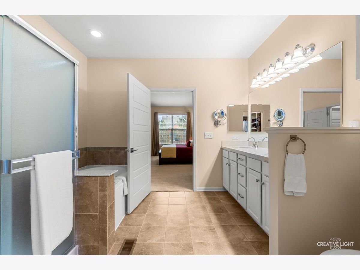 SUNDAY OPEN HOME CXLD Welcome to Patriot Place! Experience maintenance-free living in this stunning, updated, ranch townhome nestled within one of the area's premier golf course communities. New finishes welcome you as you step in the door. From the new chandelier lighting to the new solid core doors and hardware, attention to detail can be found throughout. The completely remodeled (2023) kitchen is a true showstopper-thoughtfully designed with new soft-close cabinetry, textured tile backsplash, sleek stainless steel appliances and premium quartz countertops. A generous center island provides, abundant storage, large prep space and seating. Impressive additions include a frosted pantry door, dual zone wine refrigerator and coffee bar. A comfortable eat in area completes the kitchen offering a perfect setting for casual dining, additional workspace and everyday gatherings. Bathed in natural light, the open living and dining room blends comfort and style, featuring a built-in, easy switch fireplace for added ambiance. Classic french doors with custom blinds, lead to the new low maintenance trek deck-where you can unwind or entertain. Back inside, the primary suite offers a peaceful retreat featuring a beautifully appointed ensuite bath with double vanity, soaking tub and separate shower. The spacious walk in closet has been enhanced with a new organizational system designed to keep everything effortlessly in its place. A secondary bedroom offers versatility for guests or workspace needs, paired with a nearby full bath for added convenience. The main floor laundry/mudroom is perfectly positioned off the garage for seamless entry, complete with newer washer/dryer and bead-board accent that adds character to your daily routine. Modern ease has been integrated with a Nest Smart home thermostat and upgraded myQsmart garage door opener. The finished basement expands your living space with an open layout that offers endless possibilities, along with an additional bedroom and full bath. Furthering the lower level is a storage/utility room with new water heater-providing an ample storage space while maintaining the efficient home systems. Please be sure to find our feature sheet listing all of the many impressive details that take this home beyond builder-grade to a refined living experience. Located off the Bolingbrook Golf Course, with easy access to interstate, shopping and dining options, this home feeds into Plainfield School district 202 and is ready for you to enjoy!