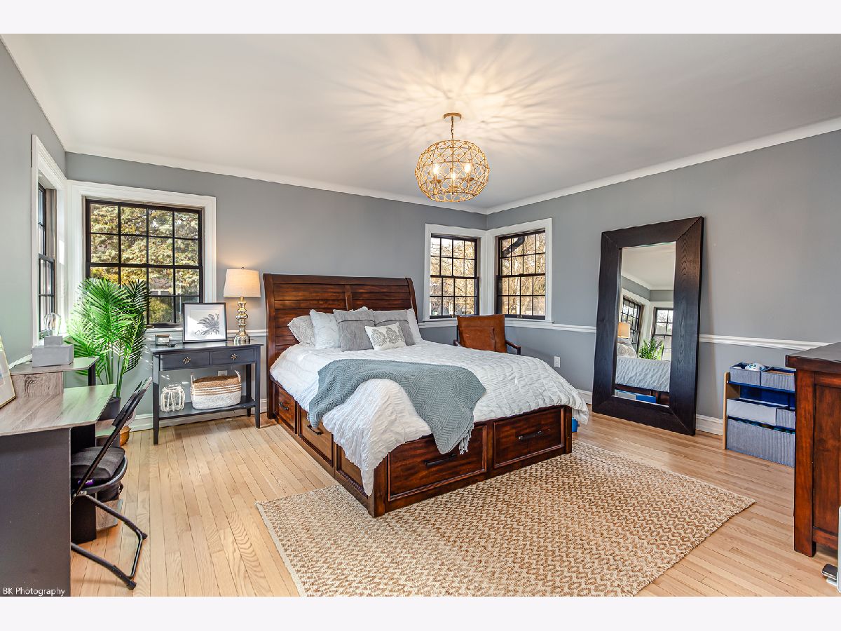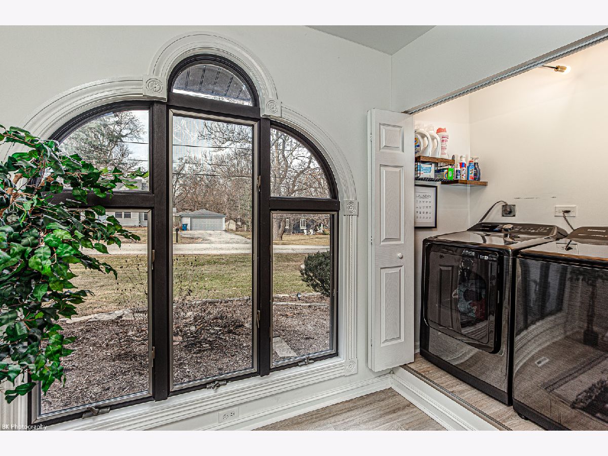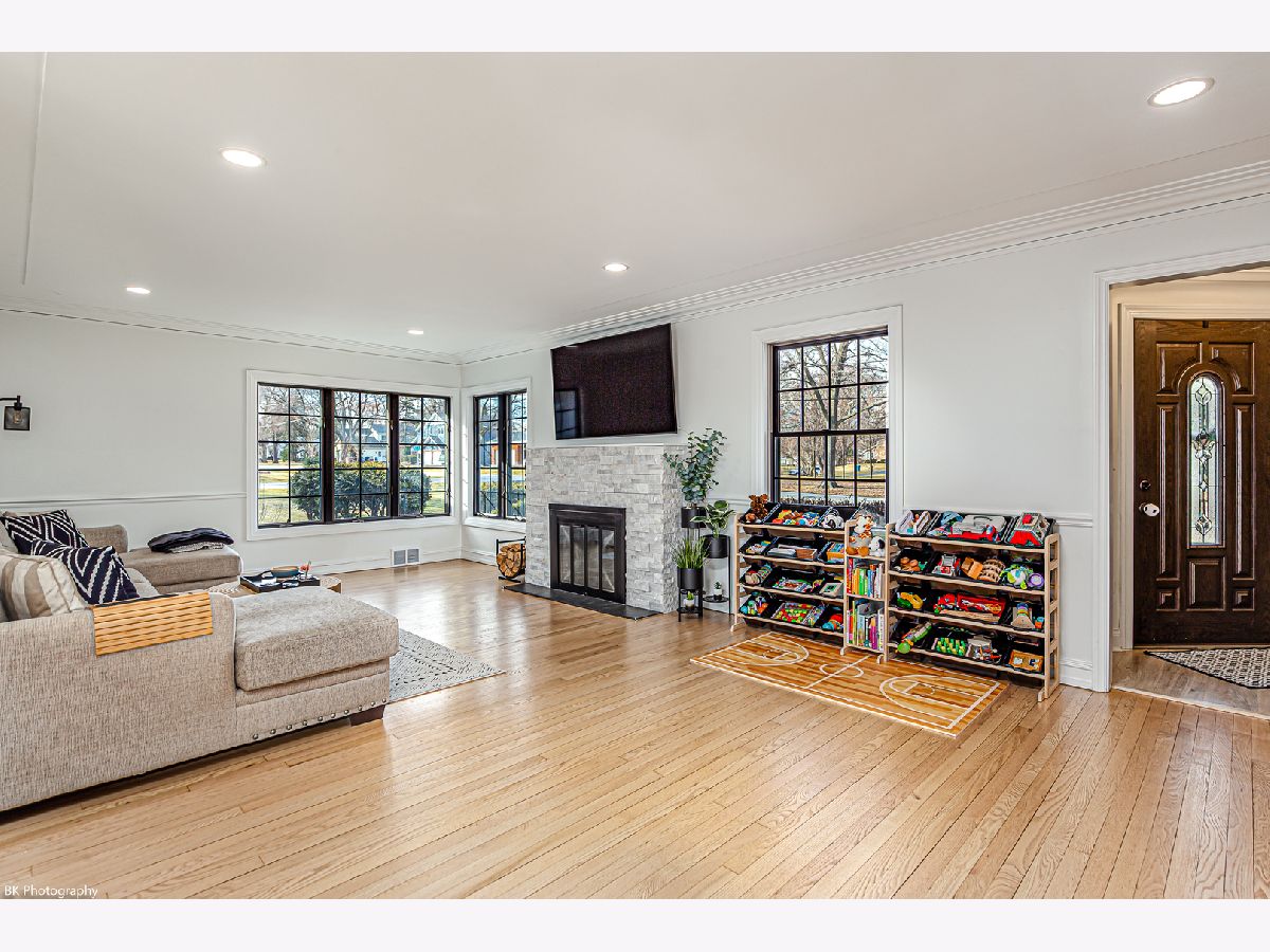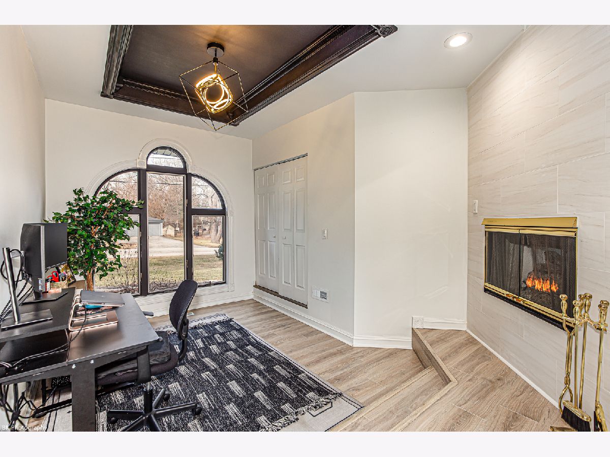 Stunning 3 bedroom, 3 bath Palos Heights sprawling ranch home has been renovated throughout and is on a 119 X 150 lot! This meticulous home features gleaming hardwood floors, updated fixtures, solid 6 panel wood doors, an inviting living room with crown molding, wood burning ledger-stone fireplace and custom built-in bookshelves. The modern eat-in kitchen has been renovated with white shaker cabinets, quartz countertops, subway-tile backsplash, pantry, stainless steel Samsung smart appliances, island, peninsula, two skylights, wine fridge and a sun-filled dinette that overlooks the serene yard! Formal dining area with patio door to the deck. You will love the 24x32 master suite with vaulted ceilings, two skylights, two-sided fireplace, sitting room/den, a large closet with new washer/dryer, two additional closets and huge walk-in closet. Luxurious master bath with comfort height dual sink vanity, electronic blinds, custom tiled, seated walk-in shower with dual heads and a water closet! Two additional good sized bedrooms and ultra-modern fully remodeled bath. This home has two basements, one with rec room, full bathroom, storage space and laundry hook up (potential for related living). The additional basement is exterior access only and is located under the master bedroom addition - currently being used as a gym! This home's exterior has been custom painted with a new tear off roof and landscaping! The wooded, fenced yard has a beautiful wrap-around deck, tons of green space, mature trees and a new custom built shed! The extra wide driveway leads to the attached two car garage. Seller offering buyer a $5,000 buyer allowance / credit. Recent upgrades since 2022 include: fully renovated kitchen and main level baths, tear-off roof, refinished hardwood floors, kitchen appliances, washer, dryer, custom shed, landscaping, modern paint and radon mitigation system (2024). The home has Andersen Windows. Fantastic location near shopping, restaurants, parks, schools, Palos Community Hospital and quick access to I-294! Fireplaces and deck are as-is.