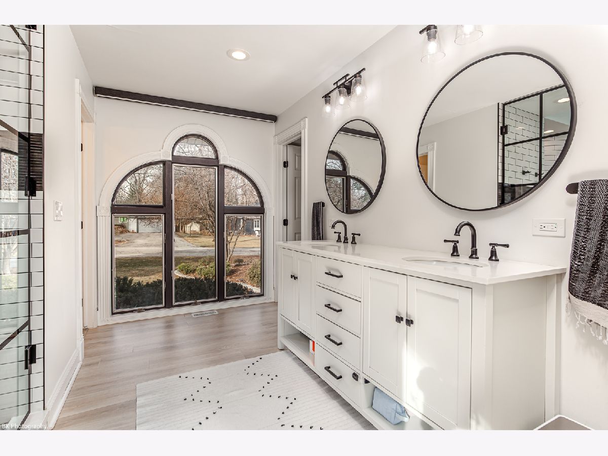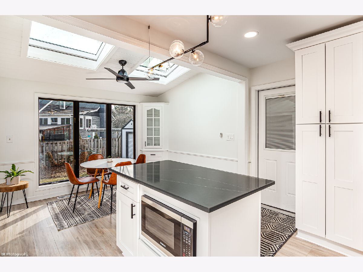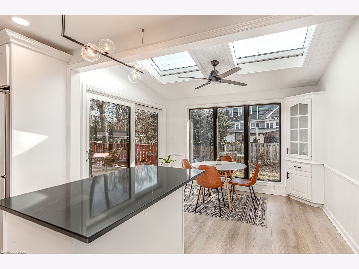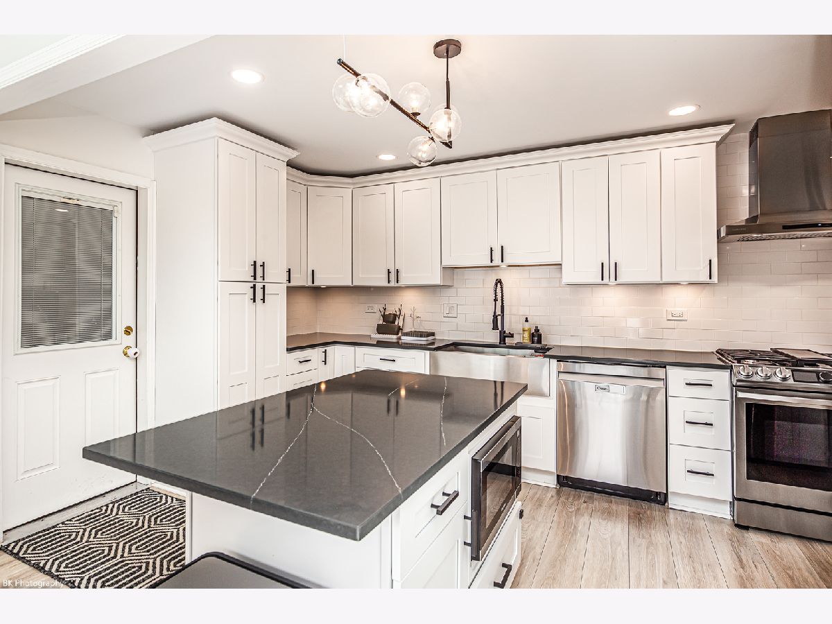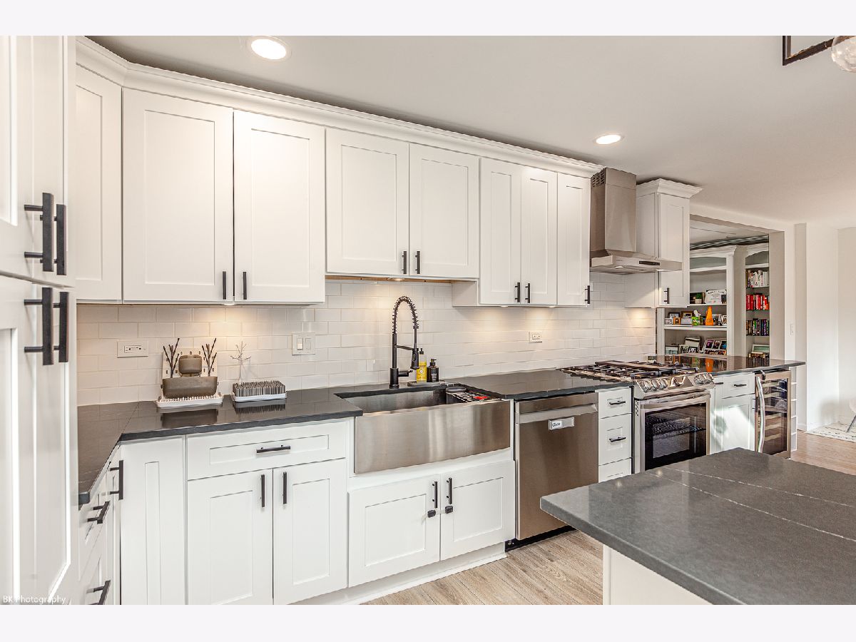 Stunning 3 bedroom, 3 bath Palos Heights sprawling ranch home has been renovated throughout and is on a 119 X 150 lot! This meticulous home features gleaming hardwood floors, updated fixtures, solid 6 panel wood doors, an inviting living room with crown molding, wood burning ledger-stone fireplace and custom built-in bookshelves. The modern eat-in kitchen has been renovated with white shaker cabinets, quartz countertops, subway-tile backsplash, pantry, stainless steel Samsung smart appliances, island, peninsula, two skylights, wine fridge and a sun-filled dinette that overlooks the serene yard! Formal dining area with patio door to the deck. You will love the 24x32 master suite with vaulted ceilings, two skylights, two-sided fireplace, sitting room/den, a large closet with new washer/dryer, two additional closets and huge walk-in closet. Luxurious master bath with comfort height dual sink vanity, electronic blinds, custom tiled, seated walk-in shower with dual heads and a water closet! Two additional good sized bedrooms and ultra-modern fully remodeled bath. This home has two basements, one with rec room, full bathroom, storage space and laundry hook up (potential for related living). The additional basement is exterior access only and is located under the master bedroom addition - currently being used as a gym! This home's exterior has been custom painted with a new tear off roof and landscaping! The wooded, fenced yard has a beautiful wrap-around deck, tons of green space, mature trees and a new custom built shed! The extra wide driveway leads to the attached two car garage. Seller offering buyer a $5,000 buyer allowance / credit. Recent upgrades since 2022 include: fully renovated kitchen and main level baths, tear-off roof, refinished hardwood floors, kitchen appliances, washer, dryer, custom shed, landscaping, modern paint and radon mitigation system (2024). The home has Andersen Windows. Fantastic location near shopping, restaurants, parks, schools, Palos Community Hospital and quick access to I-294! Fireplaces and deck are as-is.