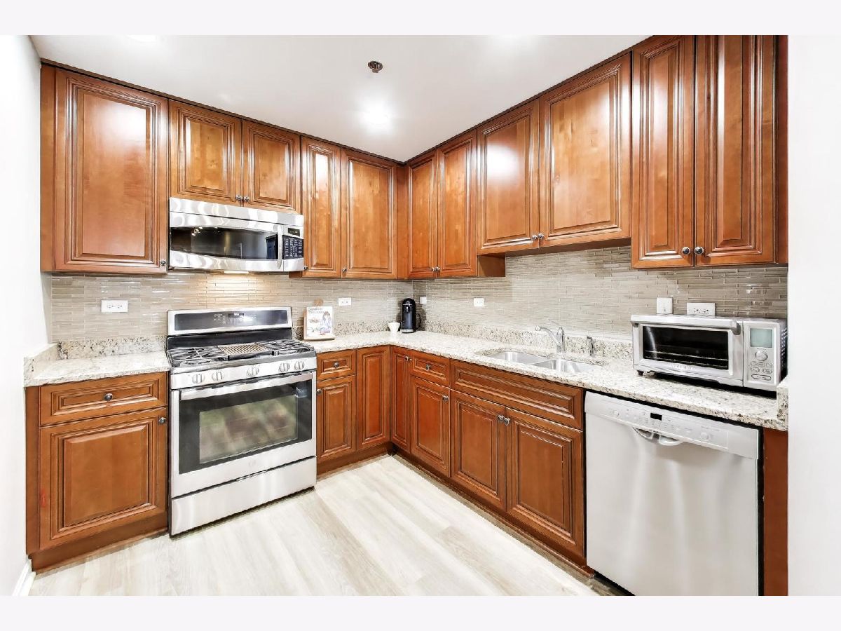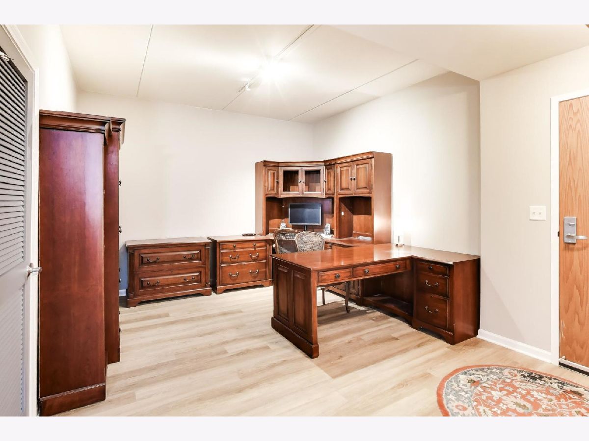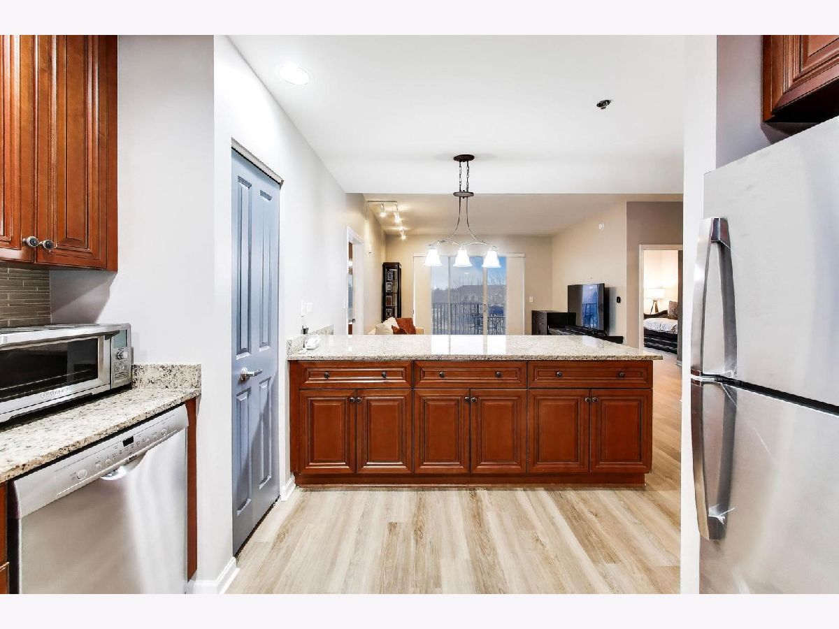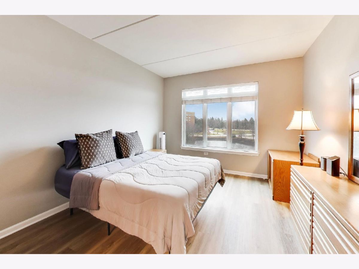Beautiful 3rd-floor condo with a private balcony overlooking the pond! This light-filled home is completely move-in ready, featuring brand-new luxury wood plank flooring and fresh paint throughout. The open-concept floor plan is perfect for everyday living and entertaining. The spacious kitchen boasts solid wood 42" cabinetry, granite countertops, stainless steel appliances, a pantry closet, and a large island with seating. Just off the main living area is a versatile space ideal for a dining room or home office. The generously sized primary suite offers a large walk-in closet with a custom closet system plus an additional wall closet for extra storage. The primary bathroom features a wide double vanity, walk-in shower, and linen closet. The second bedroom includes a full wall closet with custom shelving, while the second bathroom offers a relaxing deep soaking tub. Additional highlights include in-unit washer and dryer, a covered parking space, and a private storage cage in the heated garage. Located in the desirable Port Clinton neighborhood, this home is close to shopping, restaurants, parks, and scenic trails. All within the highly sought-after Adlai E. Stevenson High School District 125. With its flexible layout, abundant storage, and beautiful natural light, this condo offers comfort, convenience, and a peaceful setting you'll love coming home to.