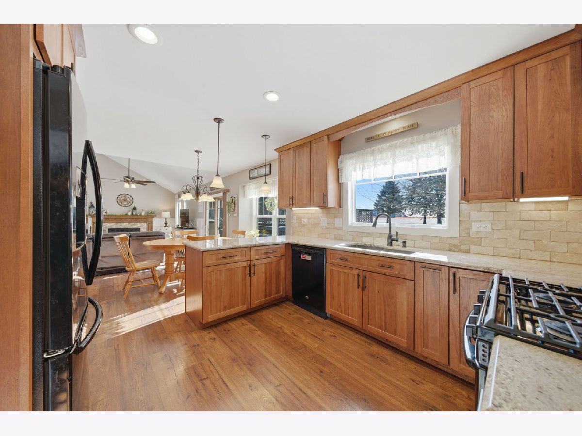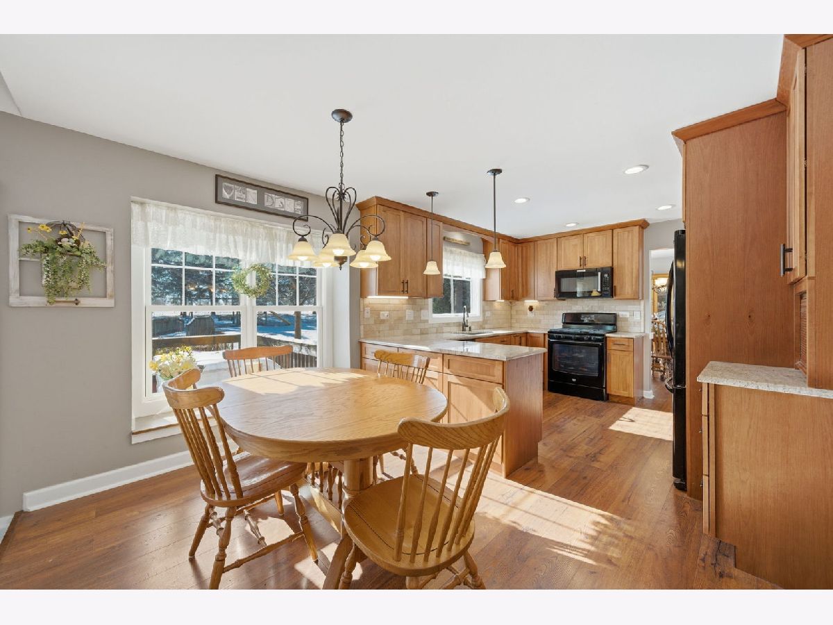 Set on a beautifully landscaped 1-acre lot in Elgin, Illinois, this meticulously maintained residence is proudly offered by its original owners and showcases thoughtful, high-quality updates throughout. This exceptional 4-bedroom, 2.5-bath home blends timeless craftsmanship with modern enhancements. The stunning eat-in kitchen serves as the heart of the home, featuring custom cabinetry, granite countertops, and a spacious pantry - ideal for both everyday living and entertaining. High quality laminate, Pergo flooring flows throughout the entire first floor and continues into all bedrooms, complemented by solid hardwood doors that add warmth and character. The inviting living room boasts soaring ceilings, a cozy fireplace, and an abundance of natural light, creating a bright and comfortable gathering space. Fresh neutral paint and stylish shiplap paneling throughout the home add a refined, contemporary touch. Practicality meets convenience with an oversized first-floor laundry/mudroom. Major mechanical and exterior updates provide peace of mind, including new sliding doors and ALL new windows, a new roof, brand new smart siding, and a newer HVAC system. The finished basement offers versatile, additional living space along with generous storage options. Outdoors, enjoy your own private retreat featuring a new pool, expansive yard, and fire pit - perfect for relaxing evenings or hosting family and friends. Situated in a quiet neighborhood within a top-ranked school districts, this property offers the ideal combination of privacy, quality, and location. A rare opportunity to own a truly move-in-ready home with exceptional upgrades and space both inside and out! Come see for yourself!