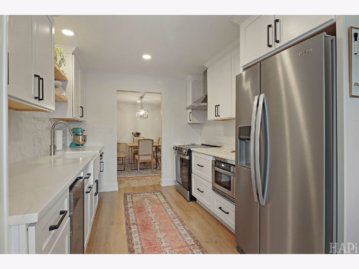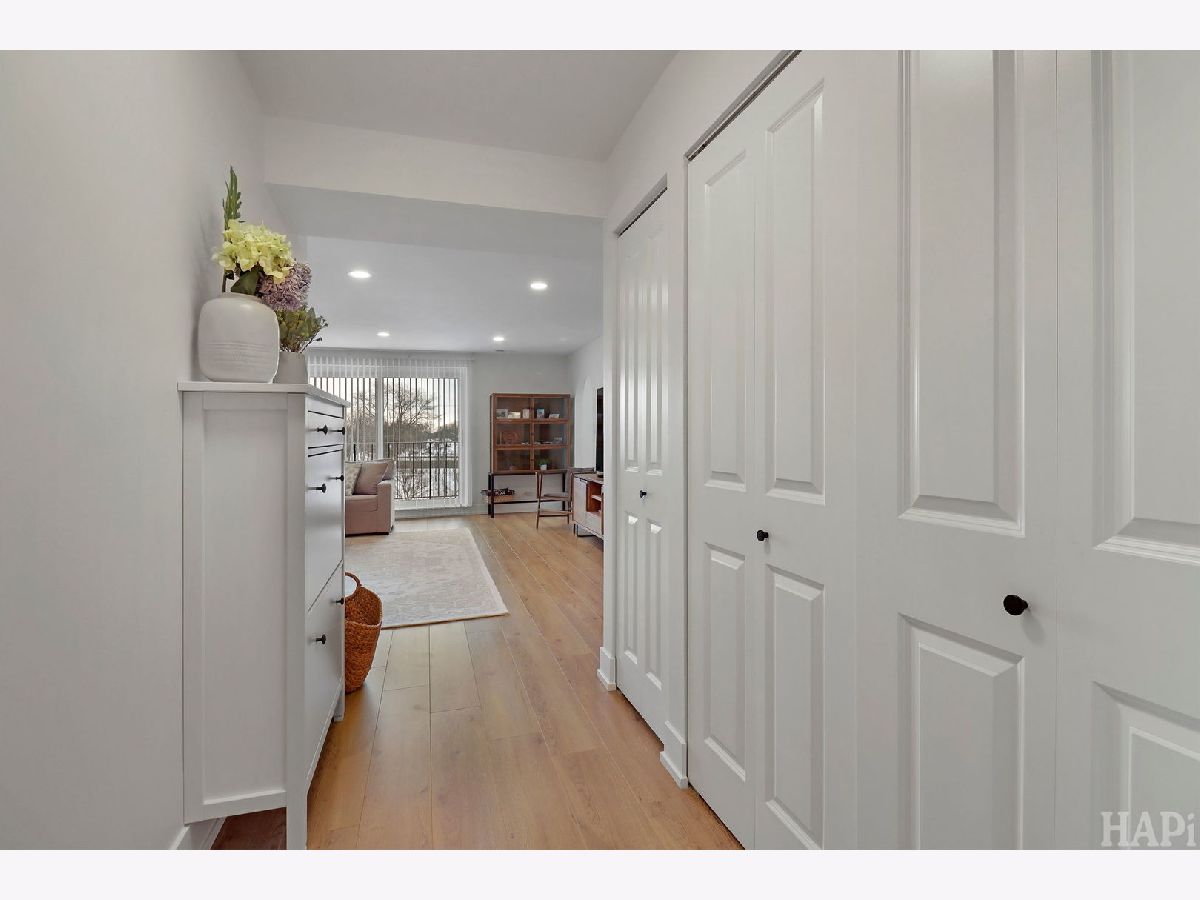 Discover modern living at its finest in this newly renovated 2-bedroom, 2-full bath top-floor corner unit. It's perfectly situated between downtown Mount Prospect and Arlington Heights, truly the best of both worlds. This bright and spacious home has been fully updated in 2025, featuring new plumbing and electrical, a custom kitchen, a large custom pantry with floor-to-ceiling solid wood doors, and fully renovated bathrooms. The standout primary suite includes a generously sized walk-in closet and a beautifully updated full bath, providing a private retreat. Enjoy abundant storage throughout, plus an additional same floor storage unit for ultimate convenience. The unit includes a full-size in-unit washer and dryer, two large sun filled bedrooms, and generously sized bathrooms. The building offers a heated garage with one assigned parking space, along with ample outdoor parking for guests or extra vehicles. Move in ready with modern finishes, exceptional natural light, and an unbeatable location. This is a rare find you won't want to miss!