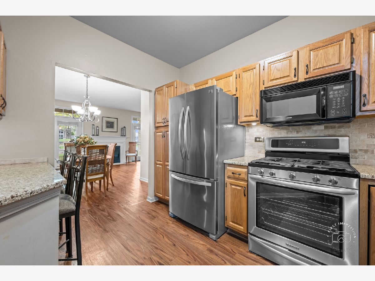 This storybook end-unit ranch offers a premium location in The Fields, overlooking its own private green space. Bright and filled with natural light, this beautifully maintained home features numerous recent updates throughout.The spacious kitchen is well-appointed with stainless steel appliances, granite countertops, under-cabinet lighting, abundant storage, and a convenient bar area with additional cabinetry. Recent improvements include a new front door and fireplace (2025), a new storm door and water heater (2023), and fully updated bathrooms (2022). Warm, modern paint colors enhance the inviting atmosphere throughout the home. Additional highlights include an attached one-car garage with built-in storage. Ideally located just minutes from downtown Naperville, Springbrook Prairie Path, shopping, dining, and situated within highly regarded School District 204.