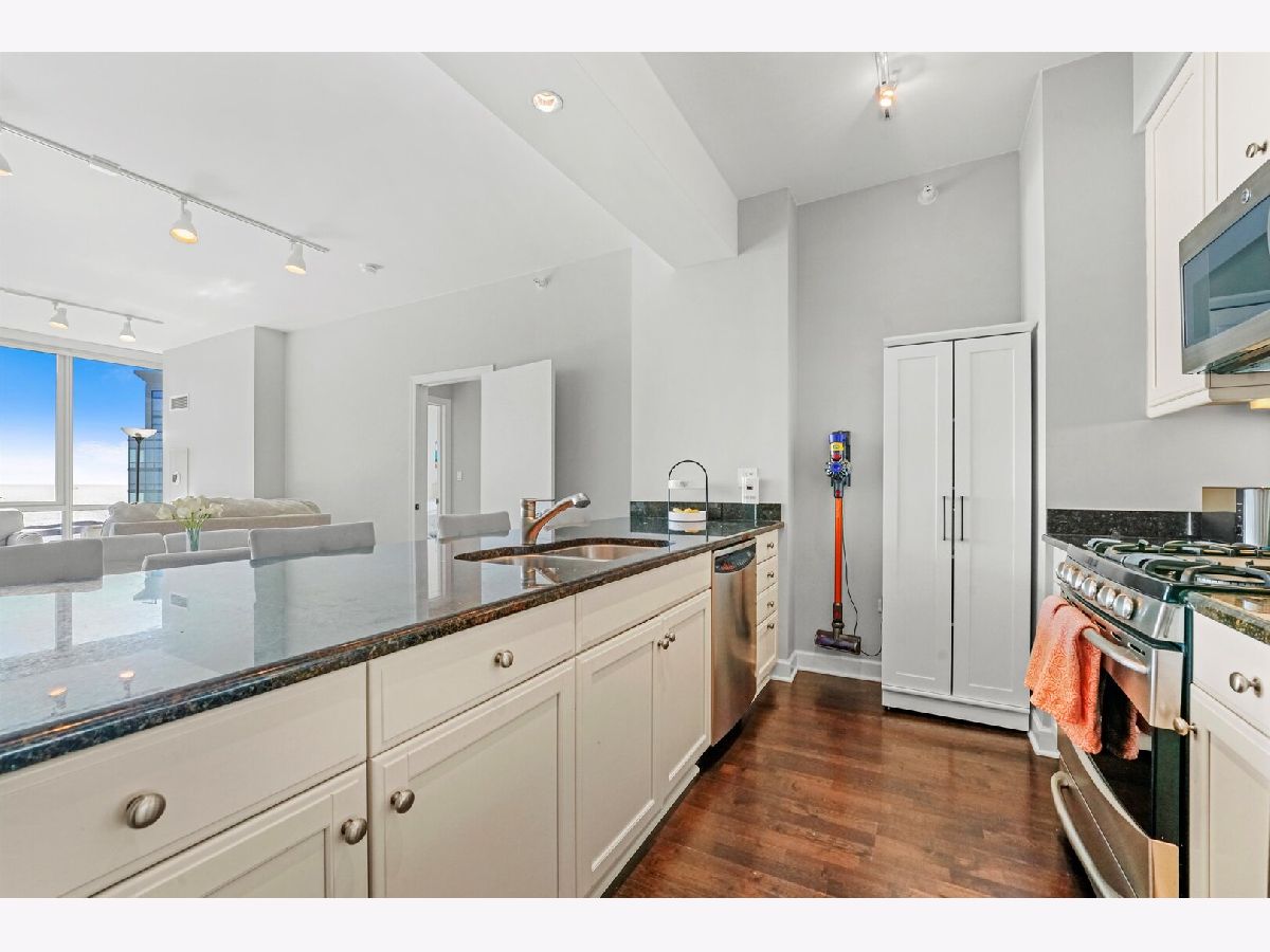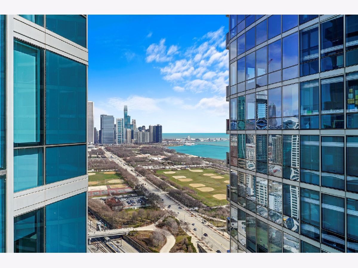 Exquisite high-floor '04 tier corner residence at One Museum Park West. The Grant is one of the South Loop's most prestigious luxury towers. This stunning 2-bedroom, 2-bath home offers 1,250 square feet of impeccably updated living space and is truly move-in ready. Floor-to-ceiling east-facing windows give the home plenty of natural light while framing breathtaking panoramic views of Lake Michigan, Grant Park, and Soldier Field. The expansive open-concept living and dining areas are ideal for both everyday living and elegant entertaining, showcasing hardwood floors throughout and a sleek gourmet kitchen with stainless steel appliances, granite counters and abundant storage. The highly desirable split-bedroom layout provides privacy and comfort, with two fully enclosed bedrooms, each enjoying serene lake views and its own beautifully updated en-suite bath. The primary suite features a generous walk-in closet and a custom walk-in shower. Additional highlights include an in-unit washer and dryer, custom tile work, a large walk-in pantry and coat closet, and an oversized covered balcony-perfect for enjoying sweeping city and lake views in every season. One Museum Park West is a full-amenity luxury building offering 24-hour door staff, on-site management, an indoor pool and spa, state-of-the-art fitness center, stunning sundeck with grills, resident lounge and party room with catering kitchen, business and conference centers, private movie theater, children's playroom, extra storage, dog run, and pet wash.Unbeatable South Loop location offering the best of city living in a quiet, residential setting. Enjoy true walkability to everything Chicago has to offer-from concerts and games at Soldier Field to the world-class museums and planetarium, lakefront running and biking paths, Burnham Harbor, Grant Park, Millennium Park, 12th Street Beach, and Northerly Island. Just two blocks from the CTA 'L' and close to everyday conveniences including Trader Joe's, Mariano's, Target, and an incredible selection of neighborhood restaurants. Walk to Roosevelt Collection shopping and dining, featuring favorites such as Chicago Firehouse, Victory Tap, Flo & Santos, plus a movie theater. The Metra line is only a few blocks away, providing effortless regional access. Commuters will appreciate easy access to I-290, I-90/94, and I-55, while families benefit from highly sought-after public and private school options, including the acclaimed South Loop Elementary School-one of Chicago's most desirable public schools. At Roosevelt Station, residents can access the Red, Green, and Orange CTA lines, further enhancing connectivity. Enjoy a true front-row seat to Chicago's most iconic events-from Soldier Field concerts to the Air & Water Show, NASCAR races, and the Chicago Marathon-all from the comfort of home. You will not find another location like this in the South Loop. One garage parking space included in the listing price. Pets are welcome 2 pet maximum, 75 pound weight limit for dogs. Please see additional info section on the mls for all disclosures, building move-in docs, floor plan, rules & regulations, facts sheet (unit details, building details).