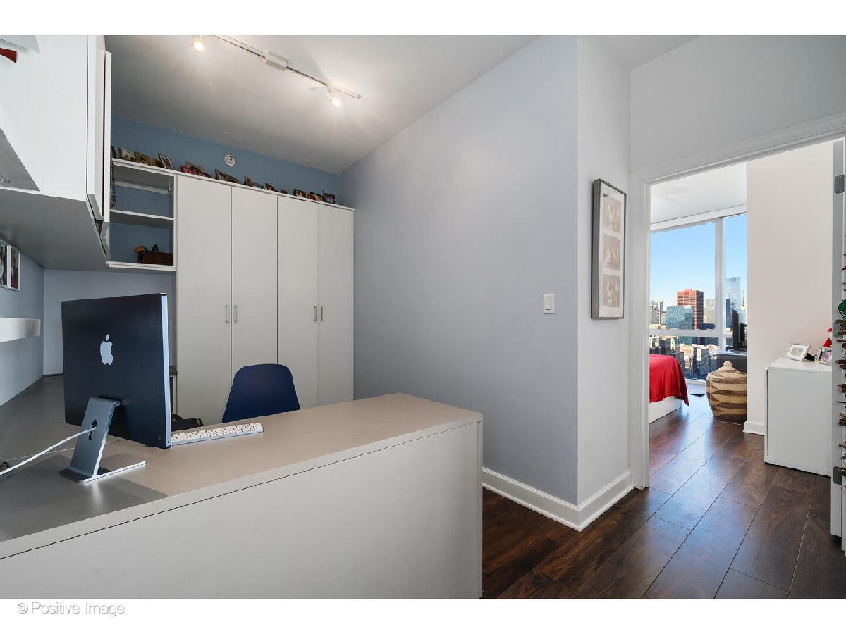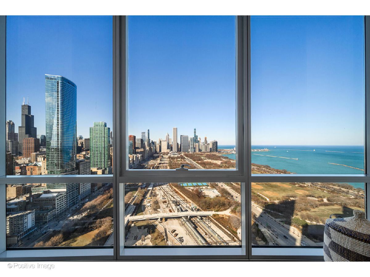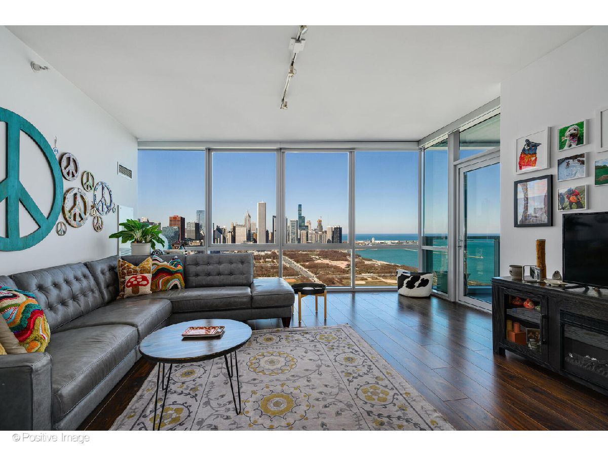 Experience luxury living in this pristine model home, where floor-to-ceiling windows frame unobstructed, outstanding views of the Chicago skyline, Lake Michigan, and Grant Park. This sophisticated 2-bedroom plus spacious den/office features a high-end kitchen with Snaidero Italian cabinetry, white quartz countertops, and a premium SubZero/Wolf/Bosch appliance package. The interior is finished with 5" wide-plank walnut flooring, a private balcony, and the convenience of in-unit laundry. The building offers world-class amenities, including a 24-hour doorman, indoor pool, fitness center, sun deck with grills, movie theater, and a children's playroom. Located steps from Michigan Avenue, Museum Campus, and Soldier Field, with effortless access to LSD and the CTA. Indoor heated parking space available for $50k.