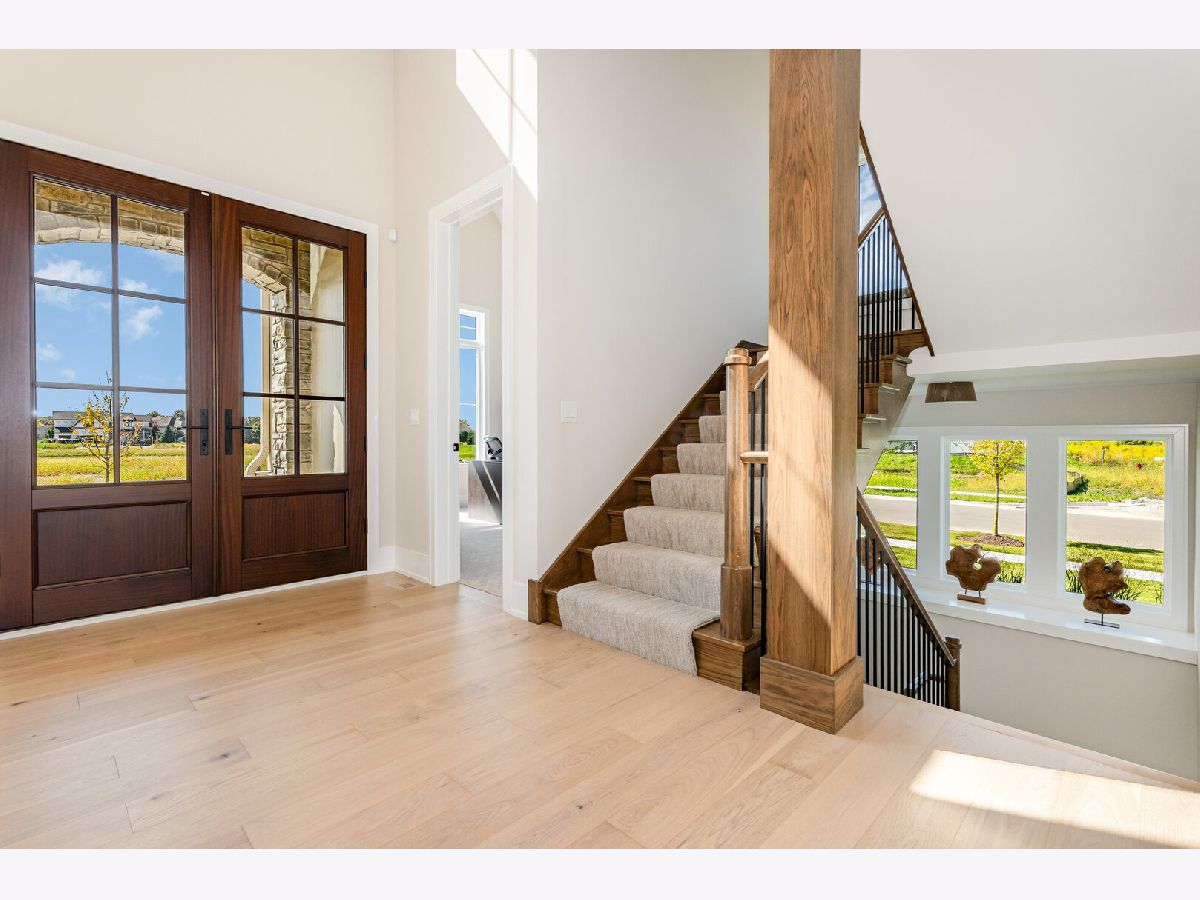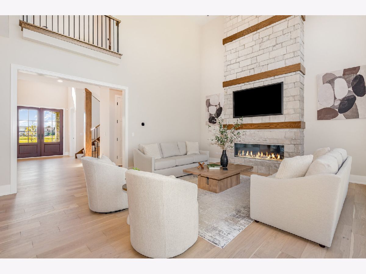 Rare CUSTOM new construction home located in fast selling Wild Horse Knoll in north Plainfield, a subdivision of 37 homes all to be built by King's Court Builders. This is not a "to be built" home with a base price but is loaded with features and extras selected by an interior designer. The modern rustic feel carries from the front elevation and through the entire home. First floor has desirable open plan concept. Two story Foyer and Family Room, custom built staircase on side of home with large windows bringing light to Foyer and basement stairs that is open to basement. Kitchen with Brakur Custom Cabinetry, Miele appliances (including coveted 30 inch column frig & freezer), quartz countertops, hidden walk-in pantry, and Butler Pantry with beverage center. Large Sunroom and Covered Porch on rear of home that adds to entertaining area. At far end of home is a Flex Room/First Floor Guest Suite with private bath and closet. 6" wide engineered hardwood flooring throughout first floor (except Flex Room and Office). Second floor has 4 bedrooms all with en-suite baths, and Laundry Room with natural light. Master Bath has oversized poured mud base shower, volume ceiling with skylight, floating vanity, and stunning tile details. 10' first floor ceilings, 8' tall solid first floor interior doors and 8' tall exterior doors, 10' wall height in basement. Contact LA for look book for all selections. The front elevation features stone, vertical board & batten siding, and an arch on front porch over entry. Plantings, trees, fully sodded yard, and lawn irrigation system are all included. All of this on an over 12,000 square foot lot that faces north, which creates all day sun in the back of the home, and backs to open space. Neighborhood is served by Freedom Elementary, Heritage Grove Middle School, and Plainfield North High School (which is just 3 blocks away). The home is currently being framed, all pricing is locked in and this home will be complete by June 26, 2026! King's Court Builders reputation and two-year warranty always included! Model home in neighborhood is the similar plan and can be viewed by appointment.