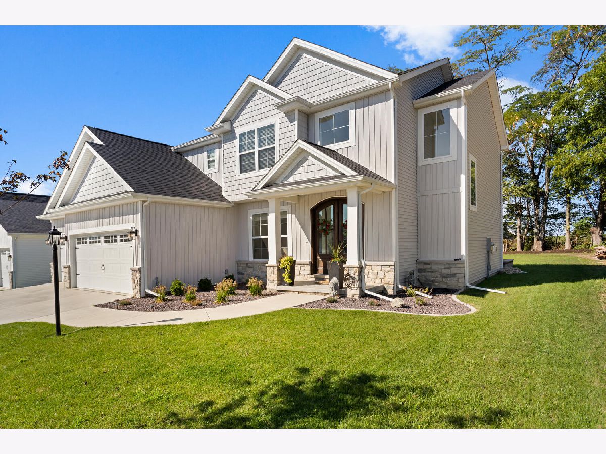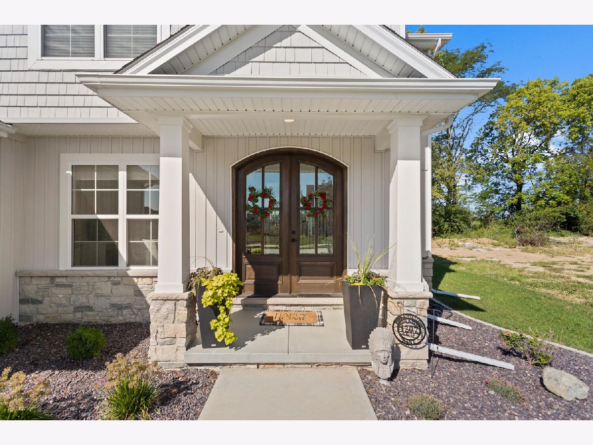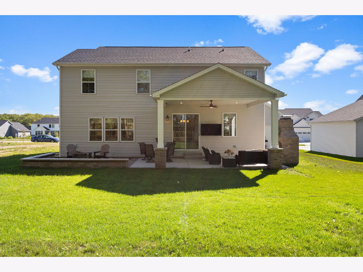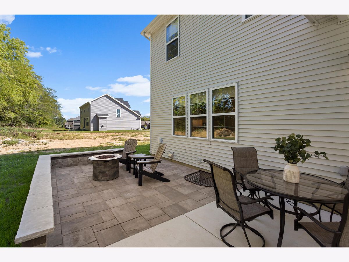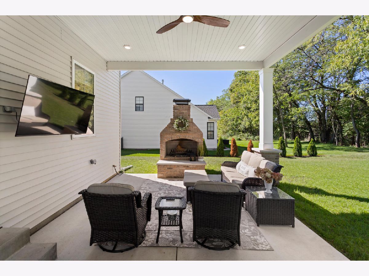 Welcome to this stunning, like-new home built by Stevens Homes in the desirable Thornewood subdivision in Mahomet. From the moment you arrive, the beautiful landscaping, strong curb appeal, and double front doors set the tone for what's inside. Step into a soaring foyer that opens to a formal dining room featuring a dropped tray ceiling, creating an elegant first impression. The main level offers an inviting open concept layout where the great room flows seamlessly into the breakfast area and kitchen. The great room is a showpiece with a beautiful gas fireplace and custom built-in cabinetry with shelving, creating both a warm focal point and functional storage. The kitchen is equally impressive with gorgeous quartz countertops with matching backsplash, a striking hood flanked by wall sconces, and beautiful hardwood floors that run throughout the main living space. It's a layout that works beautifully for both everyday living and entertaining. Outdoor living is just as impressive with a covered patio featuring a stunning stone fireplace, along with an additional fire pit area that creates the perfect setting for relaxing evenings or gathering with friends and family. Upstairs you'll find the spacious primary suite along with three additional bedrooms. The primary retreat offers a spa-like bath and two generous walk-in closets. The finished basement adds even more living space with a large family/recreation room, a fifth bedroom, and another full bathroom. The backyard is beautifully designed and incredibly private, backing up to mature trees for a peaceful setting you'll enjoy year-round.
