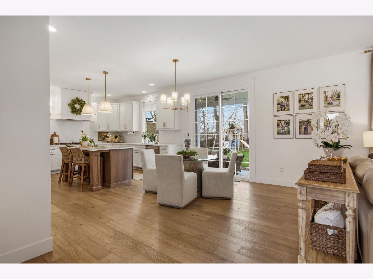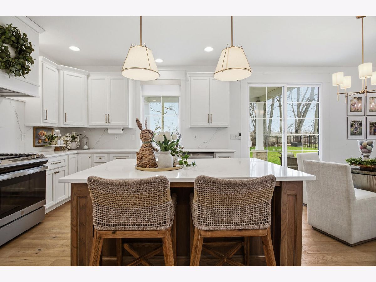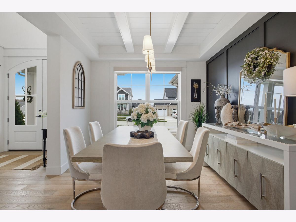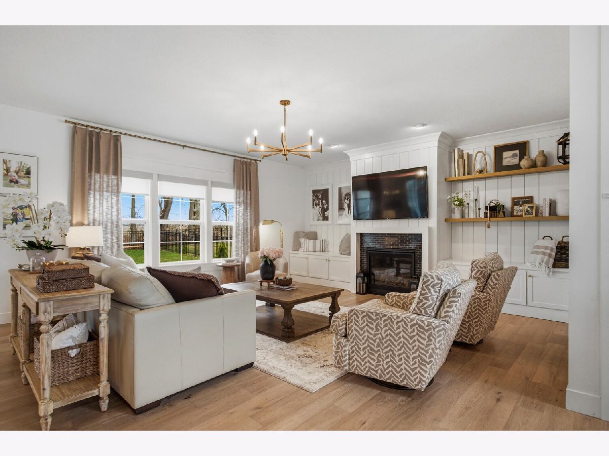 Welcome to this stunning, like-new home built by Stevens Homes in the desirable Thornewood subdivision in Mahomet. From the moment you arrive, the beautiful landscaping, strong curb appeal, and double front doors set the tone for what's inside. Step into a soaring foyer that opens to a formal dining room featuring a dropped tray ceiling, creating an elegant first impression. The main level offers an inviting open concept layout where the great room flows seamlessly into the breakfast area and kitchen. The great room is a showpiece with a beautiful gas fireplace and custom built-in cabinetry with shelving, creating both a warm focal point and functional storage. The kitchen is equally impressive with gorgeous quartz countertops with matching backsplash, a striking hood flanked by wall sconces, and beautiful hardwood floors that run throughout the main living space. It's a layout that works beautifully for both everyday living and entertaining. Outdoor living is just as impressive with a covered patio featuring a stunning stone fireplace, along with an additional fire pit area that creates the perfect setting for relaxing evenings or gathering with friends and family. Upstairs you'll find the spacious primary suite along with three additional bedrooms. The primary retreat offers a spa-like bath and two generous walk-in closets. The finished basement adds even more living space with a large family/recreation room, a fifth bedroom, and another full bathroom. The backyard is beautifully designed and incredibly private, backing up to mature trees for a peaceful setting you'll enjoy year-round.
