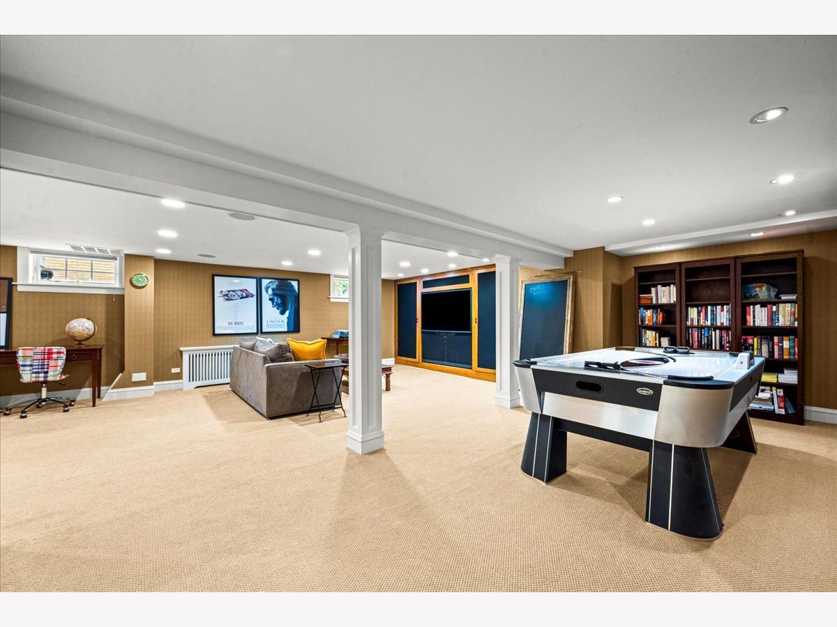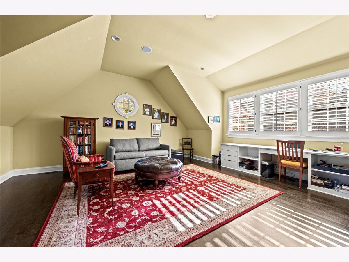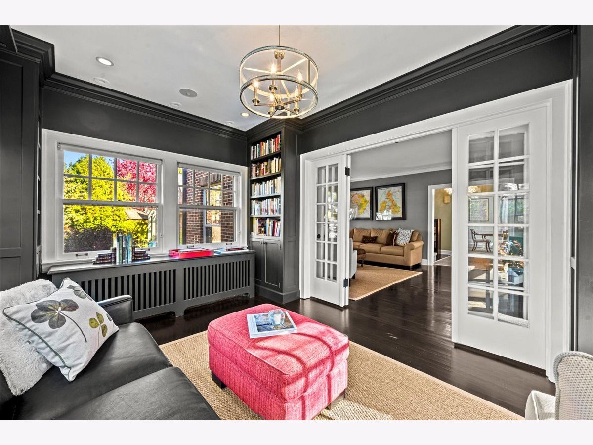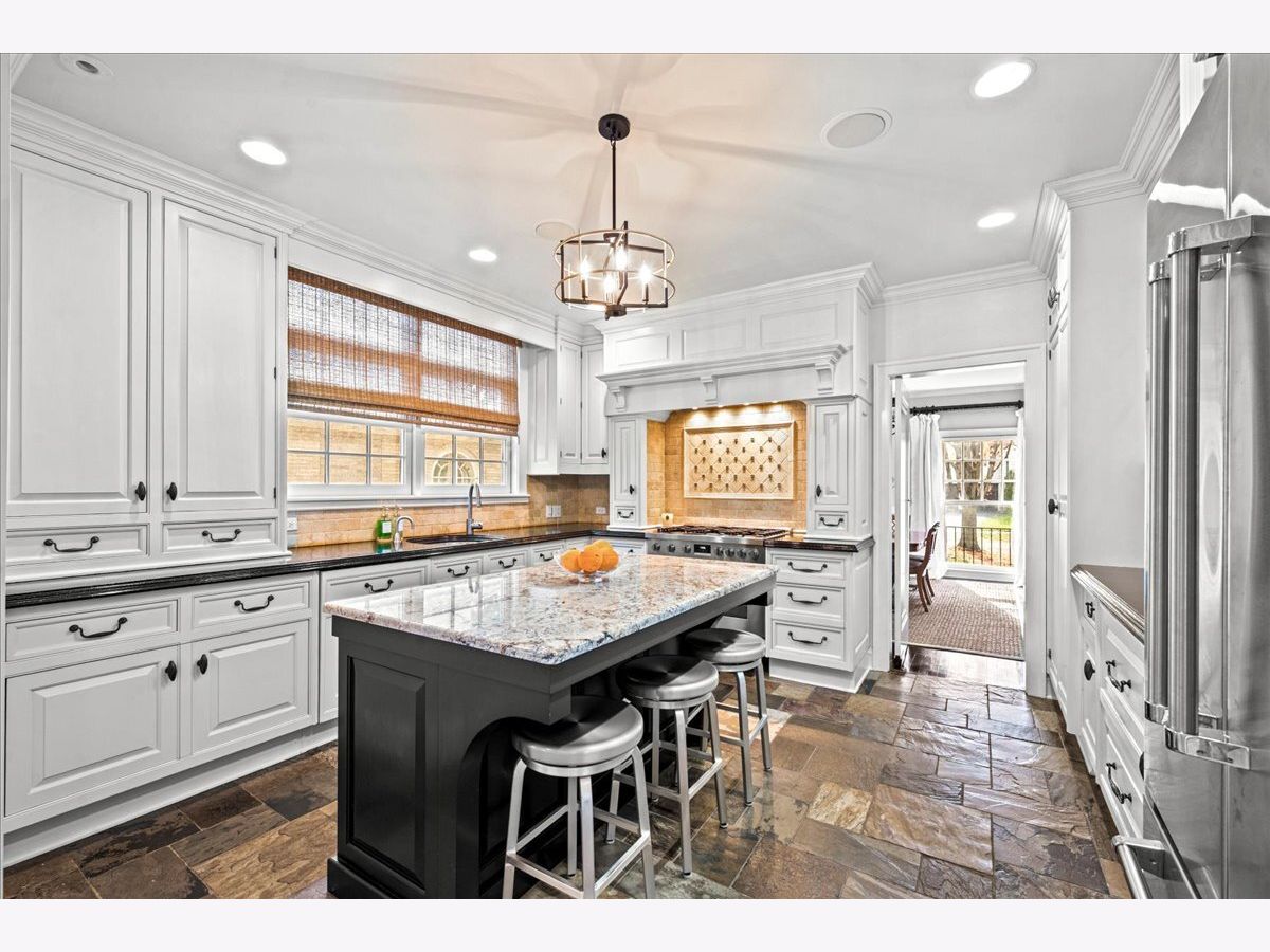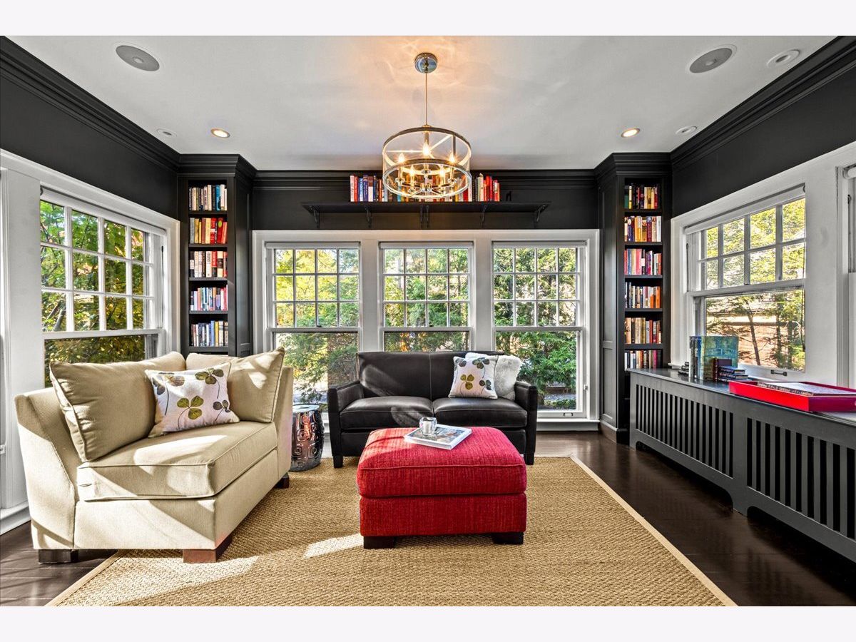 Pristine East Kenilworth residence just steps from vibrant Plaza del Lago and the lake. Showcasing timeless curb appeal and meticulous maintenance throughout, this gracious home truly checks every box. A grand entry with stunning dark ebony hardwood floors welcomes you and opens to the formal living room, where floor-to-ceiling windows flood the space with natural light. A private library with custom built-ins and French doors offers the perfect retreat for work or relaxation. The elegant dining room, bathed in southern light through matching floor-to-ceiling windows, is ideal for both intimate dinners and larger gatherings. The beautifully appointed Christopher Peacock kitchen features custom cabinetry, a center island, and high-end appliances, and flows seamlessly into the family room with banquet seating, built-in bookcases, and French doors leading to the expansive yard-creating an effortless connection between indoor and outdoor living. The second floor includes a luxe primary suite with walk-in closets and a spa-like bath. Bedroom two opens to a private treetop terrace, while bedroom three features a charming built-in bed; both share a newer, crisp white hall bath. A private office completes this level. The third-floor suite offers a large bedroom, extra living space, and a beautifully finished bath with Ann Sacks tile - ideal for guests or flexible living. The lower level includes a spacious recreation room, full bath, deep dug-out exercise room, wine cellar, and abundant storage. Above the charming two-car garage is the nearly impossible-to-find coach house with a full bath-perfect for a home office, au pair, or guest suite. Professionally landscaped grounds and a private patio reflect the same exceptional care found throughout this impeccable home, ideally located within the sought-after Joseph Sears and New Trier school districts.