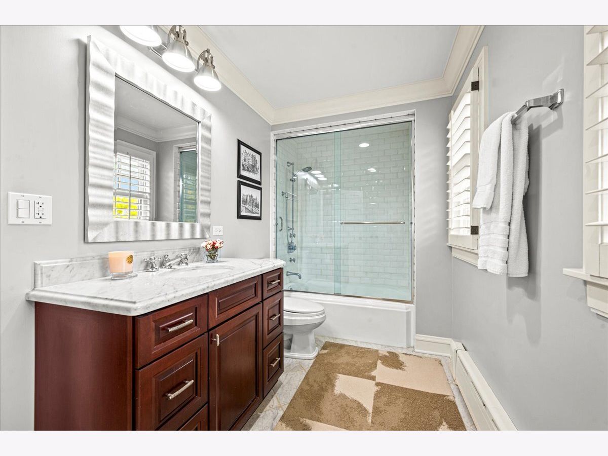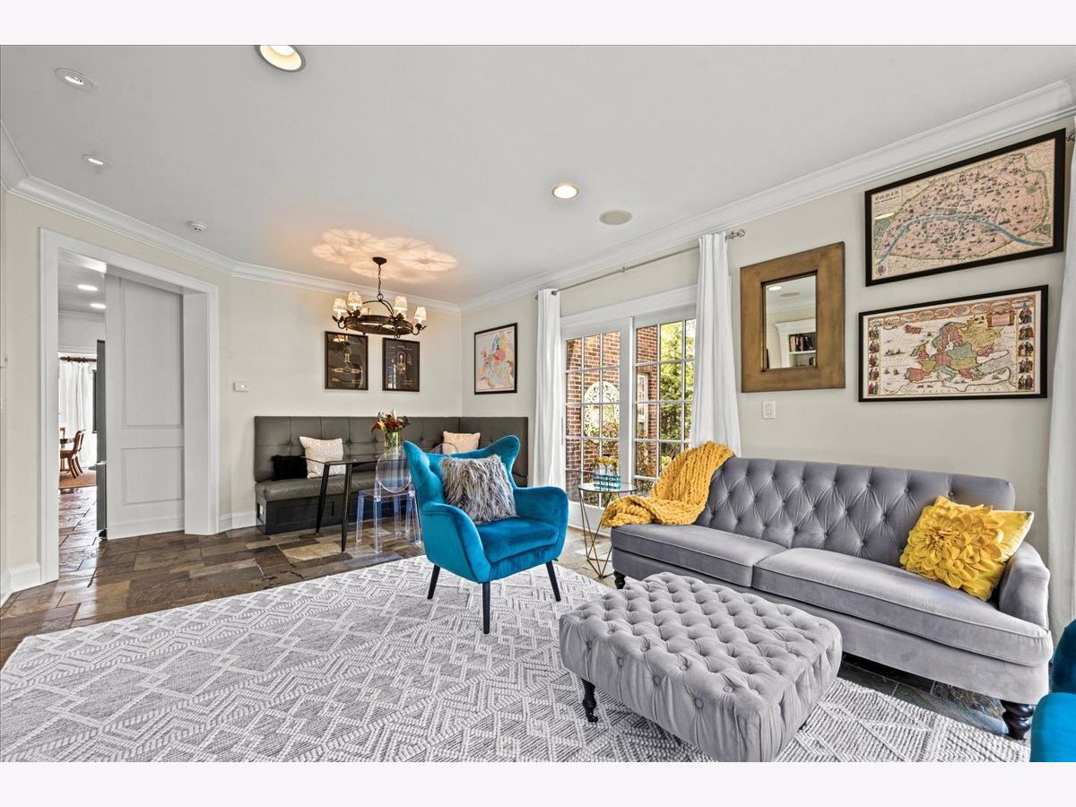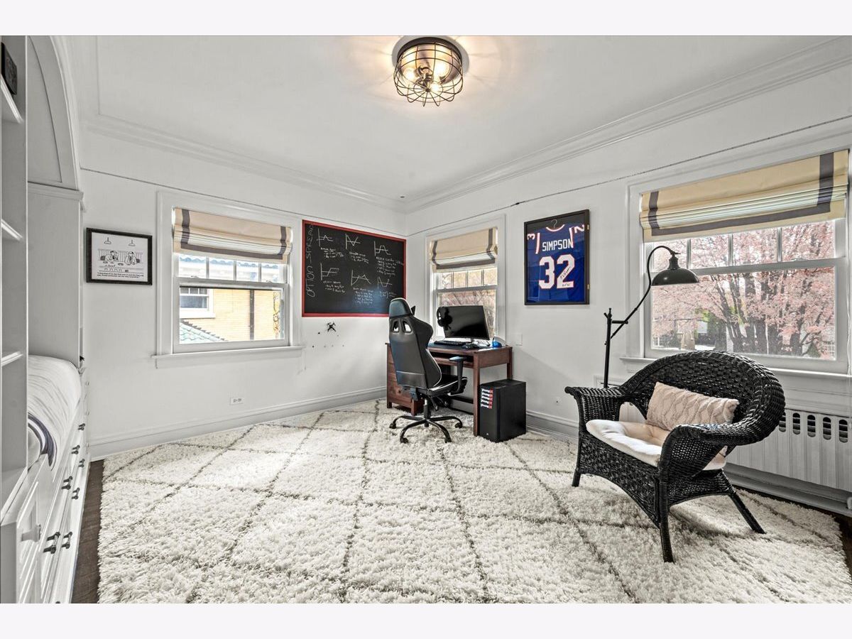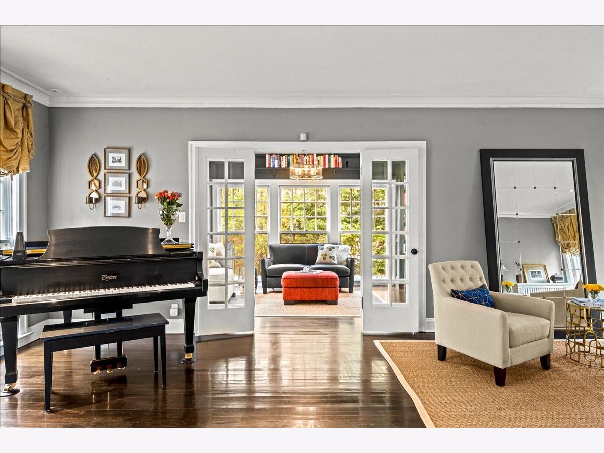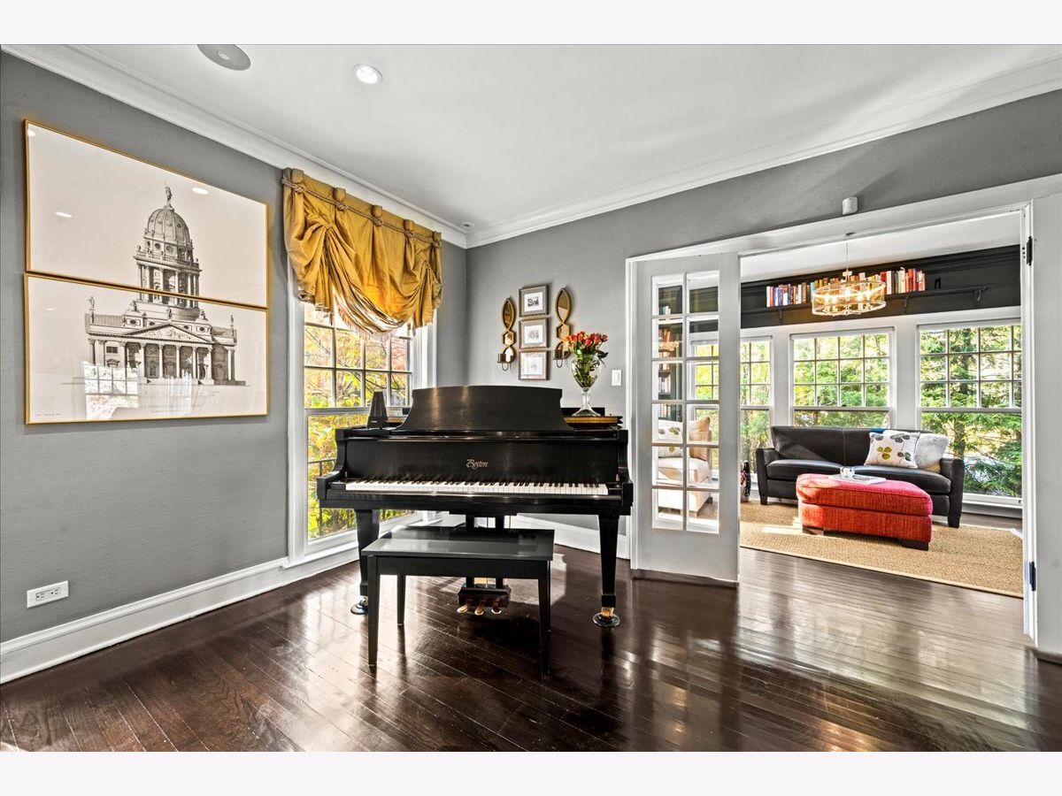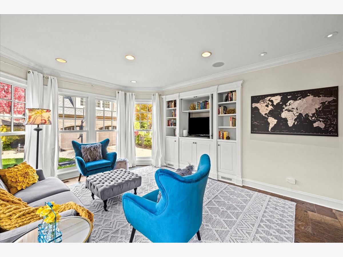 Pristine East Kenilworth residence just steps from vibrant Plaza del Lago and the lake. Showcasing timeless curb appeal and meticulous maintenance throughout, this gracious home truly checks every box. A grand entry with stunning dark ebony hardwood floors welcomes you and opens to the formal living room, where floor-to-ceiling windows flood the space with natural light. A private library with custom built-ins and French doors offers the perfect retreat for work or relaxation. The elegant dining room, bathed in southern light through matching floor-to-ceiling windows, is ideal for both intimate dinners and larger gatherings. The beautifully appointed Christopher Peacock kitchen features custom cabinetry, a center island, and high-end appliances, and flows seamlessly into the family room with banquet seating, built-in bookcases, and French doors leading to the expansive yard-creating an effortless connection between indoor and outdoor living. The second floor includes a luxe primary suite with walk-in closets and a spa-like bath. Bedroom two opens to a private treetop terrace, while bedroom three features a charming built-in bed; both share a newer, crisp white hall bath. A private office completes this level. The third-floor suite offers a large bedroom, extra living space, and a beautifully finished bath with Ann Sacks tile - ideal for guests or flexible living. The lower level includes a spacious recreation room, full bath, deep dug-out exercise room, wine cellar, and abundant storage. Above the charming two-car garage is the nearly impossible-to-find coach house with a full bath-perfect for a home office, au pair, or guest suite. Professionally landscaped grounds and a private patio reflect the same exceptional care found throughout this impeccable home, ideally located within the sought-after Joseph Sears and New Trier school districts.