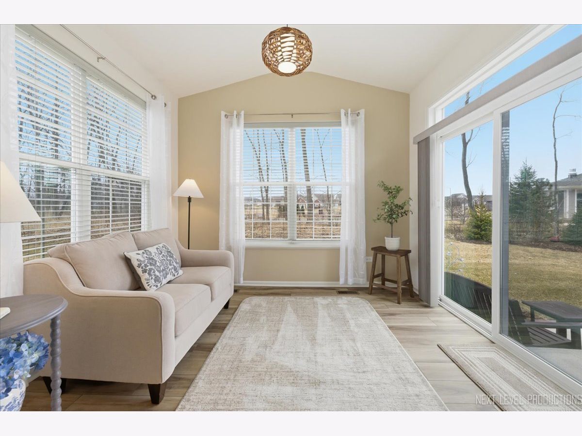 Are you looking to DOWNSIZE and enjoy maintenance free living? This OPEN CONCEPT RANCH with 3 Bedrooms, 2 Full bathrooms and a FULL BASEMENT is move in ready! Large, Updated kitchen with 9 ft ceilings, breakfast bar, quartz countertops, subway tile backsplash, 42 inch cabinetry and large eating area that opens to GORGEOUS SUNROOM. The primary suite is nestled on the back side of the home with a beautiful bath and quartz tops and a generous walk in closet. Two additional bedrooms are located at the front of the home and are great guest bedrooms or office space. Additional upgrades include the RING doorbell, fresh neutral paint, updated light fixtures, custom blinds/window treatments, garage drywalled/painted, extended patio and front storm door. Gorgeous curb appeal with brick front exterior and impressive landscaping around the entire perimeter. This home backs to common grounds/trees and is very private in the summer. TONS of STORAGE in the add'l 1464 Sq. Ft. unfinished basement. SOLD OUT Andare 55+ neighborhood in Woodlore Estates, and offers a clubhouse, fitness center, meeting room, outdoor patio/ fire pit, walking paths, bocce & pickle ball courts. GREAT LOCATION just off Rte. 31 and 176, close to shopping, healthcare/hospital and fine dining. Enjoy Metra train, Crystal Lake Beach, Three Oaks Resort, Crystal Lake Park Dist and so much more!