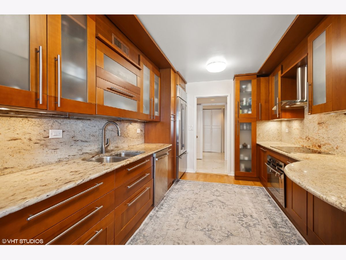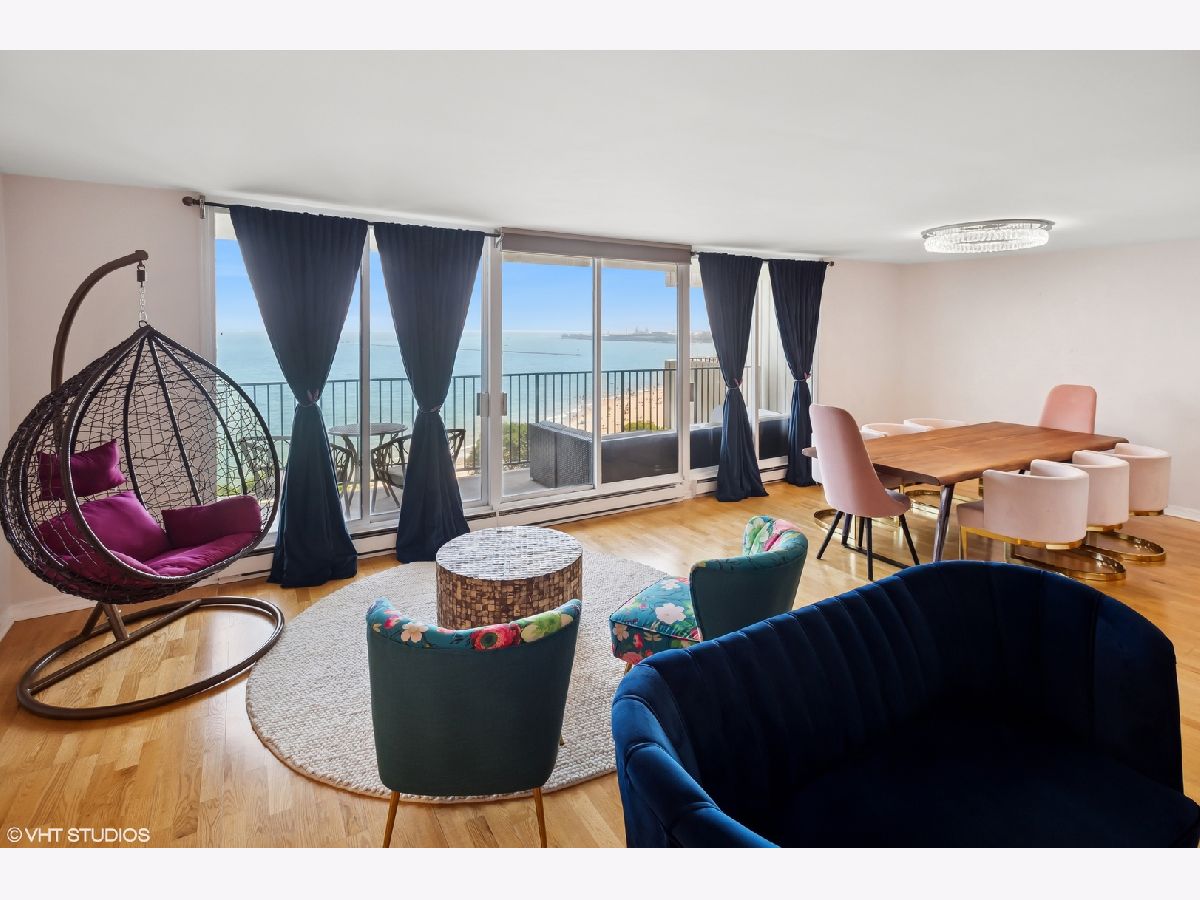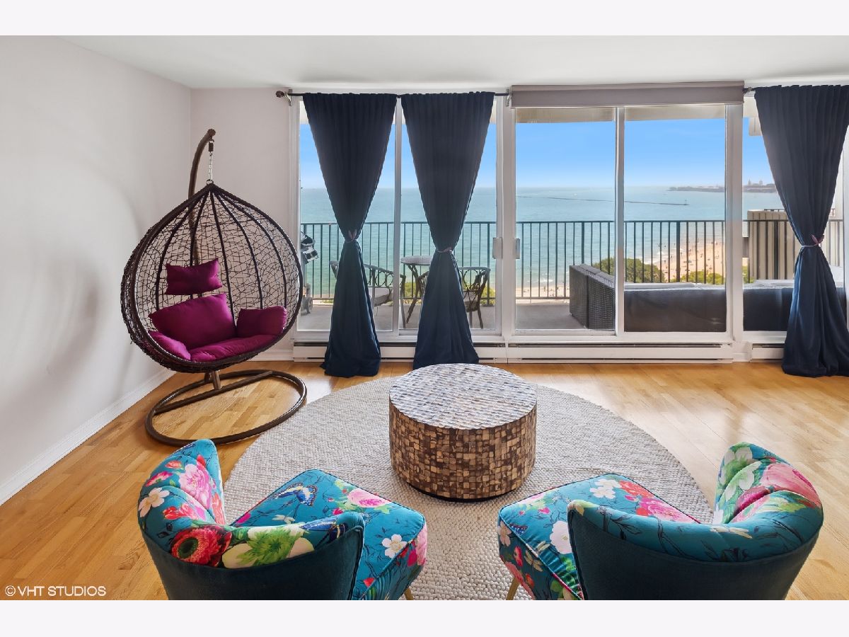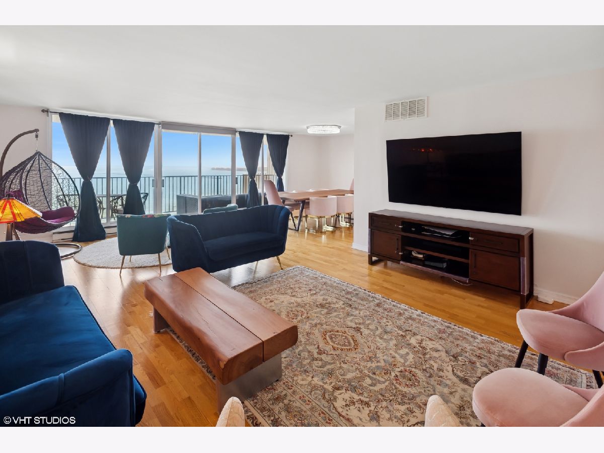 The largest 2 bedroom, 2 bathroom floor plan in one of Lake Shore Drive's most sought after full amenity buildings in the Gold Coast. Enjoy panoramic lake and skyline views from a 27-foot lake facing balcony, with unobstructed vistas of the lake, Air and Water Show, Navy Pier fireworks, Oak Street Beach, and the city skyline. Step through elegant double doors into a gracious Carrara marble foyer, leading into a spacious living room and formal dining room, offering panoramic views perfect for enjoying dining with a backdrop of the beach and lake. The beautifully renovated kitchen features imported Italian natural wood cabinetry with frosted glass insets and intelligent storage solutions, including pull-outs and fold-out corners. Sleek granite countertops and backsplash, under-cabinet lighting, and a built-in breakfast bar elevate the space. Appliances include a top-of-the-line stainless steel package, Sub-Zero refrigerator (2021), Miele cooktop, and a stylish glass-and-metal exhaust fan. A newer washer/dryer (2021) has been relocated to the hallway near the bedrooms for added convenience. The expansive en-suite primary bedroom includes two large closets and a walk-in closet. The spa-like primary bath is adorned with pink and white Italian marble, a wall-to-wall custom marble vanity, designer sink and faucet, and a Jacuzzi tub with hand shower and gold-plated hardware. The second bath showcases an imported Italian wood vanity with a seashell-shaped sink, Italian fixtures, and marble tile work with multiple shower heads and body sprays. Both bedrooms open to west-facing balconies with stunning city skyline view. Enjoy the best of Gold Coast living in a full-service, pet-friendly luxury building featuring 24-hour door staff, on-site management and engineer, a rooftop indoor pool with panoramic lake views, two spacious sun decks, a fully updated party room with indoor/outdoor seating and catering kitchen, fitness center, heated valet garage with guest parking, receiving room, and assigned storage. Smoking is permitted on balconies only. The building is financially strong with $3.5M in reserves and no special assessments. Schedule your private showing today.