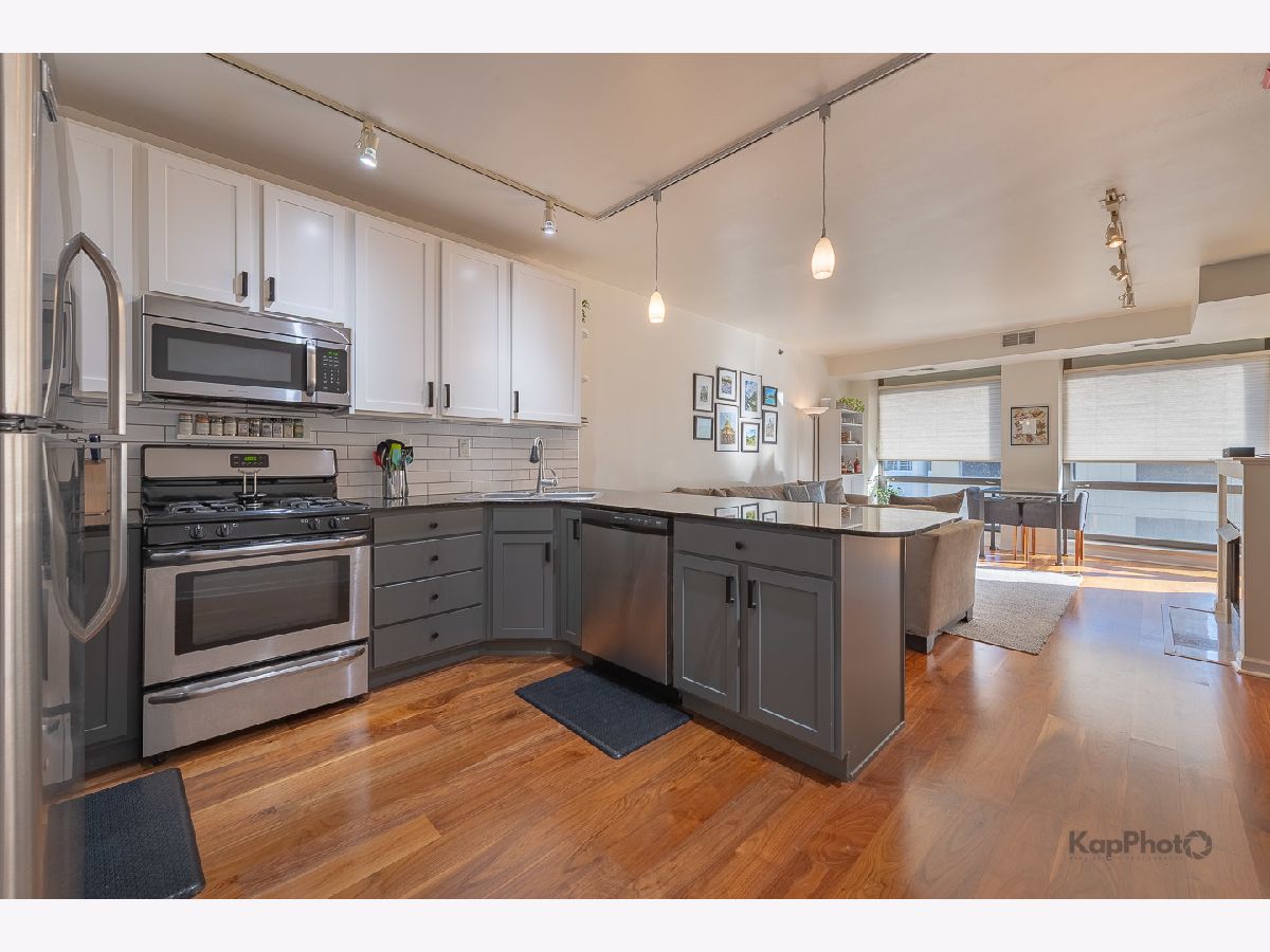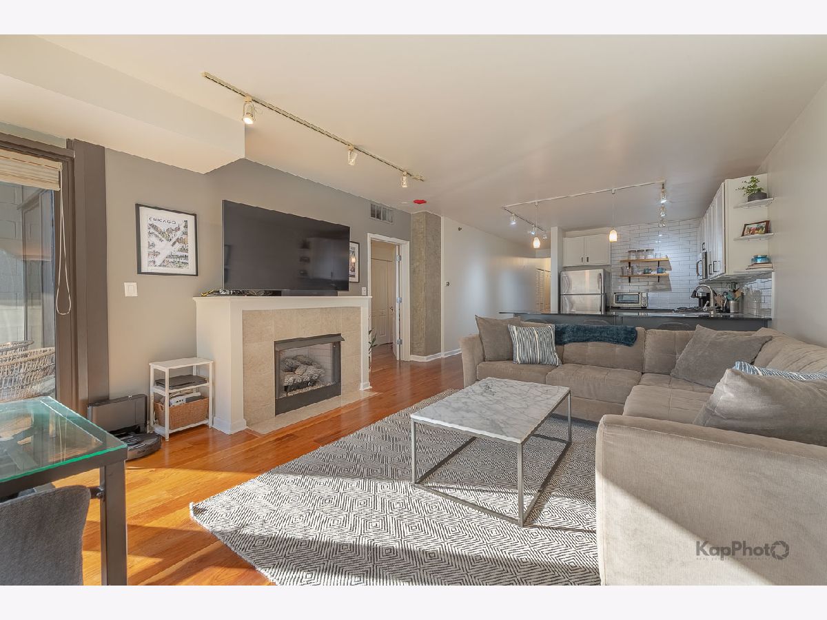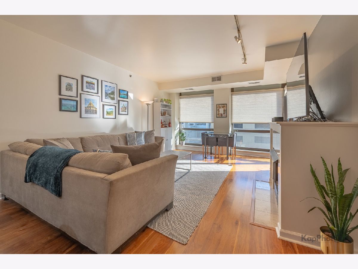 Great Old Town condo featuring a cook's kitchen with refreshed cabinetry, new flooring throughout, track lighting, fireplace, private balcony, and in-unit laundry. The spacious primary suite offers an en-suite bath, while a separate den provides the perfect work-from-home or flex space. Floor-to-ceiling windows deliver panoramic east-facing views. Boutique building amenities include an exercise room, tennis court, sundeck, party room, and 24-hour door staff. Absolutely fabulous location near top restaurants, shopping, and CTA/El access. Parking sold separately for $15,000.