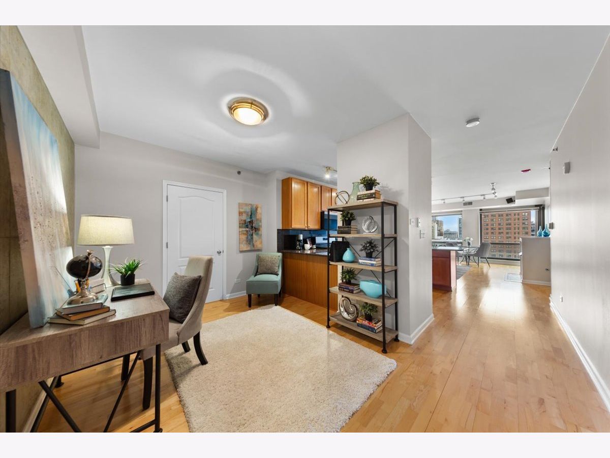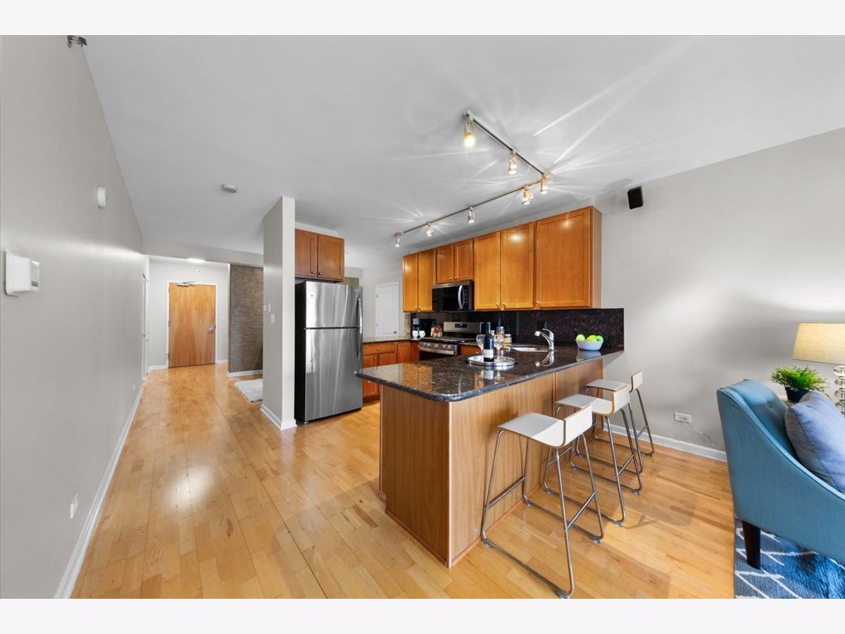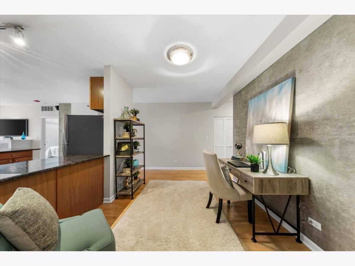 Stunning 1 bed + den, 1.5 bathroom condo in the heart of Old Town! Hardwood floors throughout with new carpet in the enormous bedroom. Brand new stainless steel kitchen appliances freshly installed in the large kitchen that opens up to a spacious living/dining area complete with it's own private outdoor balcony. The bedroom is huge with plenty of room for a king size bed & multiple dressers. Two separate closets are located in the primary bedroom along with a beautiful ensuite bathroom. Large den space next to the half bath perfect for a home office or even a Murphy bed. In unit washer dryer, additional storage locker, and a garage parking spot for an additional $25k round out this amazing condo in an A+ location. Full amenity building 24 hr door staff, gym, tennis court, basketball court, outdoor tanning deck. Right next to Aldi, amazing restaurants, shopping, coffee shops, and just a short walk to the lake!