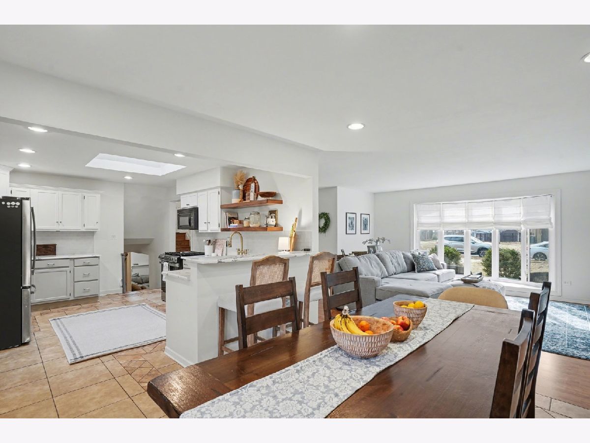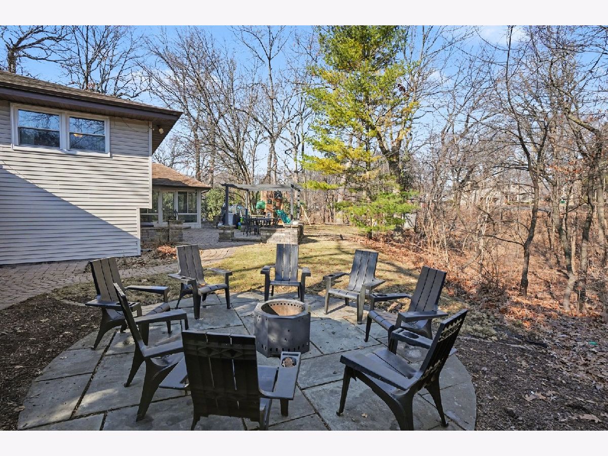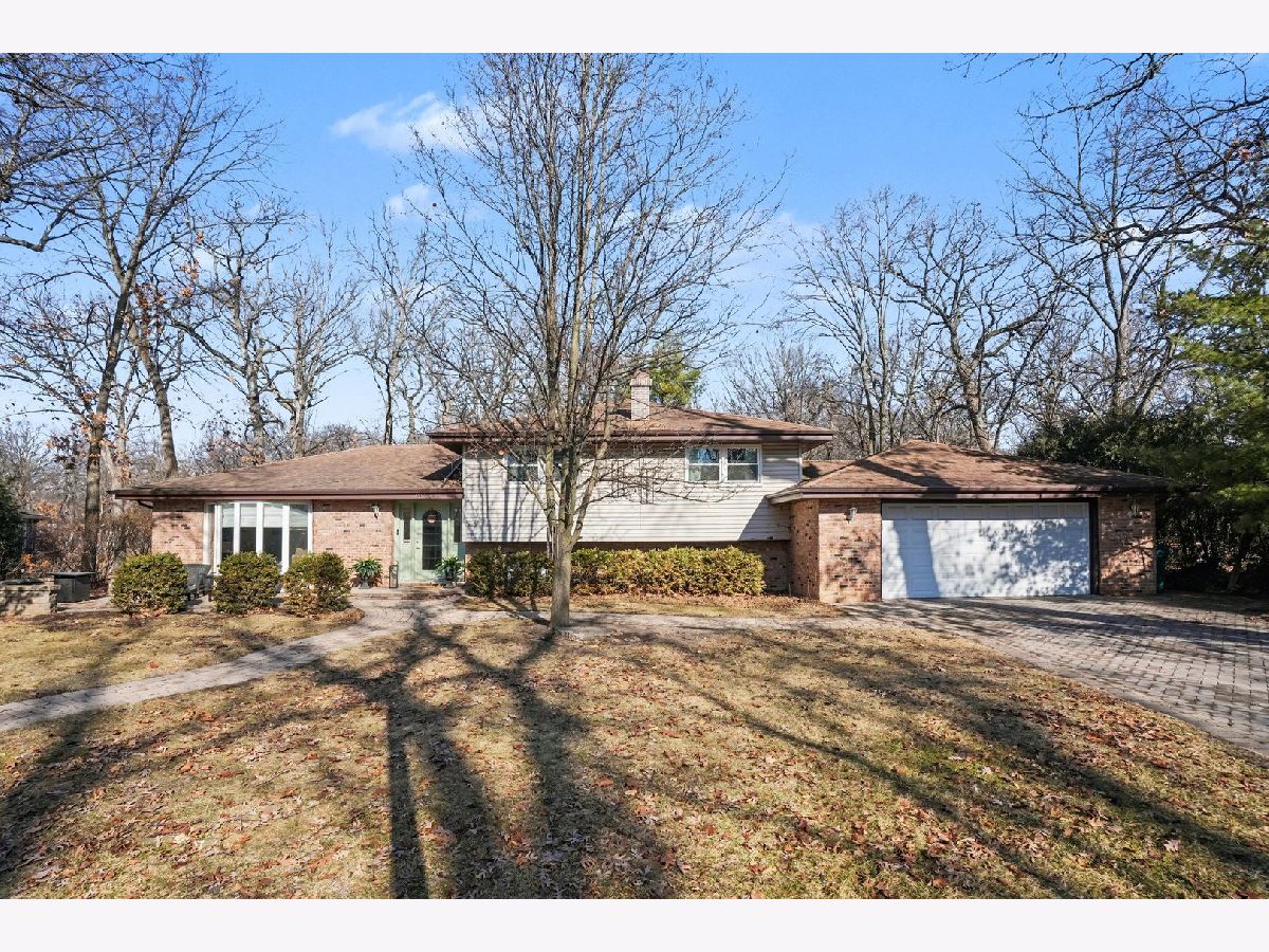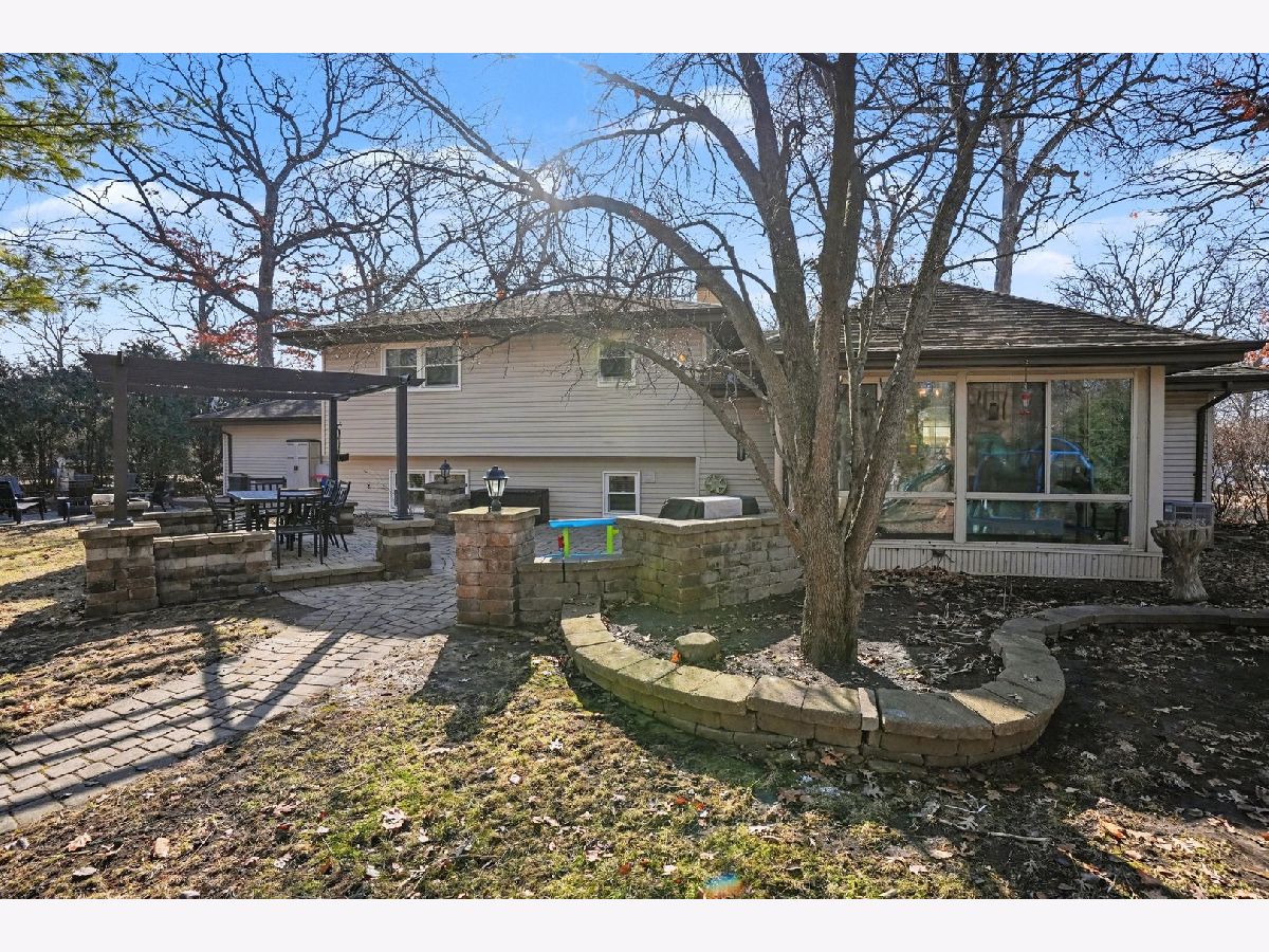 This unique split-level home, nestled within a half-acre wooded area in the heart of Joliet, offers both charm and modern updates. A brick paver driveway and front patio area enhance the curb appeal. The large, wooded backyard, featuring a ravine, provides a private oasis. It includes two generous brick paver patio areas in the back, one with a gorgeous pergola. The home boasts two large living areas, one of which includes a cozy gas fireplace. A heated three-season room is accessible off the kitchen and dining area. The recently remodeled kitchen is a highlight, featuring quartz countertops, natural wood open shelving, a skylight, and new dishwasher and stove/oven appliances. The split-level design includes three bedrooms and one bathroom upstairs, with an additional bedroom and a second bathroom located downstairs. The basement level provides a large laundry area and ample room for storage. New windows have been installed throughout the entire home for improved energy efficiency and comfort.