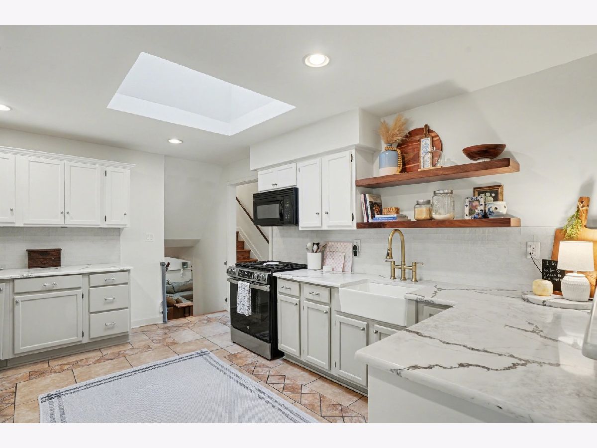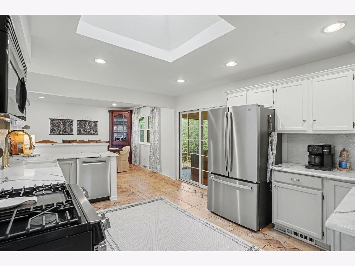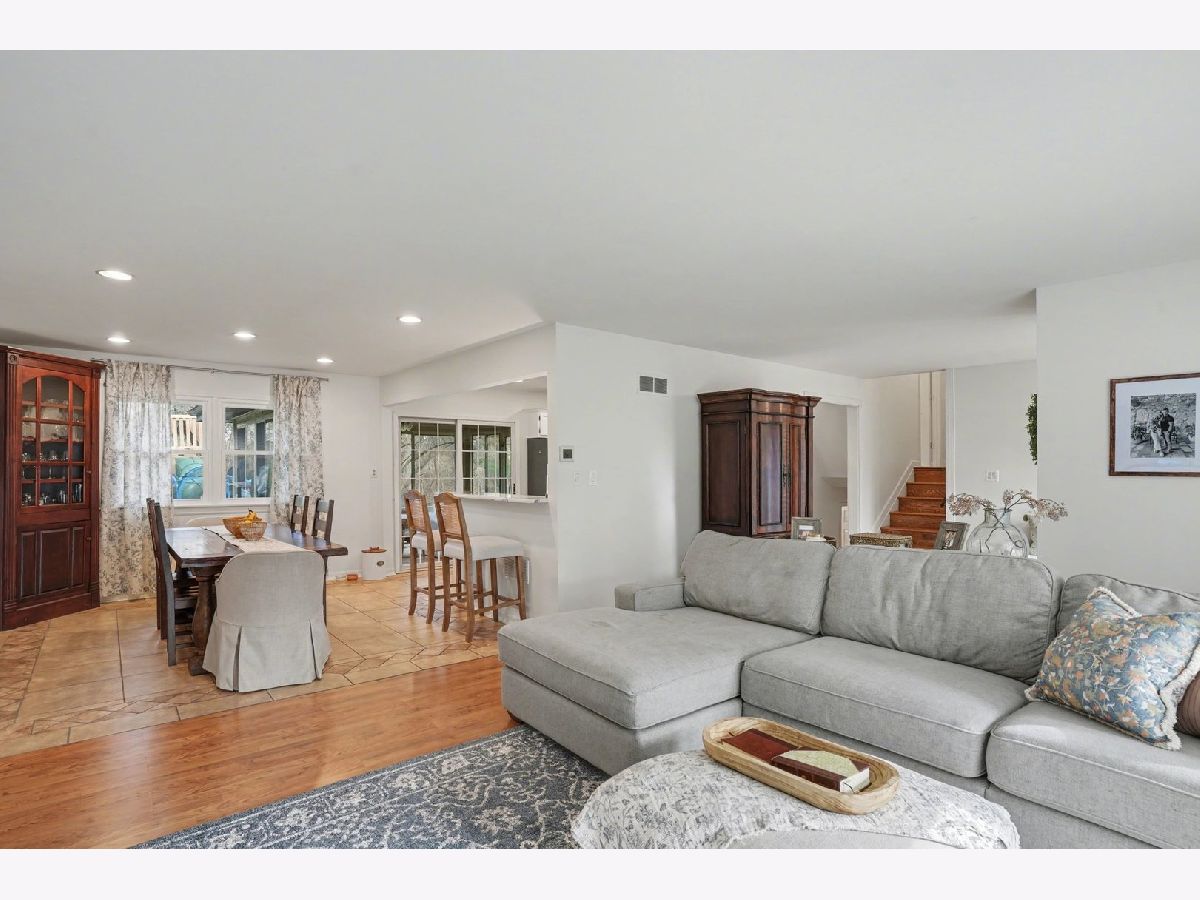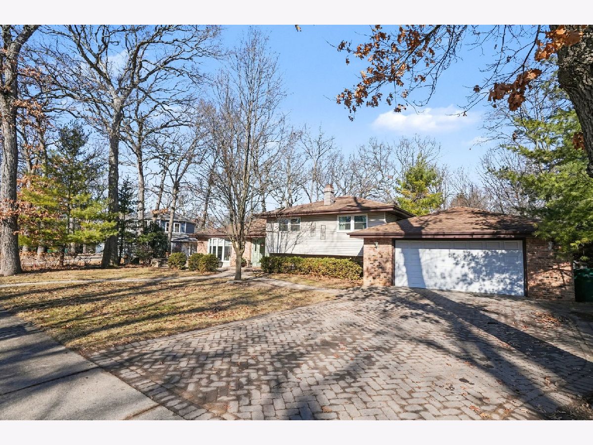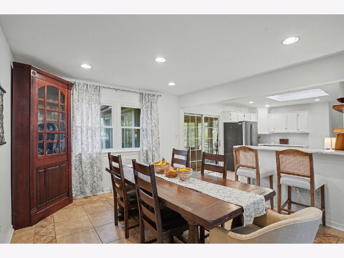 This unique split-level home, nestled within a half-acre wooded area in the heart of Joliet, offers both charm and modern updates. A brick paver driveway and front patio area enhance the curb appeal. The large, wooded backyard, featuring a ravine, provides a private oasis. It includes two generous brick paver patio areas in the back, one with a gorgeous pergola. The home boasts two large living areas, one of which includes a cozy gas fireplace. A heated three-season room is accessible off the kitchen and dining area. The recently remodeled kitchen is a highlight, featuring quartz countertops, natural wood open shelving, a skylight, and new dishwasher and stove/oven appliances. The split-level design includes three bedrooms and one bathroom upstairs, with an additional bedroom and a second bathroom located downstairs. The basement level provides a large laundry area and ample room for storage. New windows have been installed throughout the entire home for improved energy efficiency and comfort.