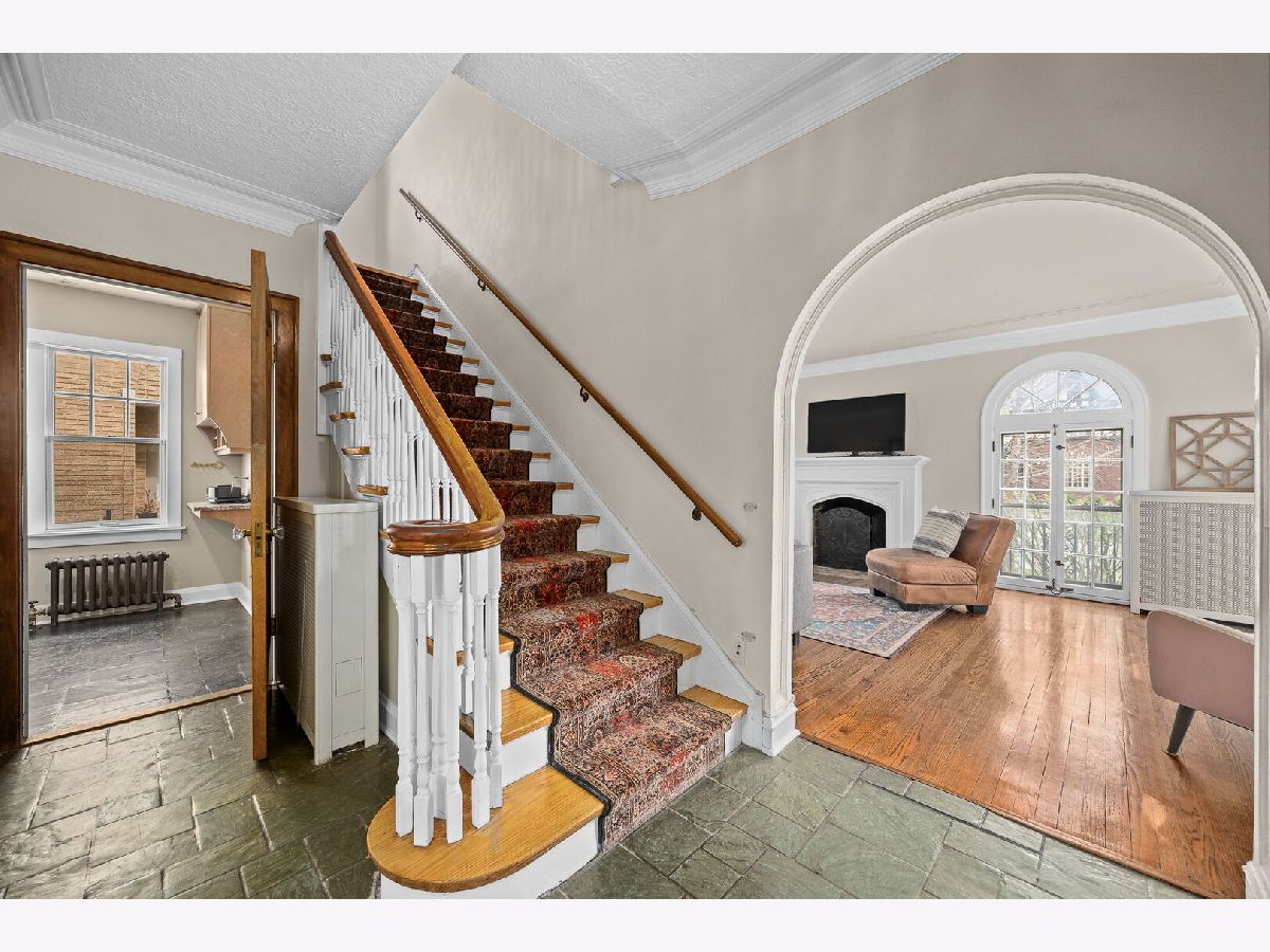 Step into this beautifully crafted brick colonial, featuring elegant palladian windows, beautiful moldings, arched doorways and unique features adding character and charm to this stunning home. The gracious living room features a wood-burning fireplace and is flooded with natural light. A spacious dining room leads to your kitchen with ample cabinet space and stainless appliances. The mudroom, providing access to the backyard, is unheated but holds potential for transformation. Upstairs the primary bedroom is large enough for a sitting room, or create a primary bath and still have a good bedroom size. The second bedroom has a tandem room and the third bedroom is nicely sized. The basement offers a rec room and workout space with storage. There is a half bath, although not in use, the plumbing is there to create another full bathroom if desired. Located on quiet tree lined block with close proximity to North Ave.