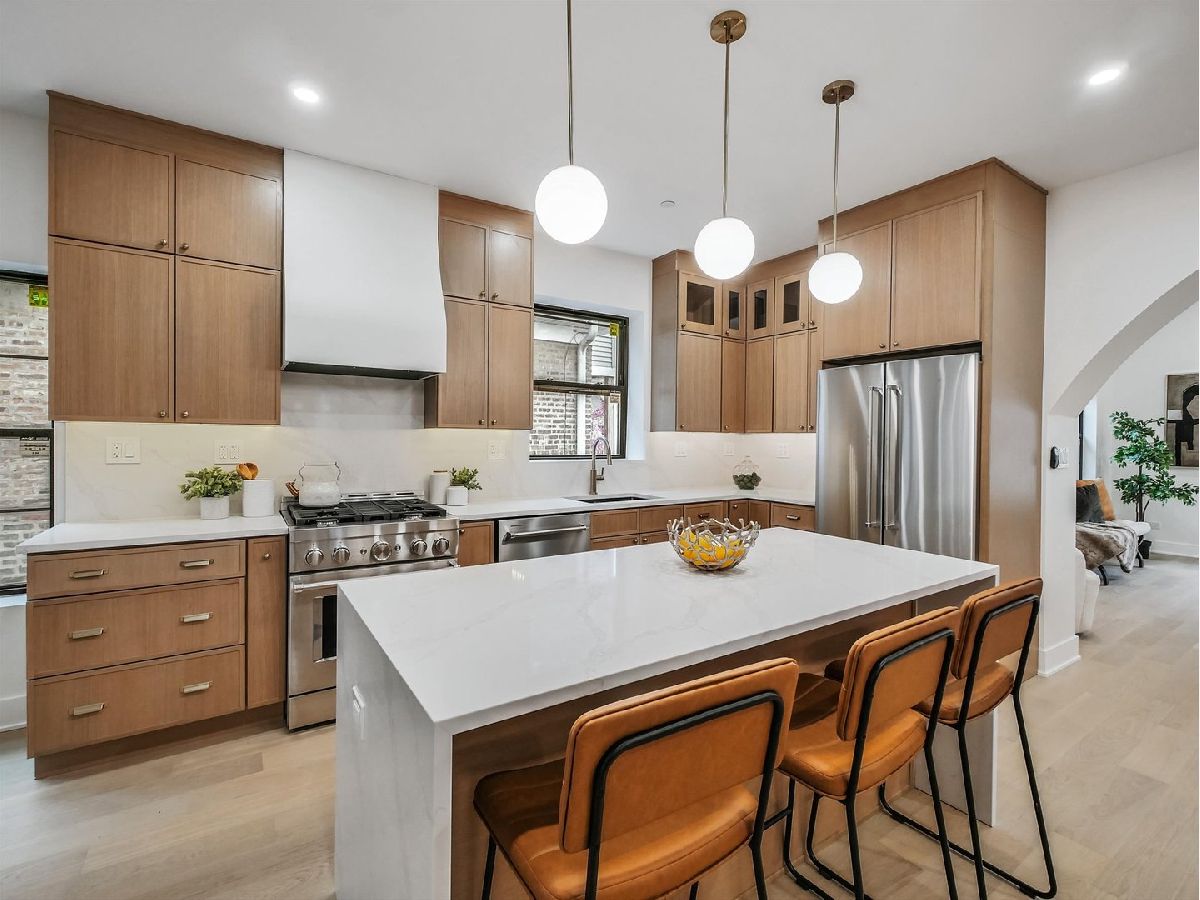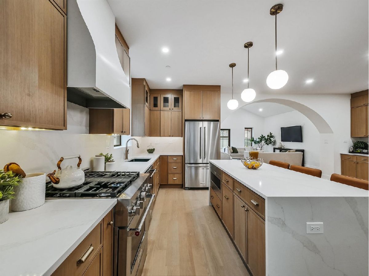 Come fall in love with this fully reimagined Chicago brick bungalow, expanded, elevated, and designed with warmth, flow, and intention from the ground up. Every inch of this home has been thoughtfully rebuilt in a style that blends modern comfort with timeless character. An airy, open concept layout welcomes you with natural light and effortless transitions between the living, dining, kitchen spaces and extended family room. At the heart of the home is the custom kitchen, pairing beautiful design with thoughtful functionality, generous workspace, and high-end finishes. Just off the kitchen is a charming breakfast nook paired with a dedicated coffee nook. Nearby sits a moody main level room currently used as an office, offering the perfect tucked away space for focus or creativity. A large custom archway opens into the family room creating a striking seamless flow between the home's most loved spaces. The family room is oversized, filled with natural light, and features a cathedral ceiling, instantly becoming the place everyone gravitates toward, a space created for connection, comfort, and unforgettable gatherings. Upstairs, retreat to a serene primary suite with its own cathedral ceiling, a spa inspired bath, and walk in closet. Two additional bedrooms offer great natural light and comfortable proportions ideal for today's living. The finished basement extends the home's living space with a large recreation room, fifth bedroom, full bath, laundry, and ample storage. A newly landscaped yard provides a true outdoor living space perfect for relaxing or hosting and is complemented by a brand new garage featuring a rare double-door setup that opens fully to the backyard creating effortless indoor and outdoor flow. For buyers who have been searching for "the one," this is the home that finally feels different. The level of detail, quality, and design is rarely found and even harder to forget once you have experienced it.