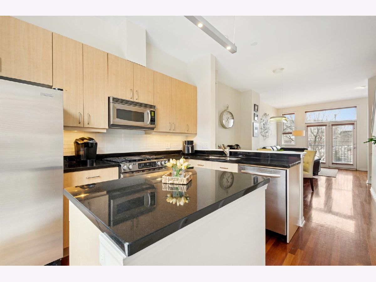 Nestled in the heart of Old Town steps from Wells St shops and restaurants, this rare three-bedroom + office townhome offers a generously-sized, light-filled interior. The meticulously-maintained home features east & west exposures, four levels of living space above ground with an attached one and a half car heated garage. Enjoy the heart of the home in an open concept kitchen/living/dining room featuring 10' ceilings, hardwood floors, a gas fireplace, powder room, and an 8 x 7 balcony for grilling or enjoying your morning coffee. The functional kitchen includes an island, 42" cabinets, black granite countertops, and stainless-steel appliances. Two en-suite bedrooms on the third floor featuring primary suite and second bedroom. Spacious primary bedroom ensuite bath with a black granite vanity and oversized shower with double shower heads and beautiful stone flooring. The fourth floor is a bright, open space that could be used as a 3rd bedroom, family/game room, home office, playroom or gym with access to the east-facing 12x7 roof-top deck overlooking the courtyard. Fee simple homeowner's association means a low monthly HOA fee of $242 with professional management. Immaculately maintained home with important improvements: GE Slide-In Gas range (2024), 1st floor furnace (2022), 4th floor furnace (2021), one AC (2021), complete replacement of roof, rooftop deck , scuppers (2021), water heater (2020), washer/dryer (2018), and more! Parking available in development for guests and ample street parking on Sedgwick. Enjoy the neighborhood feel of tree-lined Sedgwick St while living near everything Old Town offers. The location achieves nearly perfect scores for walkers and bikers with countless nearby restaurants, shops, and other attractions.