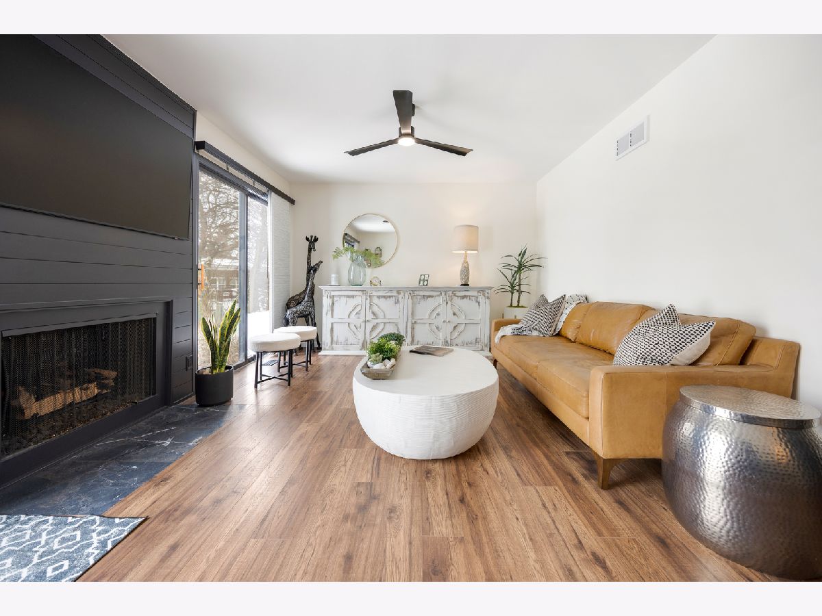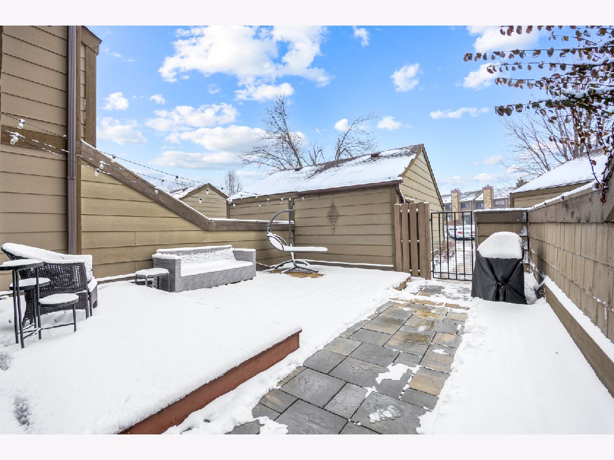 Move-in ready 3 bed, 2 and 1/2 bath home with extensive updates throughout (and you won't find another Glengarry Townhome with an ensuite Primary bath, by the way)! Freshly painted (2025) with new ceiling fans (2025). Updated kitchen features white sparkle quartz countertops, and a beautiful tile backsplash. Dining area offers custom wall treatment and two sliding doors to a private, fenced courtyard with low-maintenance stonework. Bright living room with upgraded gas fireplace and new feature wall behind it, and additional sliding doors. Unique open-air wooden staircase adds architectural character. Updated basement with new flooring-ideal for rec room, office, or flex space. Upstairs includes 3 bedrooms with triple-pane Gilkey windows (2021) and blackout shades (2021). Primary suite features extended shower and new vanity, and an additional full hall bath with tub. Major updates include new electrical panel (2025), attic insulation (2025), furnace w/ air cleaner (2021) and whole-house humidifier (2023), and basement egress windows (2021). Detached 1-car garage with new opener and spring (2022). Truly turnkey! And the location can't be beat - just a short walk to Harrison Street Elementary, the Fox River, and downtown Geneva!