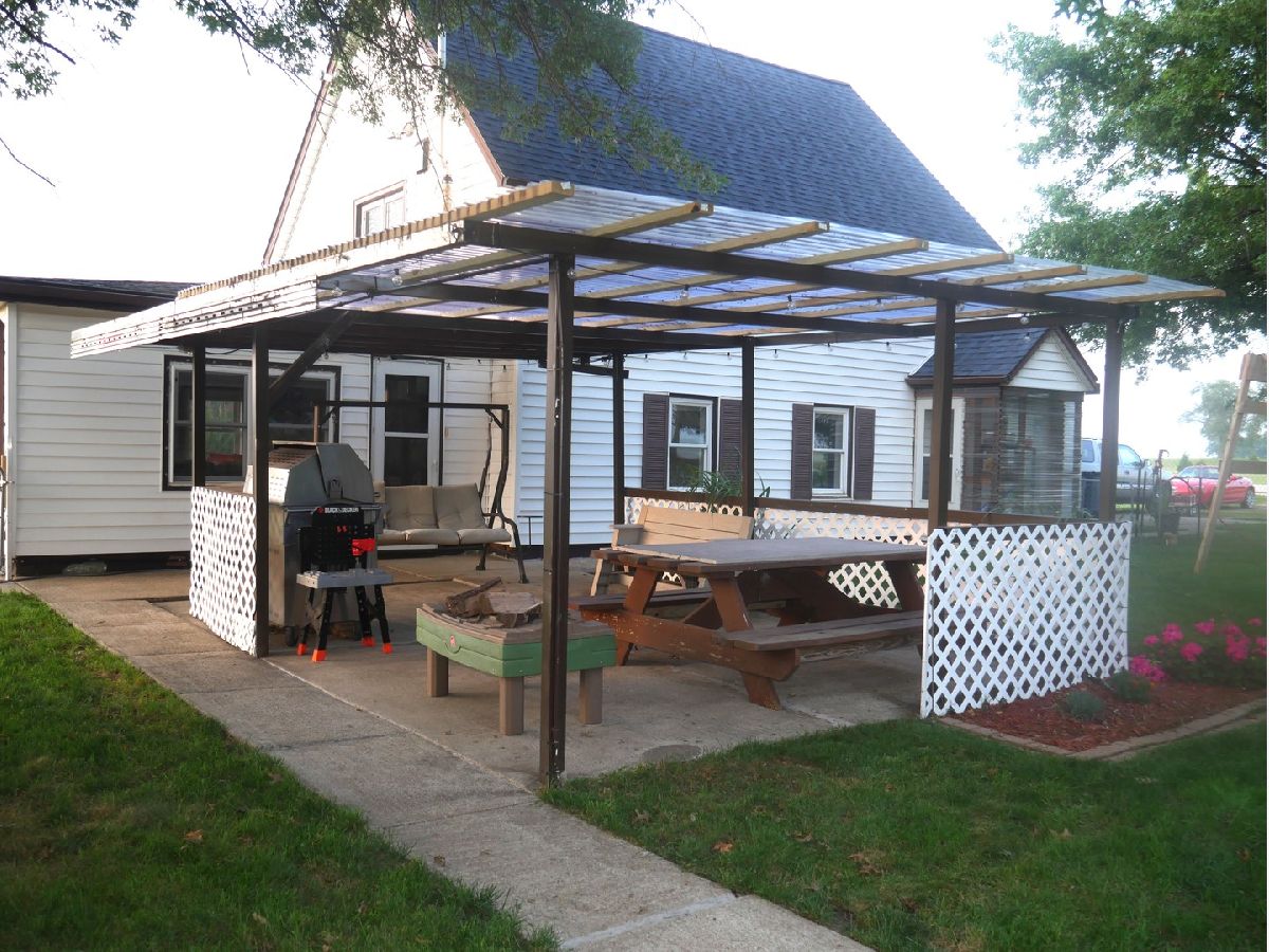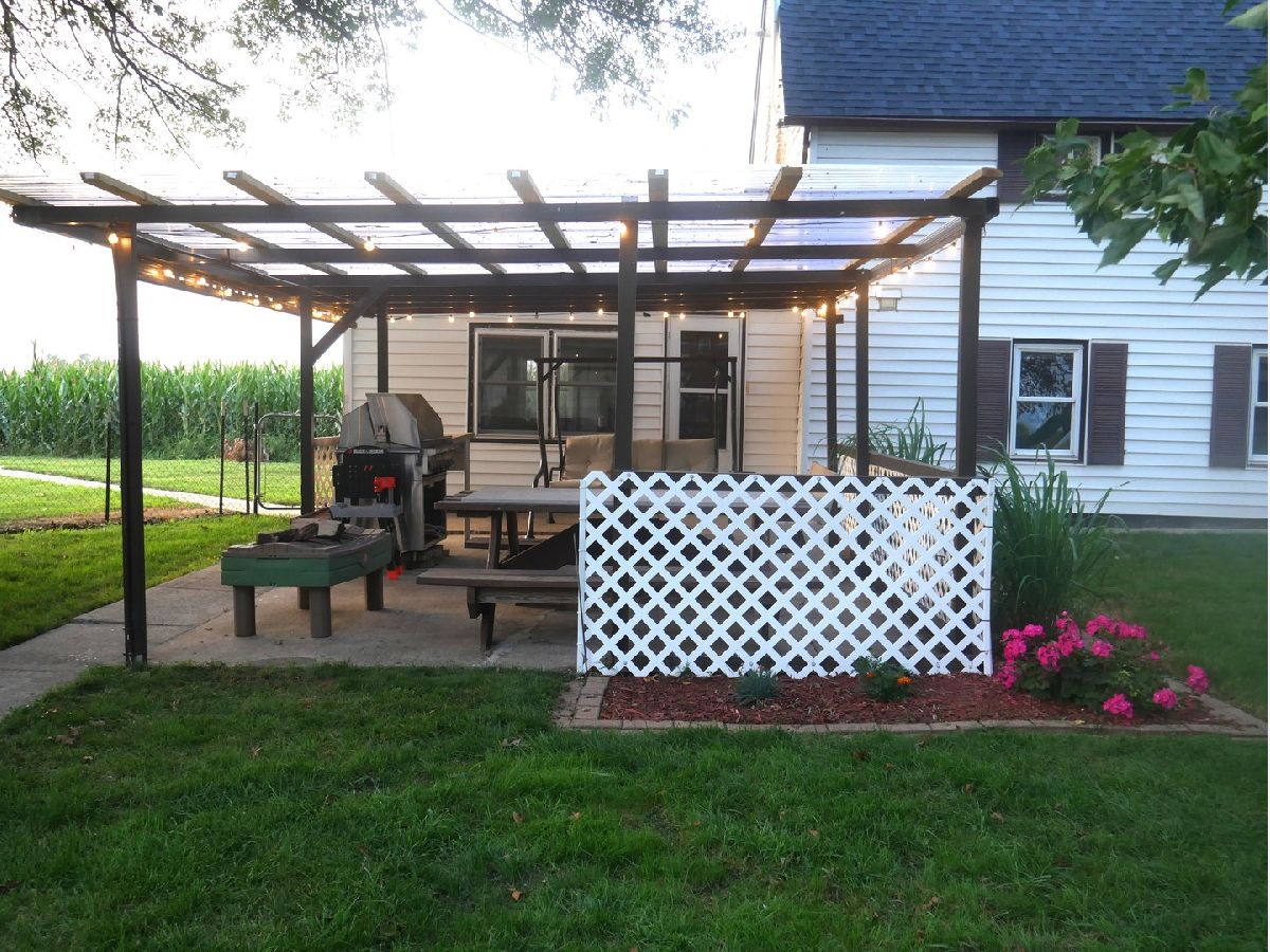 From the time you walk through the door, you'll be swept away with this beautifully renovated 1.5 story farmhouse! The home and it's amenities are on just over 3/4 of an acre! Large spacious rooms with new flooring throughout! There's a nice sized kitchen, bedroom laundry/utility room and one half bath on the main floor, as well as a huge 15'3 x 19 living room! The inviting open staircase will take you to 2 more bedrooms and a flex/office space that is currently being used as a 3rd bedroom. All of the shelving, TV, and window treatments stay with the home! Sellers have a garden, fruit trees and great area for chickens! There's a large shed and detached 2 car garage that is a dream for any mechanic! Pergola with gas grill and picnic table will also stary for those family gatherings! Seller will also leave the very well built wooden swing set to the buyers that are interested. Enjoy the summer with the well maintained pool!! The sellers have loved their home and it shows!! They can't wait to hand over the keys to someone that will love it as much as they have!!