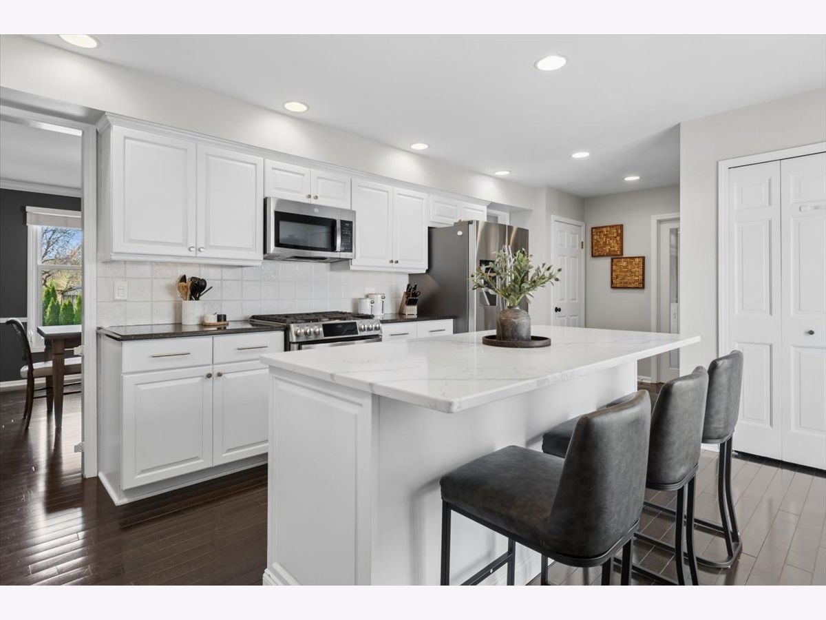 This is the one you've been waiting for. A true move-in ready home in coveted Hobson Village, proudly positioned on a prime corner lot. This 4 bedroom, 2 1/2 bath gem welcomes you with gorgeous curb appeal, enhanced with new James Hardie Board siding, a brick paver walkway, wood retaining wall, mature landscaping, and a desirable side load 2 car garage. Inside, you will appreciate the curated blend of modern, on-trend enhancements: neutral paint, updated lighting and stylish finishes throughout. The beautifully updated, open kitchen showcases a grand quartz-topped island, a natural gathering place for dining, conversation, and culinary creativity. Rich hardwood floors, gleaming granite counters, under cabiniet lighting, stainless steel appliances, a stylish tile backsplash, and white cabinetry with new hardware create a bright, inviting space. A large pantry closet and direct access to the paver patio for effortless alfresco living. The adjacent family room charms with its floor-to-ceiling brick gas fireplace, vaulted ceiling with accent beams, hardwood flooring, and sliding door access to the backyard. A classic dining room with hardwood floors and chair rail connects seamlessly to both the kitchen and family room for formal private dining. The spacious living room, currently used as a playroom, leads to a versatile study/den/mudroom featuring striking herringbone tile flooring, a built-in desk, white wainscoting, exterior access to the backyard, and convenient proximity to the half bath. This flexible space can easily be converted into a first-floor laundry room. All bedrooms are thoughtfully positioned on the upper level, highlighted by an expansive primary suite with walk-in closet and ensuite bath. The other 3 bedrooms have updated ceiling fans, blinds, and easy access to the shared hall bath. The finished basement expands your living space with separate areas for recreation, office/exercise, laundry room, and hobbie/workbench/storage room. A finished crawl space provides even more storage, and a radon mitigation system already in place will give you peace of mind. The private, fenced backyard and large paver patio is ready for your relaxation and entertainment. A lawn irrigation system keeps the yard lush and green all season long. This rare find offers exceptional convenience to the neighboring parks, tennis courts, Prairie Elementary, and all the shopping, dining and entertainment of downtown Naperville. Served by the top-rated Naperville SD 203. This exceptional opportunity combines an unbeatable location, a beautifully updated home, and the rare advantage of true move-in readiness.