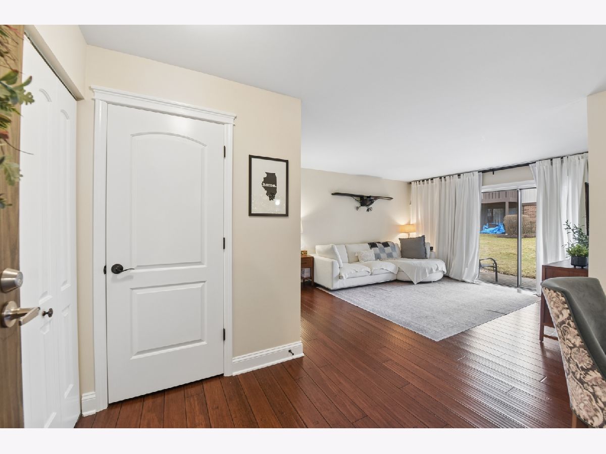 First floor Unit in Lexington Green II. Close to Woodfield Mall, shopping, dining and entertainment, near all major expressways and quick access to buses and trains. Excellent schools (Collins/Margaret Mead/Conant). LARGE 2 BEDROOMS 2 FULL BATHROOMS condominium with attached one car garage, hand-scraped bamboo wood flooring throughout and ceramic tiles in the kitchen and bathrooms. Modern kitchen with stainless steel appliances, beverage fridge, solid birchwood counter-tops, soft-close drawers and inside cabinets lights, heated sub-floors & kitchen island. Master bedroom has a walk-in closet with built in shelving, and master bathroom. Sliding glass doors in the kitchen and living room both open to a patio. In unit laundry with a full size washer and dryer. Walking distance to surrounding parks and 1 min walking to the pool. The community offers a small park for the subdivision children to enjoy, walking paths and a clubhouse for hosting parties. Low HOA assessments.