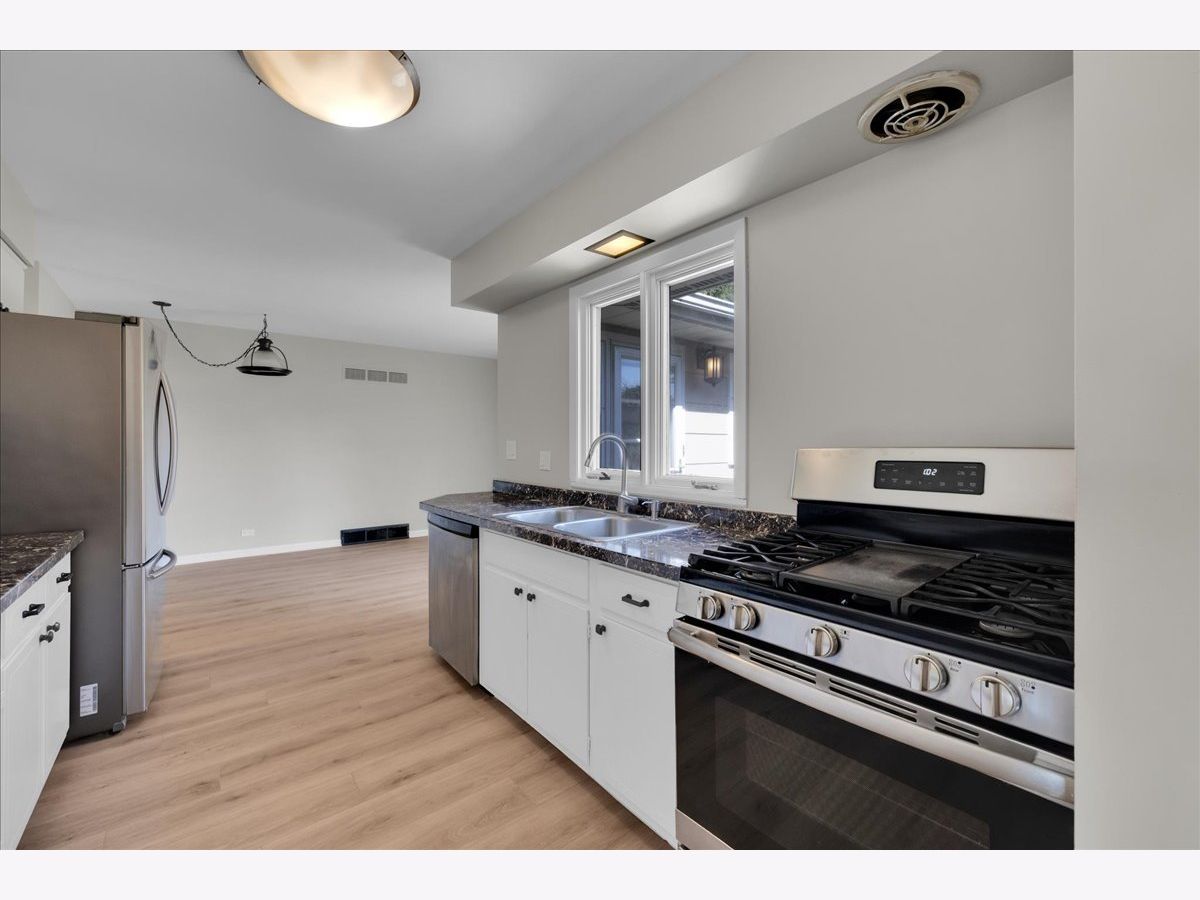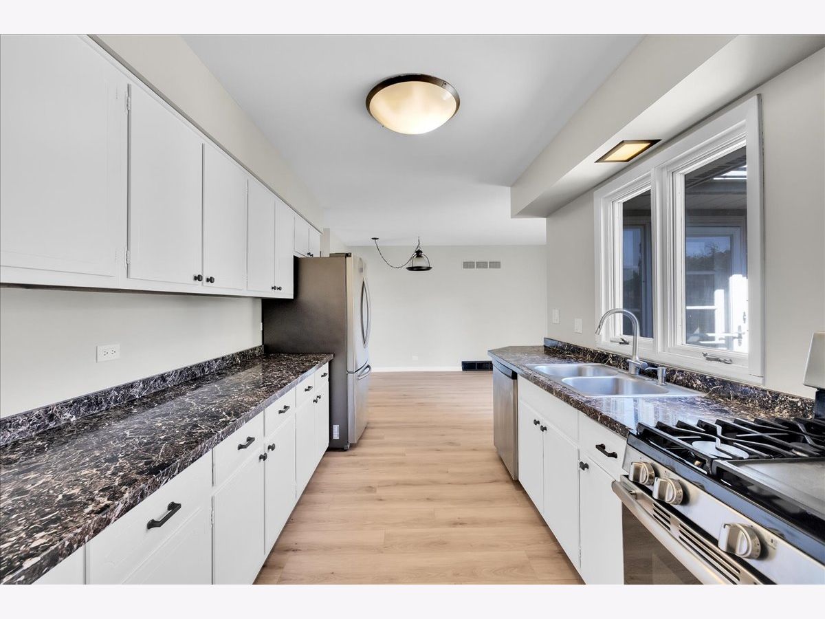 This spacious ranch delivers comfortable single-level living in a sought-after location served by outstanding schools and just minutes from shopping, dining, parks, and major roadways. The floor plan includes a sunken living room with a cozy fireplace, a separate dining area ideal for gatherings, and a large eat-in kitchen with room for a sunny breakfast nook or full kitchen table. Recent updates include new wood laminate flooring and fresh interior paint. The bedrooms are generously sized, and both full bathrooms feature granite countertops and are in excellent condition. The partially finished basement-with above-grade windows-adds valuable living space, featuring a recreation area, ample storage, and a separate room perfect for a fourth bedroom or home office. With its adaptable layout, top-rated schools, and prime central location, this home is a terrific opportunity for comfortable living now with potential to personalize over time.